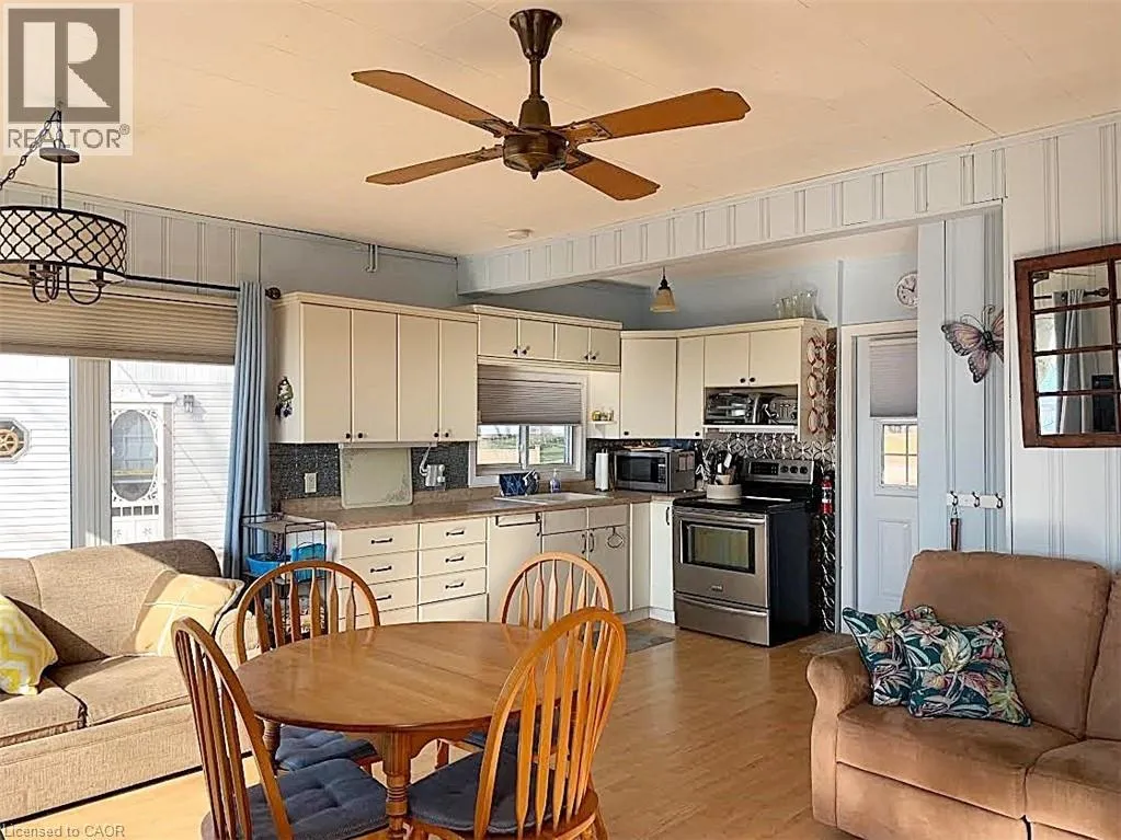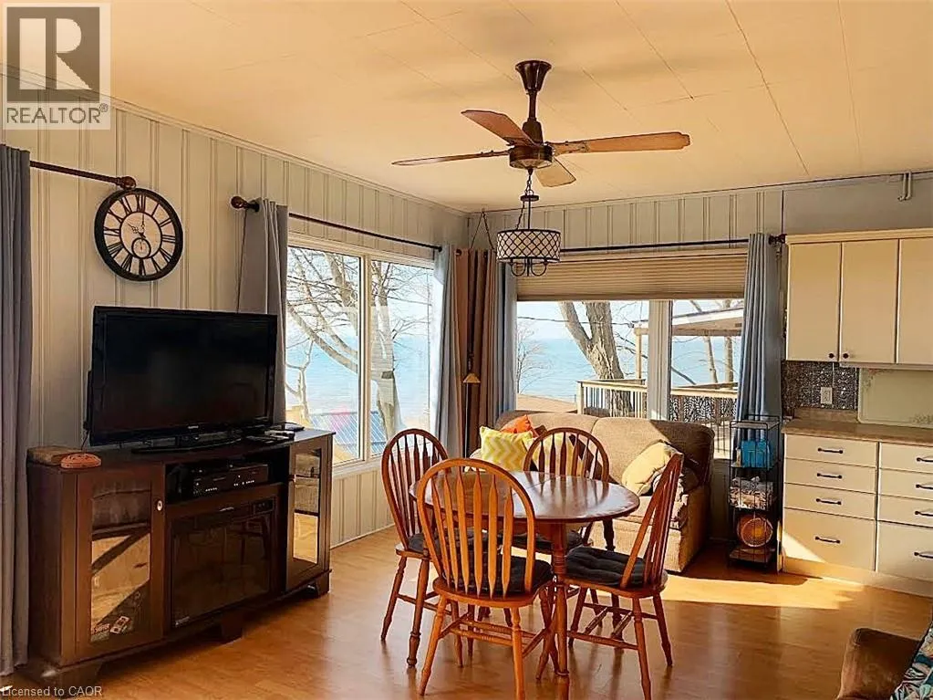 St. George St. to Bucks Park A RARE FIND...Beach Side Living... 2 bedroom Summer Home in Downtown Port Dover. SPECTACULAR VIEW of the Lake, the Pier & the Beach! Feel the Warm Summer Breezes as you Relax & Enjoy the View from the 13 x 22 Deck with remote awning-Great for Entertaining! Lower Deck too!. There's plenty of room for Family and Friends to come and visit with 4 personal parking spaces plus 1 space in the parking corral (when available). Maintenance Free. Nicely Landscaped. Open Concept LR, DR & Kit, Oversize Windows to Capture the View, Patio Door to Deck. 2 Bedrooms(queen beds). 625 sq. ft. cottage with a metal roof. Crawl space access under deck. Cottage was raised in 2020 with new piers. Private stairs to beach. 6 months usage from April 1st to October 1st. Leased Land. Ready for You and Your Family to Make Long Lasting Happy Memories! (id:27476)