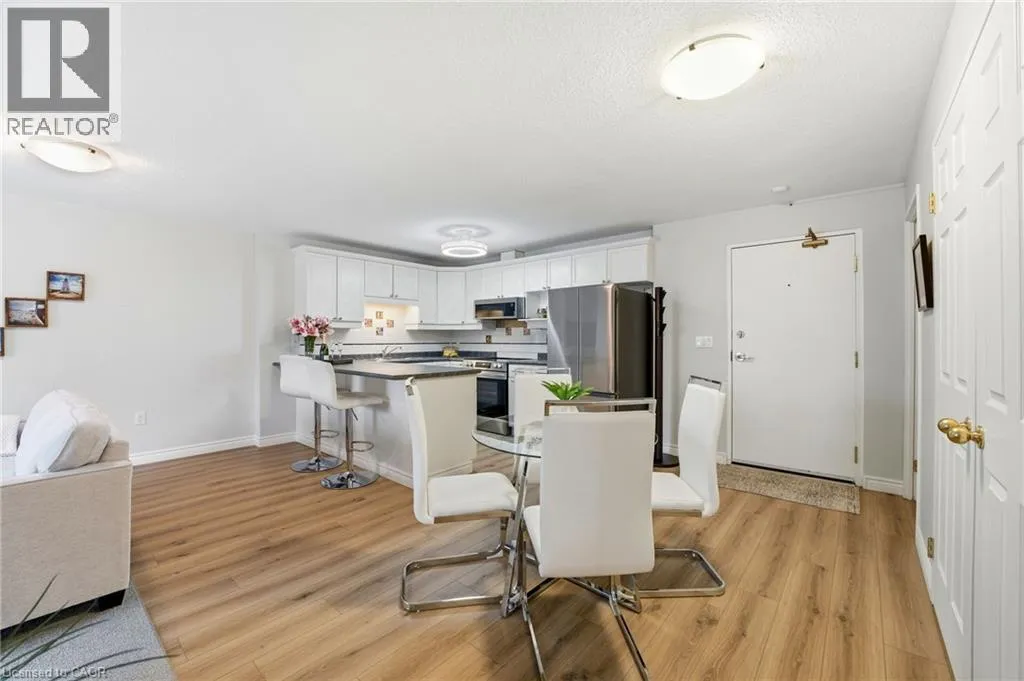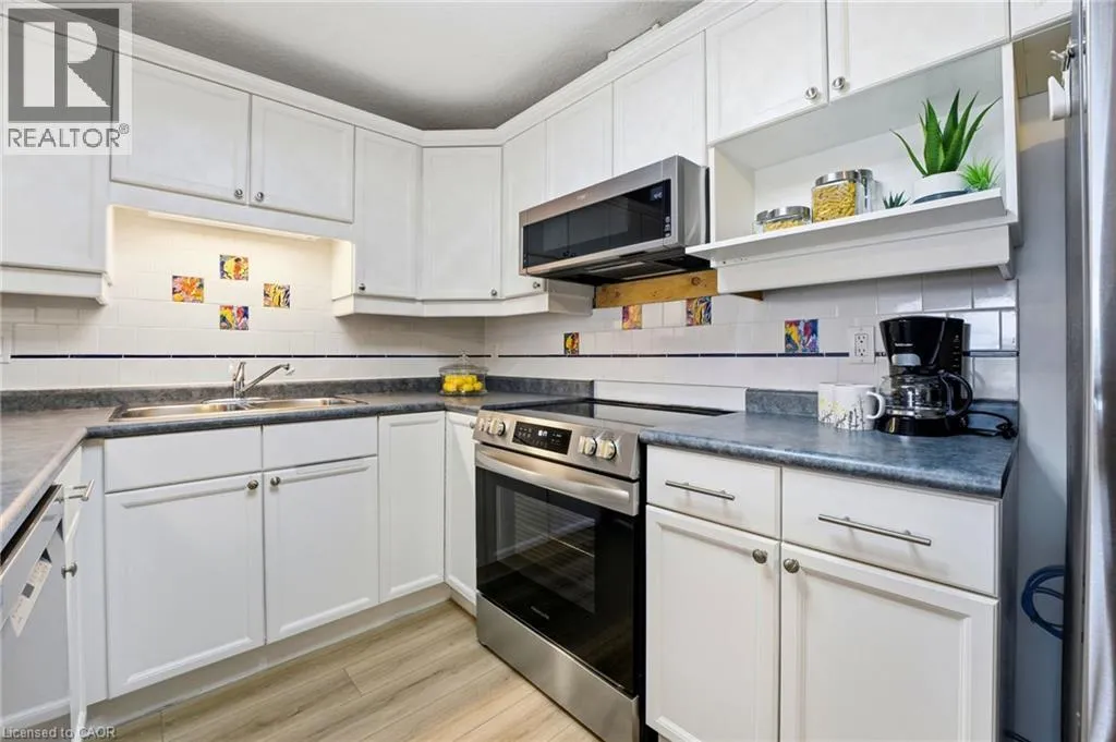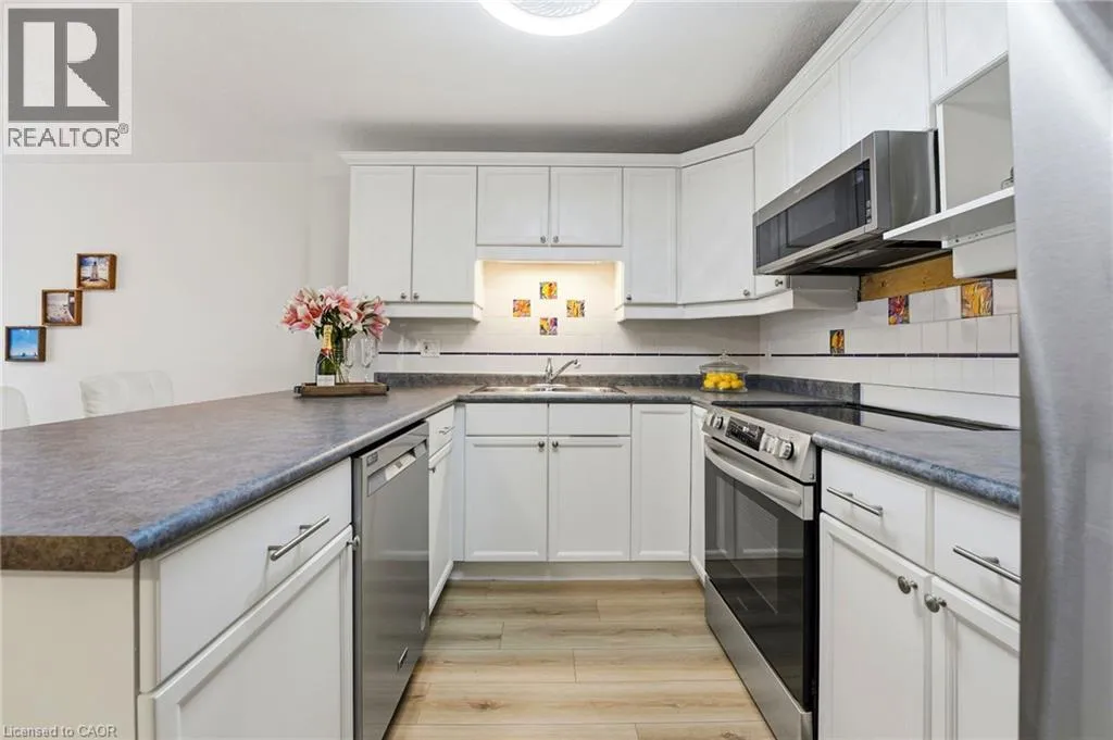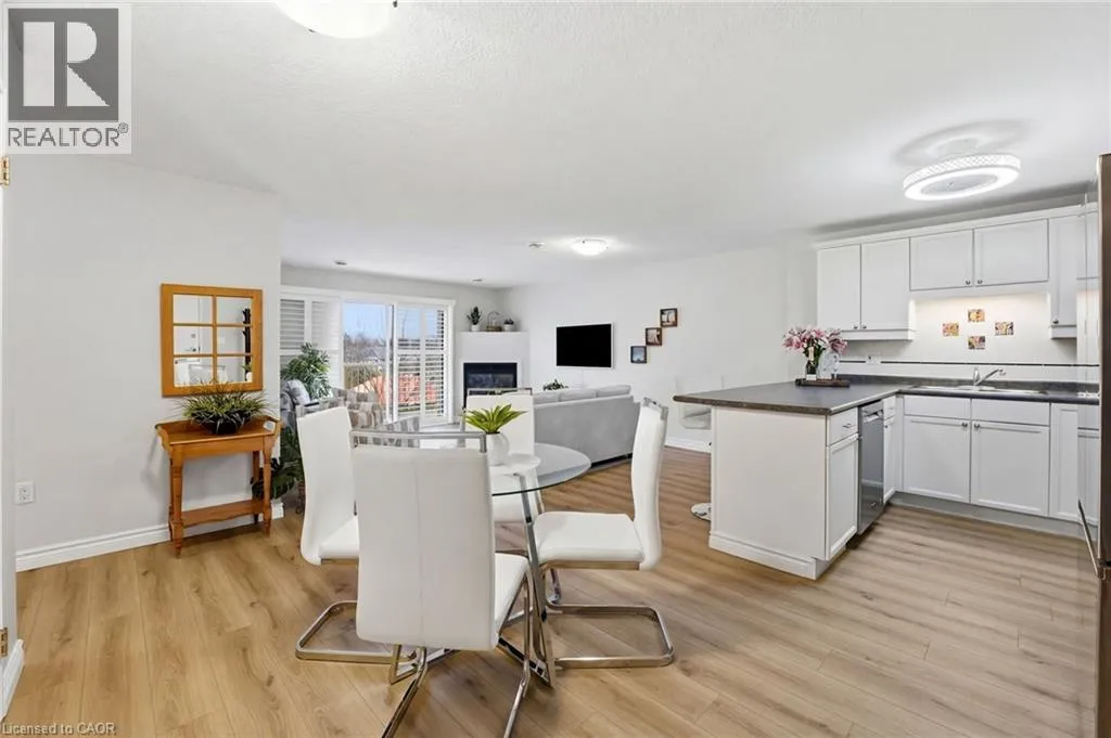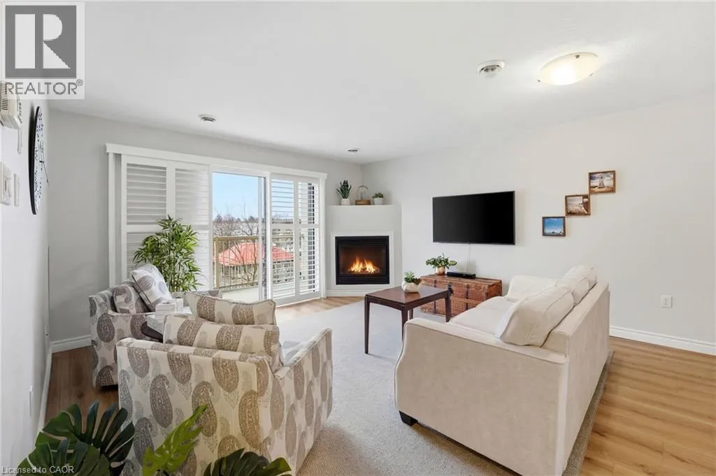 South on Main Street, left on Chapman then right on St. Andrew Street, complex is on the Corner of St. Andrew and Clinton Simplicity at its finest! The top floor, corner unit is available for sale, with 2 bedroom and 2 bathrooms in the desirable beach town of Port Dover. Walking distance to all the amenities and only moments to the finest restaurants and sandy beach. The open concept design was renovated in 2023/2024 with new flooring (Carpet One), fully painted (Norfolk Painters), kitchen cabinets painted, closets custom outfitted (Closets by Design), plantation shutters (Dover Paint & Paper) throughout. The eat in kitchen opens up to the bright living room with cozy gas fireplace and sliding doors offering a balcony with views of the lift bridge. The primary bedroom offers plenty of room to sit and read with a book in your favourite chair or crawl into bed and watch television. A second balcony off the primary bedroom is the perfect location to enjoy your morning coffee while watching the beach town wake for the day. This home is turn key and perfect if you're seeking to downsize, invest or just want simplicity. Call for your private viewing today. (id:27476)