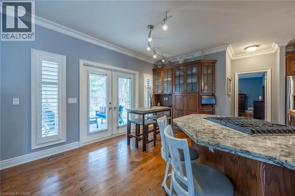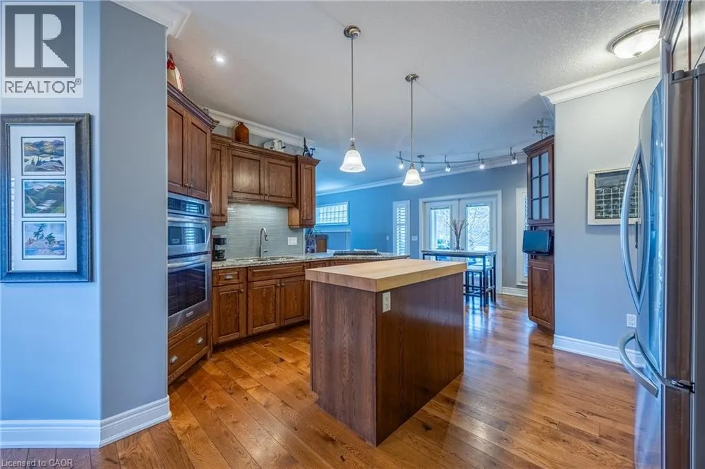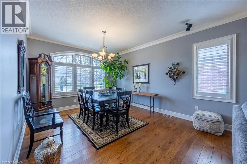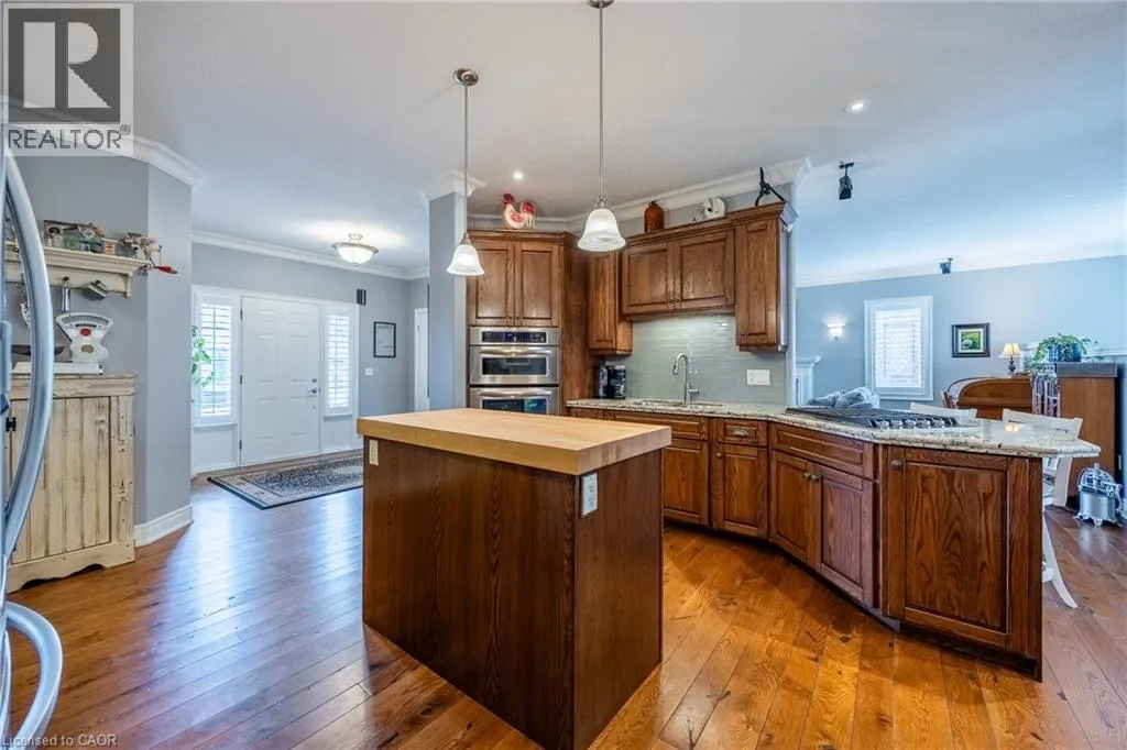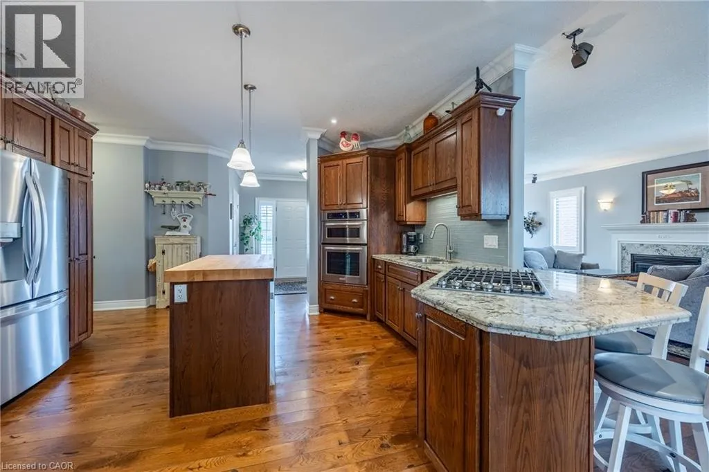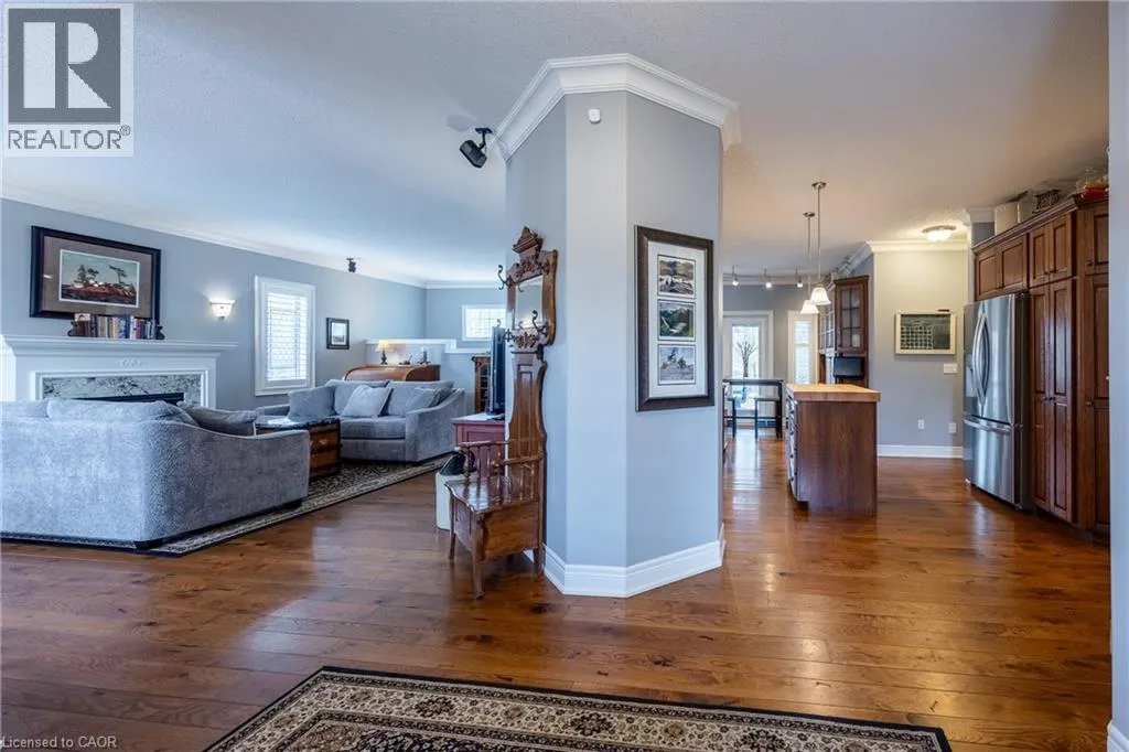 From Hwy 6, turn right onto Somerset Dr and the turn right onto donjon blvd Beautifully maintained all-brick bungalow offering over 3298 sq ft of finished living space in one of Port Doverâs most desirable neighbourhoods. Perfectly positioned for those seeking a relaxed lifestyle without compromise, this home delivers both style and everyday comfort. The open-concept main floor showcases 9-foot ceilings, rich oak hardwood flooring, and refined 5â trim, creating a warm yet upscale atmosphere. The spacious living room invites you to unwind by the gas fireplace, while the kitchen impresses with granite countertops, quality winger cabinetry, and a seamless flow into the dining areaâideal for entertaining. Large windows dressed with California shutters fill the space with natural light. Step outside to a 12x16 covered deck overlooking a landscaped yard and fire pit, perfect for quiet evenings or hosting family and friends. Designed for convenient main-floor living, youâll find a laundry room, powder room, and inside access to the 2-car garage, along with two generous bedroomsâeach featuring walk-in closets and private ensuites. The lower level adds exceptional versatility with 1531 sq ft of finished space which includes: a rec room and fireplace, additional bedroom, 3-piece bath with walk-in shower, workshop, and flexible space for a gym, games room, or hobby area. Enjoy being just a short 10-minute walk to the marina and minutes from Port Dover Beach, local shops, restaurants, and waterfront trails. Commuters will appreciate easy access to Simcoe (10 minutes), Brantford (approx. 45 minutes), and Hamilton (just over an hour). Whether youâre retiring, raising a family, or simply dreaming of life near the water, this exceptional home offers the perfect blend of location, lifestyle, and livability in one of Ontarioâs most beloved beach towns. Book your showing today! (id:27476)