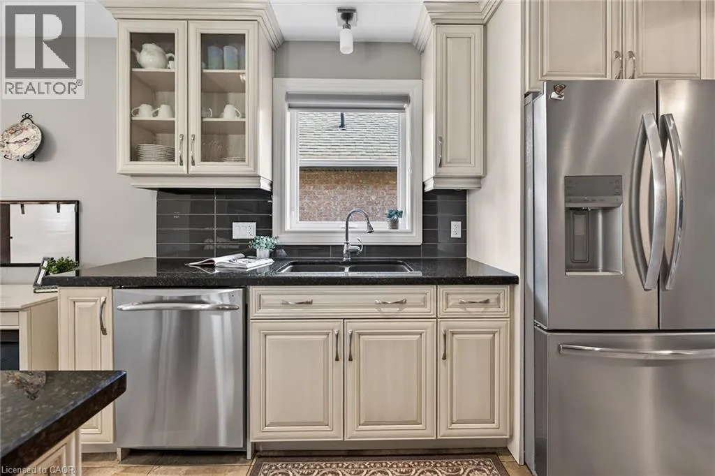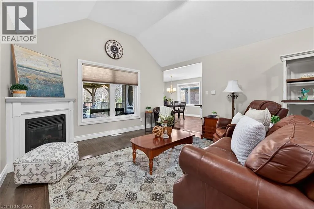 Beautifully appointed 2013 custom built bungalow located in preferred Port Dover subdivision positioned proudly on 0.26ac lot ideally situated at end of upscale cul-de-sac overlooking fields to the west incs fenced back yard abutting private, treed northern boundary. Experience popular amenities & attractions this quaint Lake Erie destination town is famous for - incs Live Theatre, Music in the Park venues, Links-Style golf course, Marinas, eclectic down shops/boutiques, funky bistros/eateries & renowned beach front. Step inside from covered front porch & prepare to be awe-struck by grand 10ft high foyer introducing 1800sf of tastefully presented living area offering open concept living/dining room complimented w/vaulted ceilings, engineered hardwood flooring, n/g fireplace & oversized picture window - segues to gorgeous kitchen - a culinary enthusiastâs âDreamâ venue - sporting antique coloured cabinetry, granite countertops, tile back-splash, pantry, SS appliances & bright dinette enjoying walk-out to 12x12 covered porch enhanced w/stamped concrete flooring extending to attached 16x16 deck housing custom gazebo. Floor plan seamlessly flows to elegant primary suite ftrs personal 3pc bath, WI closet & porch/deck walk-out - leads to 2 additional bedrooms, 4pc main bath, large laundry room w/upper cabinets, x-deep closet & direct entry to finished 1.5 car garage boasting insulated RU door & handicap equipped ramp. Professionally finished 1800sf lower level showcases spacious 640sf L-shaped family room providing multitude of functions - from entertaining guests, hosting family gatherings, playing every type of table game- OR - just to simply escape & relax. Design continues w/sizeable 4th bedroom, modern 3pc bath & versatile utility/storage/workshop room. Extras - paved conc. double drive w/conc. accents, California shutters, closet organizers, n/g furnace, AC, HRV, 125 amp hydro, battery back-up sump pump & designer garden shed. Elevating âFLAWLESSâ to the next level! (id:27476)