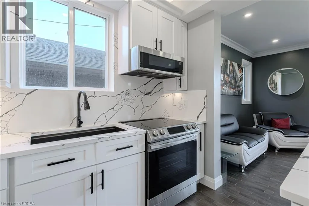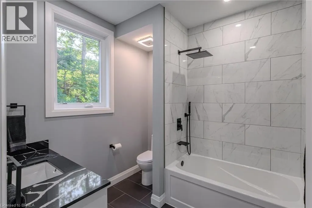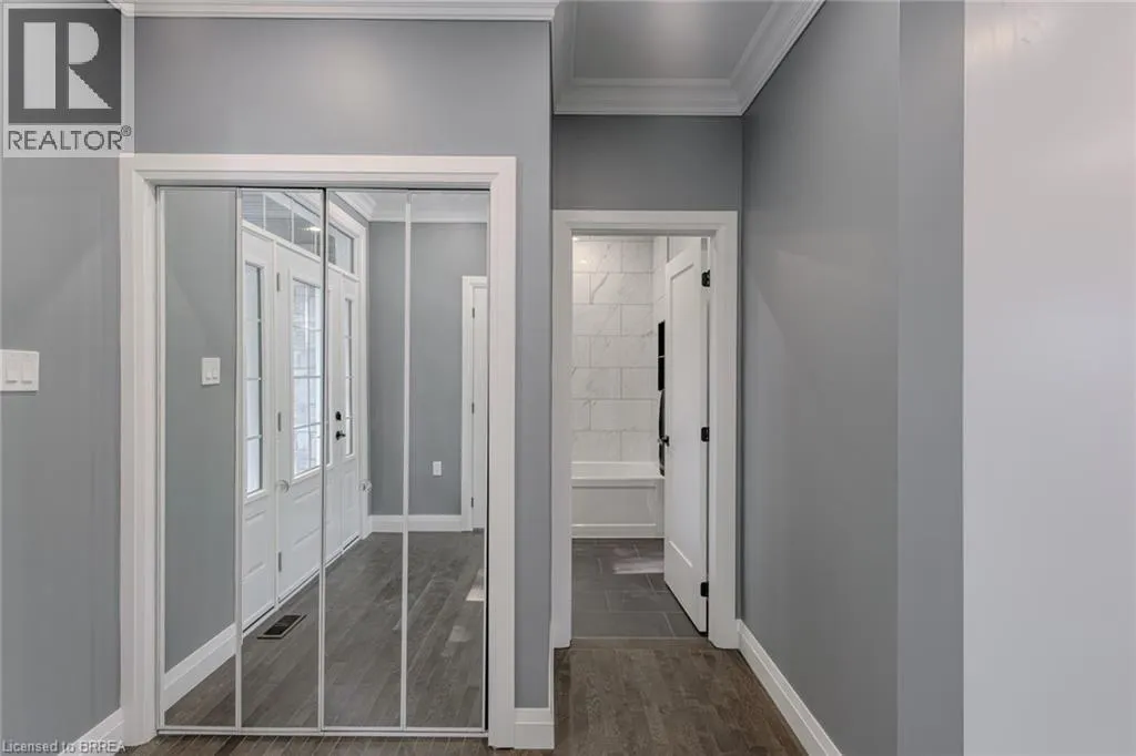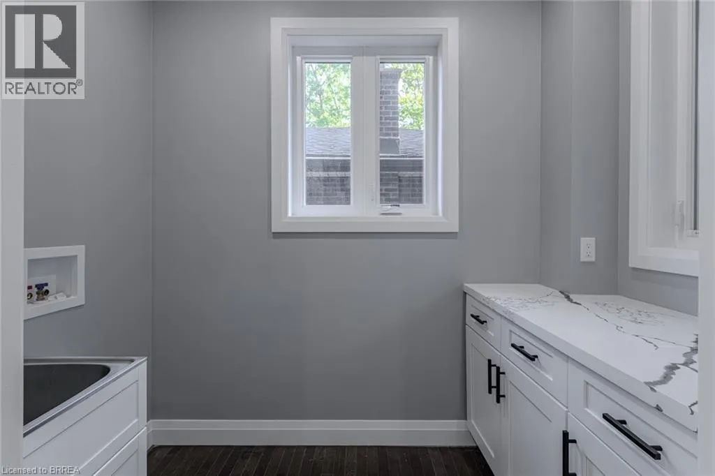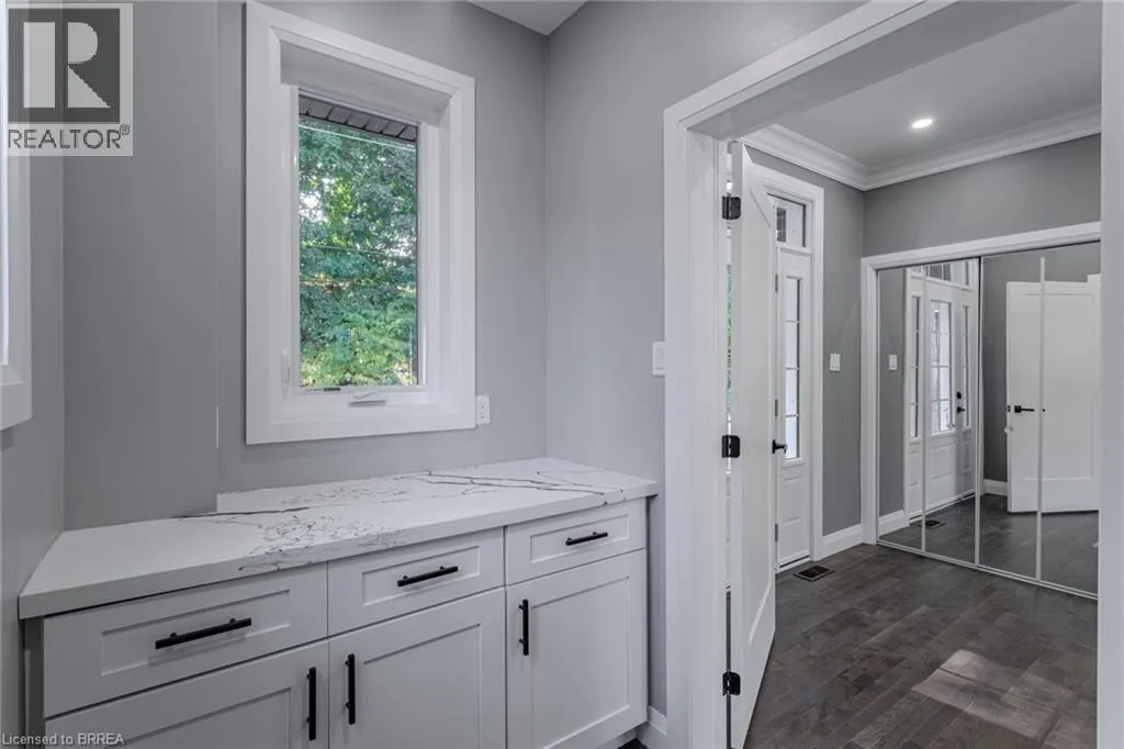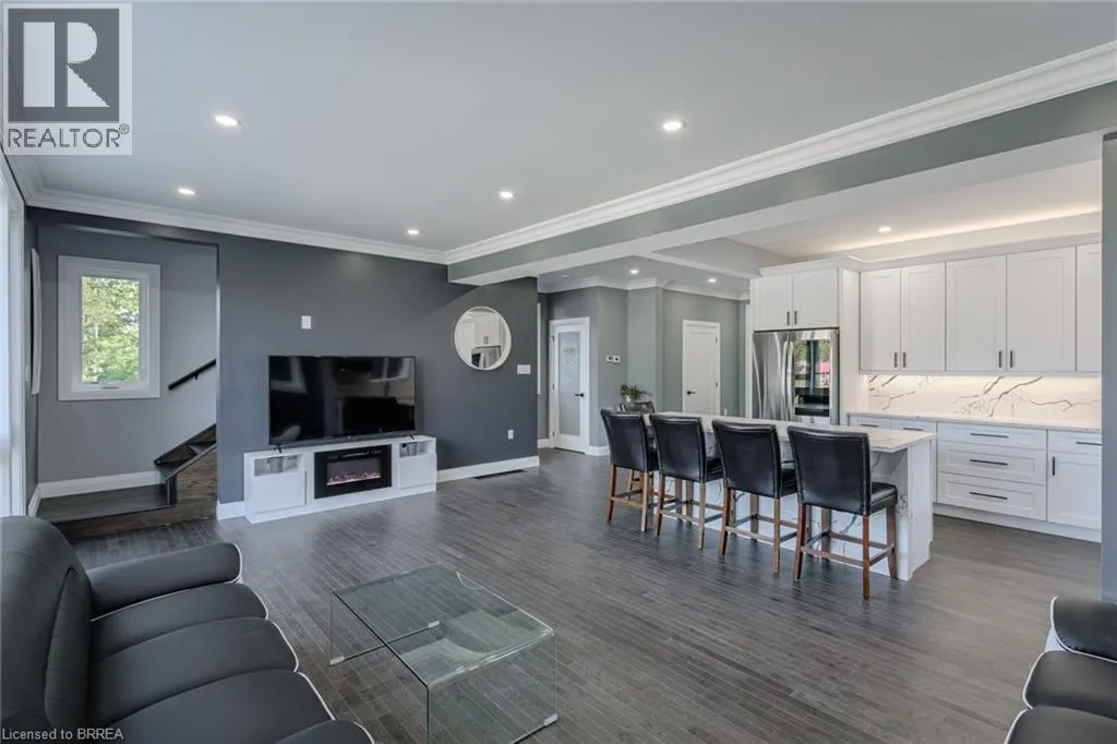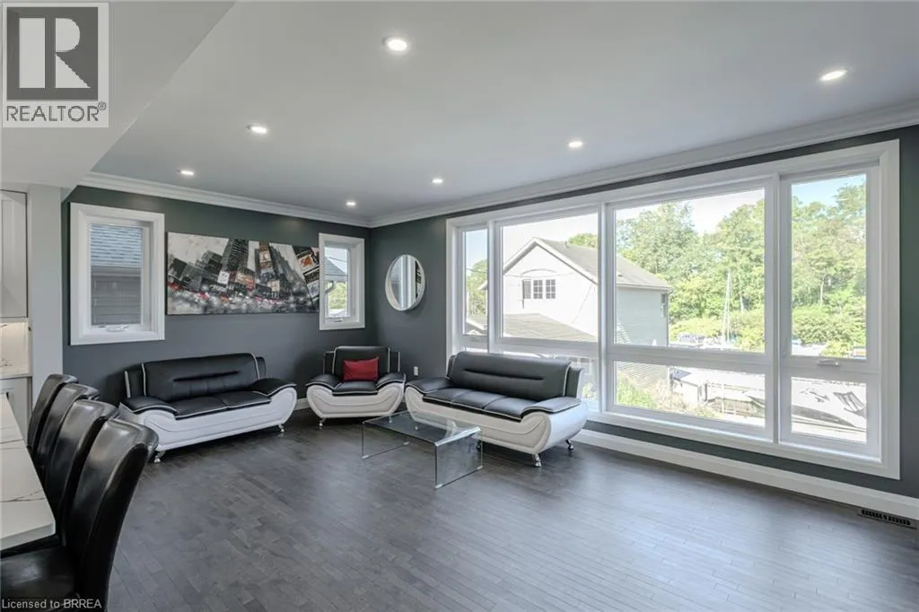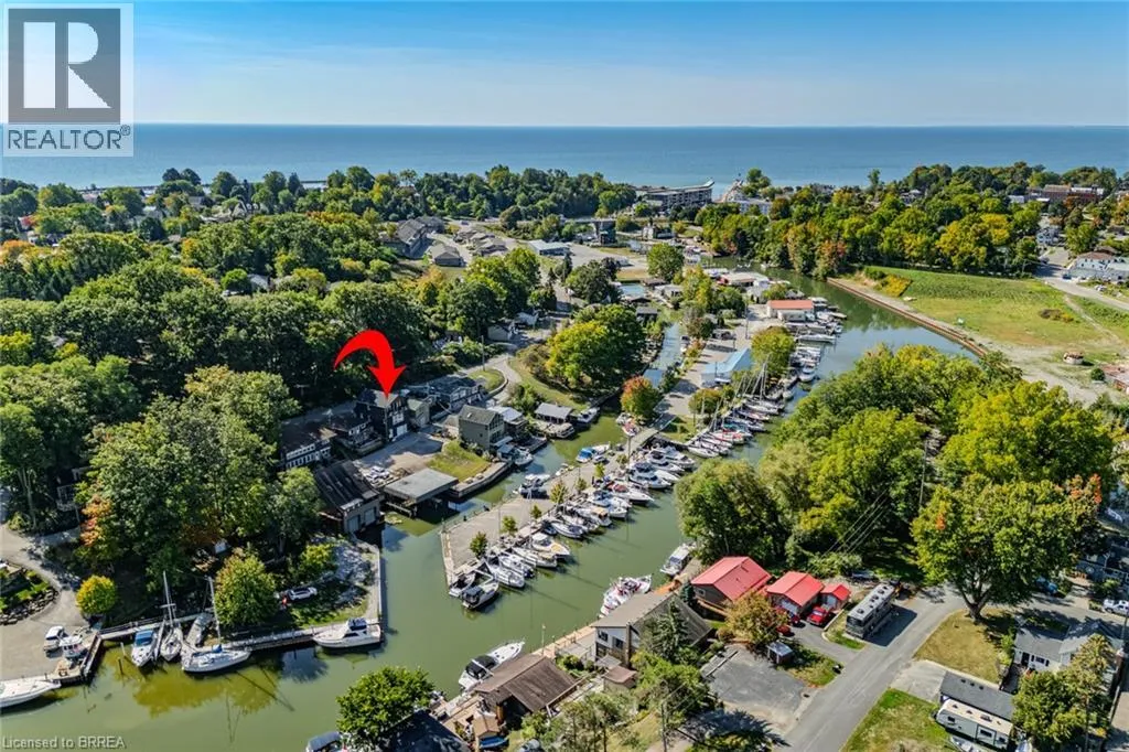 Take Hwy 6 over lift bridge, turn left on Grand Street. (the upper road)- property is less than 1 min up the road- on the left hand side.. WOW! Stunning, new home in highly sought-after Port Dover, just steps from Black Creek! This home offers versatility for todayâs lifestyle. Appreciate the private double-wide driveway, accommodating up to 6 vehicles, & the stamped concrete front porch. A spacious foyer features double mirrored closets, 9-foot ceilings, & oak hardwood flooring that flows throughout the home. Located off the foyer is a laundry room with quartz countertops. On the opposite side, is a beautifully finished 4-piece bath with textured tile floors, quartz vanity & tile shower surround. The open-concept main floor is filled with natural light & offers beautiful canal views. The custom kitchen is a showstopper, boasting a 5-seat island, quartz counters & backsplash, under-mount lighting, dovetail soft-close cabinetry, stainless steel appliances & pantry. Additional features include pot lights & crown molding that continue into the living area, creating a seamless flow. Upstairs, enjoy a versatile space with 12-foot vaulted ceilings, recessed lighting, wet bar with quartz counters & bar fridgeâperfect for entertaining, working from home, or relaxing. 7-foot sliding doors lead to a covered Dura-deck with glass railings, offering breathtaking views of the canal. There are 3 spacious bedrooms, including a primary suite, & a luxurious 5-piece bathroom with double quartz vanity & textured tile flooring. On the lower level, a landing leads to the back of the home & a flexible storage/utility room with a 3-piece bath rough-in, secondary laundry option & mechanical systems. This space offers great potential for a variety of future uses. A 1.5 car garage is just off this space featuring drain and water supply line rough-ins. Located just minutes from the heart of Port Dover, this home offers a peaceful retreat with easy access to local amenities. The owner may consider selling the land behind the home on the canal providing the possibility to add some green-space, a docking spot & access to Lake Erie! (id:27476)