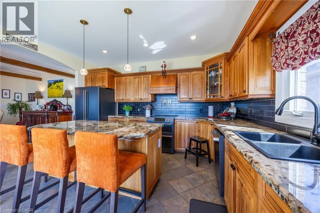 Take Highway 6 east to Erie Street. Head south on Erie Street, then turn east onto Brown Street. You'll find #140 on the south side of the street. Nestled on a quiet, dead-end street in the heart of beautiful Port Dover, This stone bungalow offers a blend of spacious living, thoughtful design, and unbeatable location. Built in 2003, this impressive home boasts over 3,083 square feet of total living space, providing room for families of all sizes to live, work, and relax in style. From the moment you arrive, the homeâs curb appeal shines with its attractive landscaping, paved driveway with decorative concrete/aggregate border, and upgraded walkway and porch that lead to a welcoming front entrance. Step inside to a flowing floor plan featuring a spacious foyer, sunlit living room with walk-out to an upper balcony with retractable screens and with Lake Erie views, dining area and eat-in kitchen ideal for entertaining or casual family meals. A main-floor bedroom and 4- piece bath add flexibility and convenience. Downstairs, the lower level is equally impressive, offering a generous rec room, home office, luxurious master suite with walk-in closet and ensuite, one additional bedroom, another full bath, and a walk-out to the lower deck areaâ perfect for outdoor relaxation or hosting summer get-togethers. The oversized 27' x 30' heated garage offers ample room for vehicles and storage, completing the practical layout. Youâre just minutes from the townâs beloved beaches, boutiques, and local eateries, including lakeside dining and quaint cafes. Whether youâre enjoying a stroll along the pier or a day at the beach, this community offers smalltown charm with big personality. Even better, youâre within easy driving distance to Hamilton, Brantford, and other nearby cities, making commuting a breeze while enjoying the tranquility of lake-town life. If you're seeking a spacious, beautifully maintained home in a location that truly has it all. Check out the virtual tour and book you showing today. (id:27476)