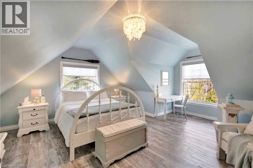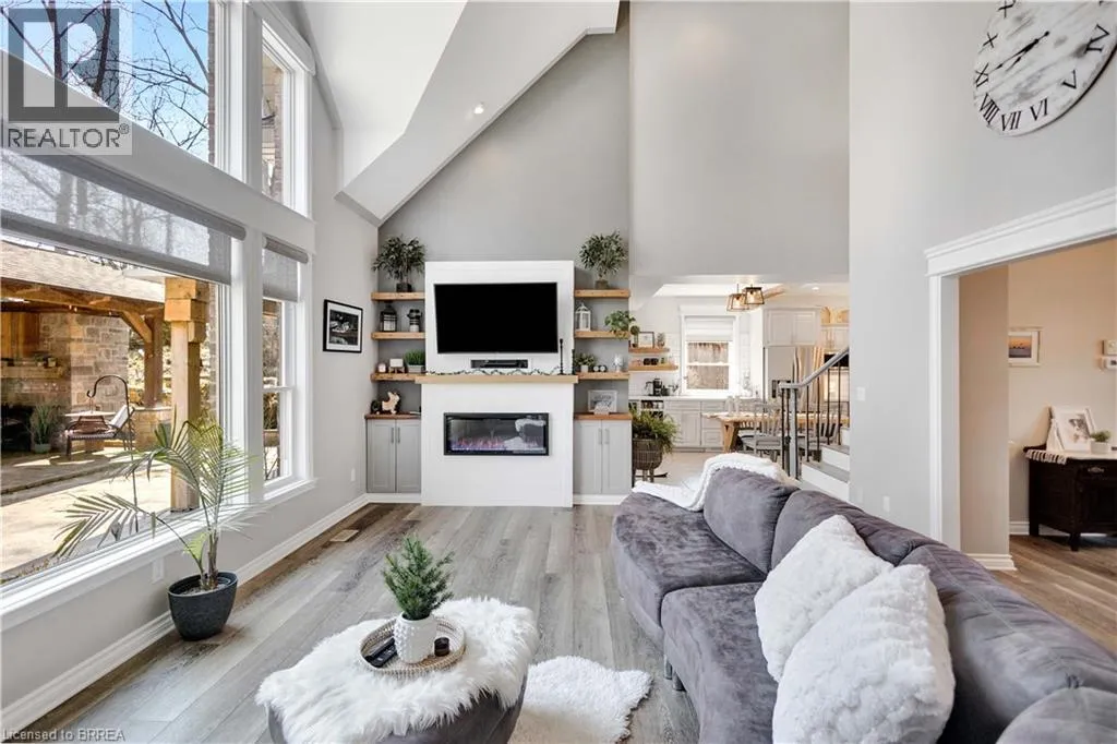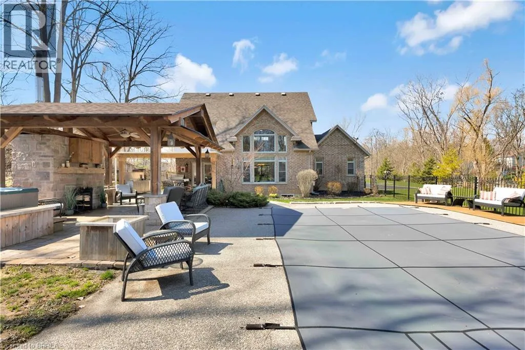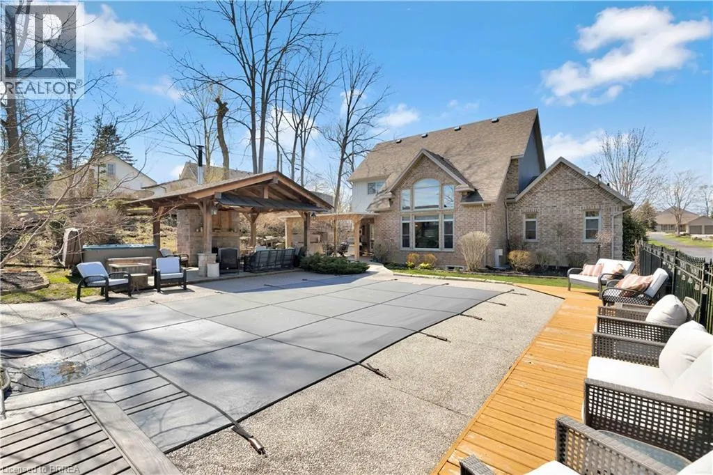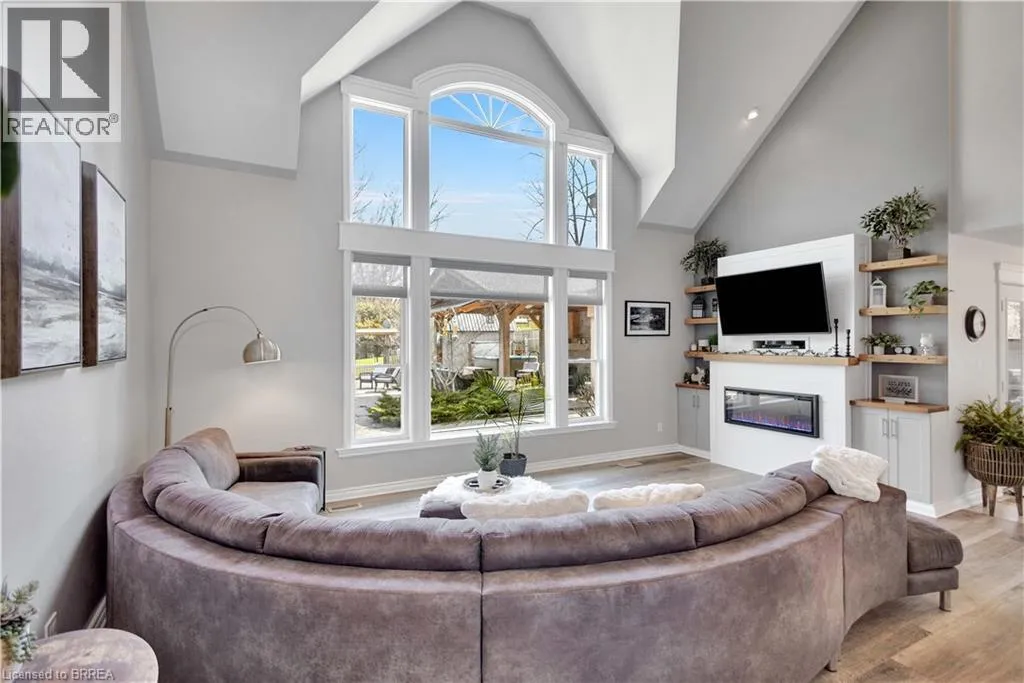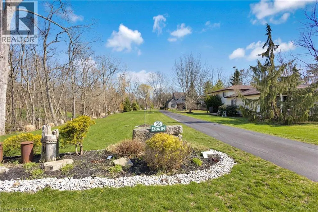 Cockshutt Road becomes Silver Lake Drive in Port Dover. Welcome to 38 Silver Lake Drive in Port Dover. Set back on a rare and beautifully treed 0.8-acre ravine lot, this custom-built home offers luxury, comfort, and total privacy. A property like this rarely comes to market, meticulously built from top to bottom and totally pristine. The ultimate family home that feels like your very own private retreat. Show-stopping backyard featuring a saltwater pool with waterfall, hot tub, koi pond, outdoor fireplace with TV hookup, complete with a stamped concrete patio framed by mature landscaping and palm trees. Itâs the kind of space youâll never want to leave. Offering 4 bed and 3.5 bath, this property is sure to check off all your boxes. Prepare to be impressed by the soaring 17-foot vaulted ceilings creating an incredible sense of openness and abundance of natural light. The stunning farmhouse chic kitchen is designed for both everyday living and entertaining, with gorgeous quartz countertops, stainless steel appliances, a wine fridge, plus a custom built-in pet drawer. The luxurious primary bedroom suite on main level offers dual closets and a spa-inspired ensuite featuring a soaker tub, glass walk-in shower, and double vanity. On the second level, youâll find two generously sized bedrooms, a full 4-piece bath, and a bright office or den space. A separate sitting area offers added flexibility and was previously used as a bed and breakfast. The fully finished lower level adds even more living space with a large rec room, home gym, additional bedroom, and a 3-piece bath, ideal for guests or extended family. Additional features include a heated 2-car attached garage, a detached single garage 10x20, main floor laundry, powder room, ample parking, motorized privacy blinds, exterior outlets for seasonal lighting, and a timeless stone and brick exterior that completes the homeâs elevated farmhouse feel. This property is a MUST SEE! (id:27476)