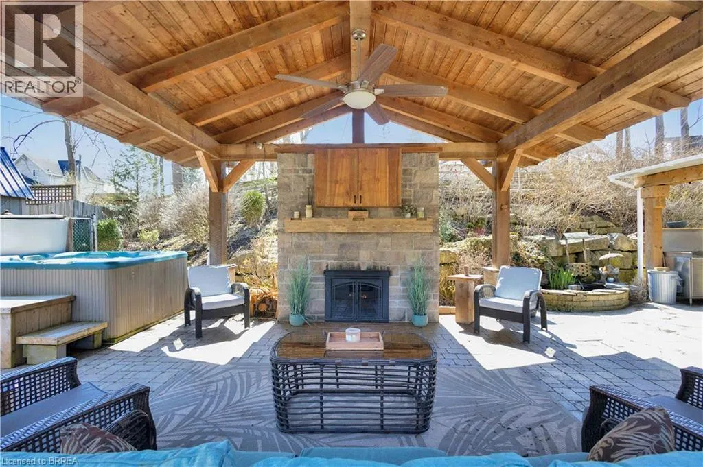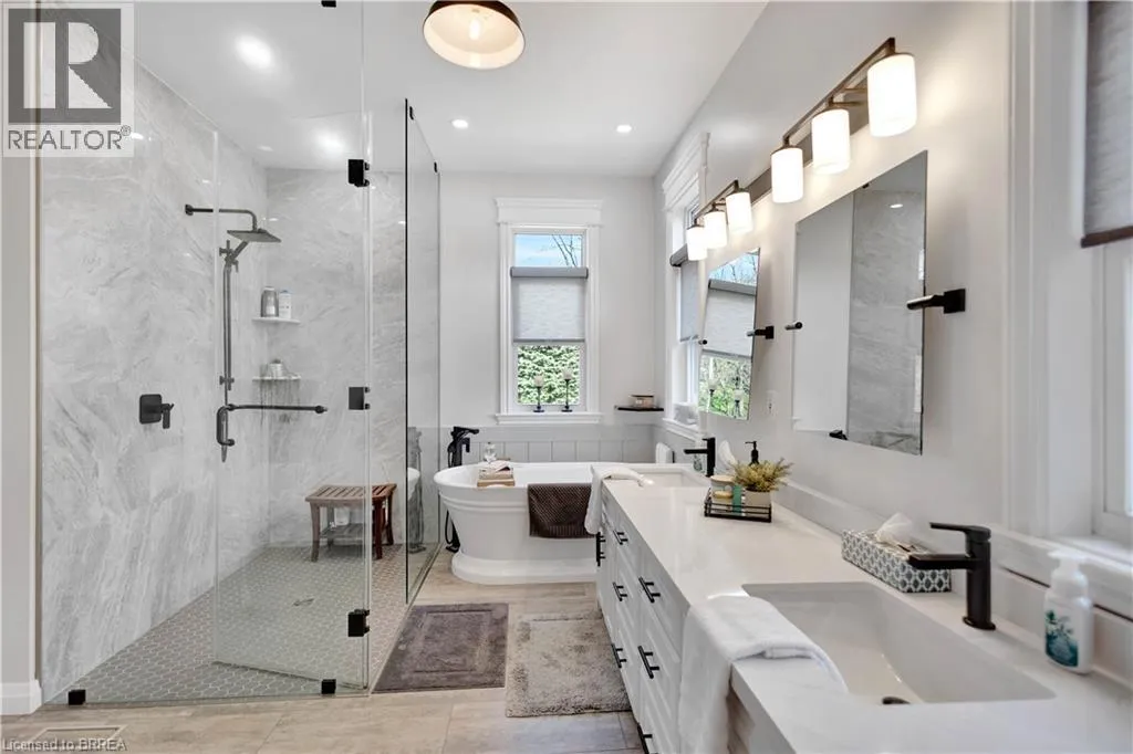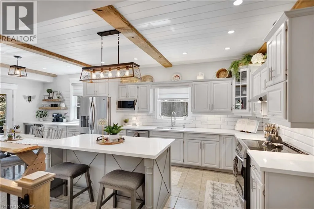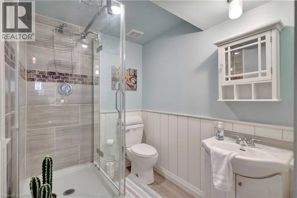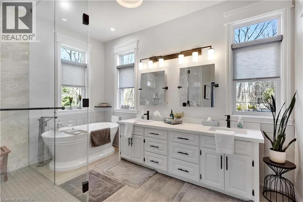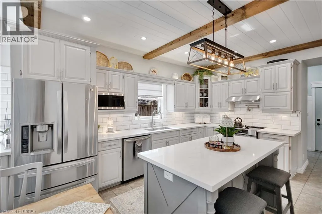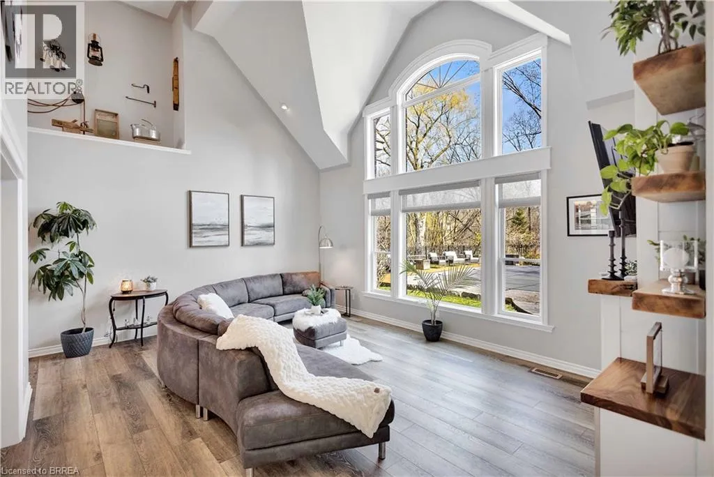 Cockshutt Road becomes Silver Lake Drive in Port Dover. Welcome to 38 Silver Lake Drive in Port Dover. Set back on a rare and beautifully treed 0.8-acre ravine lot, this custom-built home offers luxury, comfort, and total privacy. A property like this rarely comes to market, meticulously built from top to bottom and totally pristine. The ultimate family home that feels like your very own private retreat. Show-stopping backyard featuring a saltwater pool with waterfall, hot tub, koi pond, outdoor fireplace with TV hookup, complete with a stamped concrete patio framed by mature landscaping and palm trees. Itâs the kind of space youâll never want to leave. Offering 4 bed and 3.5 bath, this property is sure to check off all your boxes. Prepare to be impressed by the soaring 17-foot vaulted ceilings creating an incredible sense of openness and abundance of natural light. The stunning farmhouse chic kitchen is designed for both everyday living and entertaining, with gorgeous quartz countertops, stainless steel appliances, a wine fridge, plus a custom built-in pet drawer. The luxurious primary bedroom suite on main level offers dual closets and a spa-inspired ensuite featuring a soaker tub, glass walk-in shower, and double vanity. On the second level, youâll find two generously sized bedrooms, a full 4-piece bath, and a bright office or den space. A separate sitting area offers added flexibility and was previously used as a bed and breakfast. The fully finished lower level adds even more living space with a large rec room, home gym, additional bedroom, and a 3-piece bath, ideal for guests or extended family. Additional features include a heated 2-car attached garage, a detached single garage 10x20, main floor laundry, powder room, ample parking, motorized privacy blinds, exterior outlets for seasonal lighting, and a timeless stone and brick exterior that completes the homeâs elevated farmhouse feel. This property is a MUST SEE! (id:27476)