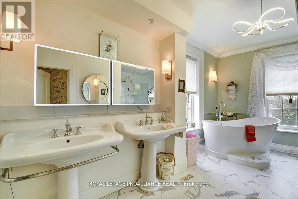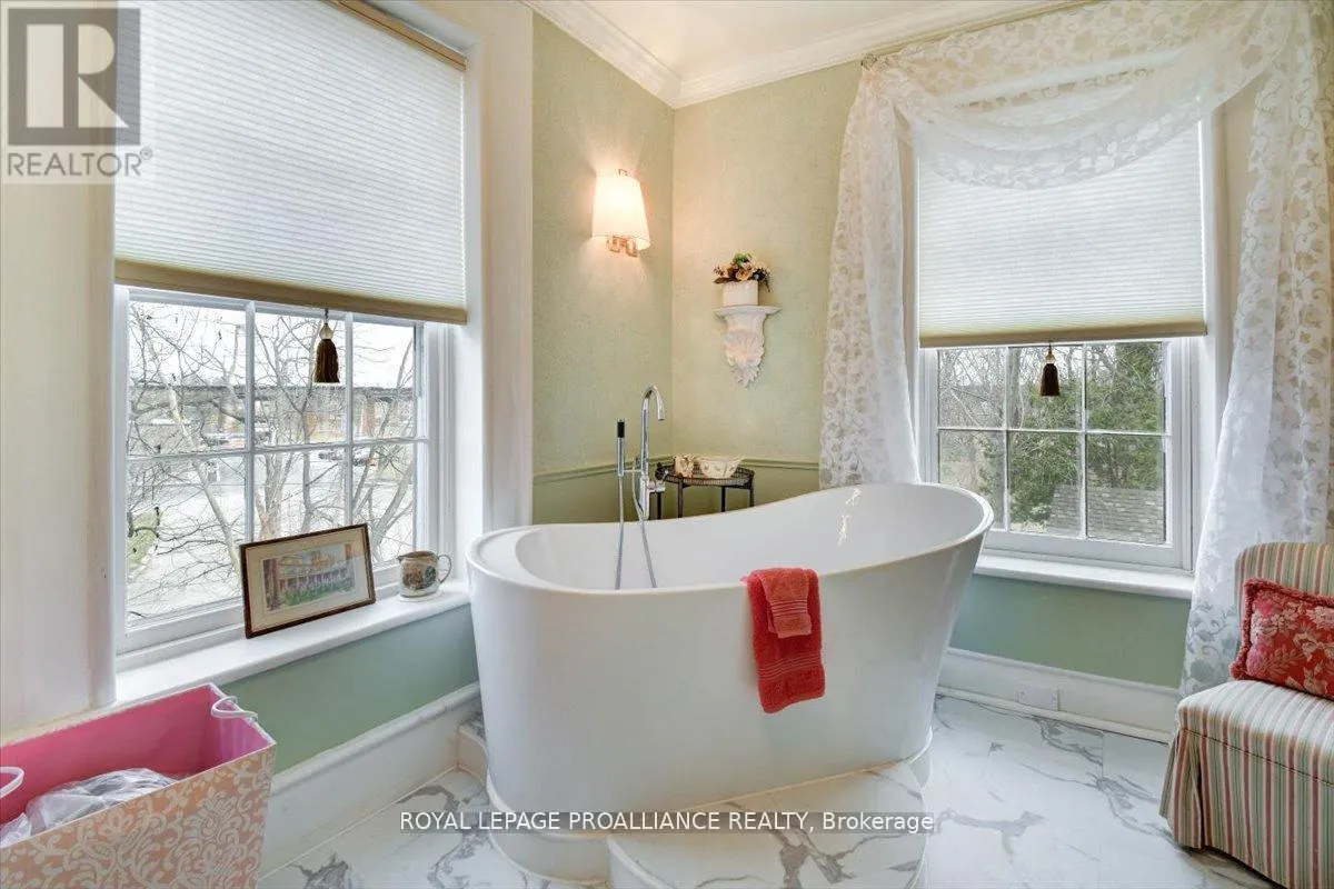 Dorset Street W & John St Discover timeless elegance and unmatched character in the heart of Port Hope. Built in 1860 to welcome travellers from the Grand Trunk Railway, this storied landmark began its life as Blackhams Hotel, later becoming Martins Hotel in 1875, and eventually the beloved Rochester House. Now masterfully restored, this residence boasts a unique trapezoid footprint, blending historic charm with modern sophistication. The home has 5 spacious bedrooms, 3.5 luxurious bathrooms, and over 9-foot ceilings adorned with detailed crown moulding. A grand, double living room sets the tone for stylish entertaining, flowing seamlessly into a formal dining room and a chef's dream kitchen outfitted with premium appliances and custom cabinetry. The expansive principal suite is a true retreat, featuring a spa-like ensuite with heated floors, double vanities, a freestanding soaking tub, and a marble walk-in shower. Sunlight pours into the south-facing sunroom, while cedar-planked decking and a beautifully landscaped, private backyard create the perfect oasis for quiet mornings or lively evenings. Located on one of Port Hope's most prestigious streets, this home is just a short stroll to the downtown core, VIA Rail Station, boutique shops, acclaimed restaurants, and a private footpath leading to the harbour. Included is 1/3 ownership of Railway Lands Corp, which comprise of 1.37 acres of parcel of land with Zoned COM3. The possibilities here are endless whether you envision a luxurious private residence, boutique commercial venture, or a unique live-work combination. This is more than a home it's a rare opportunity to own a landmark, lovingly restored for the next chapter in its story. (id:27476)