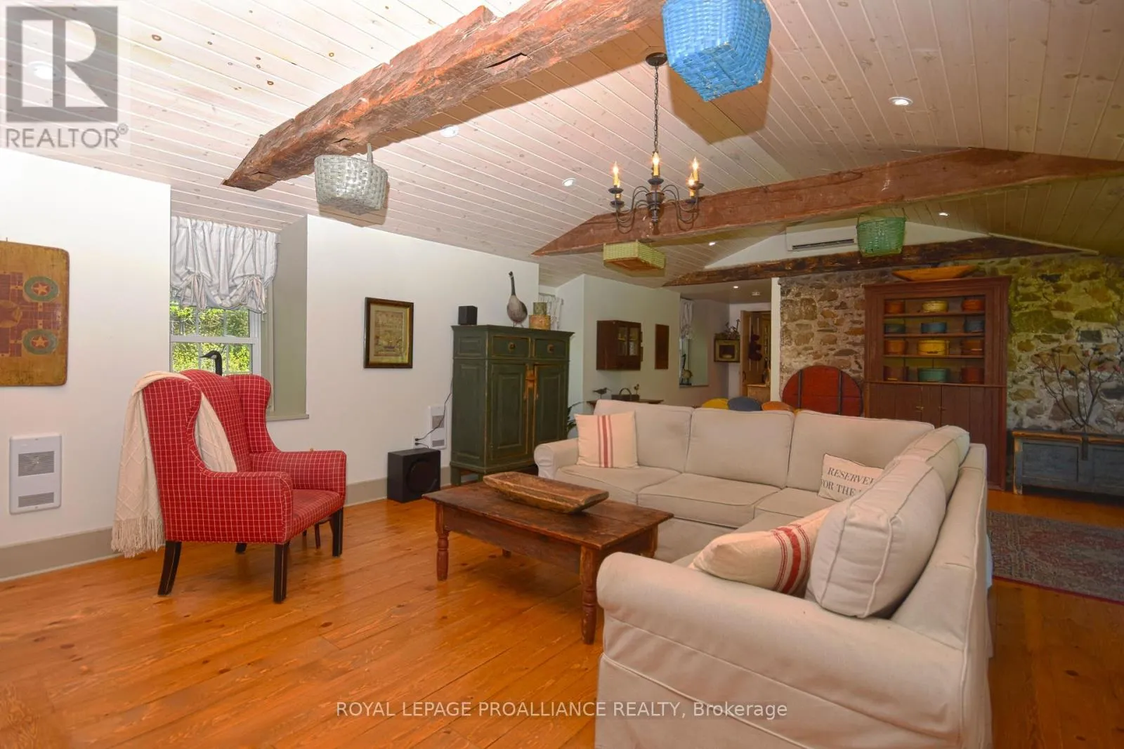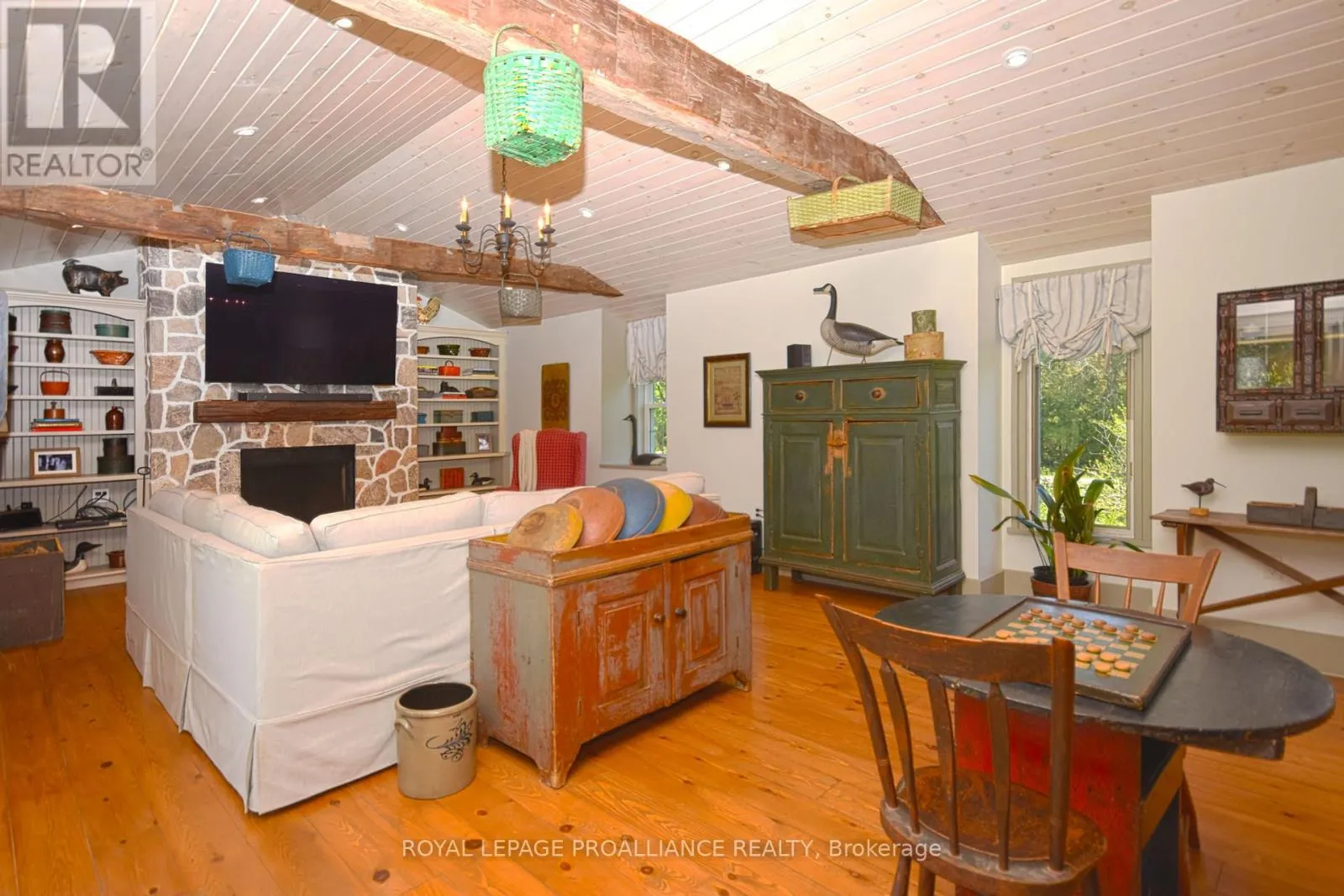 Cross Streets: Port Hope 5th Line. ** Directions: North off 401 on County Rd 10 turn east on 5th Line to Jamieson Rd. Welcome to your dream retreat on a quiet country lane! Built in 1868 by Samuel Robinson, this beautifully restored stone farmhouse has been meticulously updated with every detail considered in the last two years. With a traditional centre hall plan, the formal living & dining rooms retain their original wide trim, deep windowsills & quaint farmhouse floors. Offering four spacious bedrooms and three elegant bathrooms, the heart of the home features a 28x19 family room with a newly installed floor to ceiling stone fireplace, an impressive hearth, cathedral ceiling & bright west facing garden walkout, perfect for cozy gatherings. The chef-inspired Hickory Lane kitchen comes beautifully equipped with high-end appliances, soapstone counters & opens to an inviting screened porch with an east view; an ideal spot to enjoy your morning coffee. The upper level presents a large master suite plus three generously proportioned bedrooms to provide space for extended family & guests. Nestled in a mature garden setting of lush landscapes, this 25.663 acre farm comes with its original barn & 2 additional outbuildings & includes approximately 20 acres of organic workable land plus hardwood bush. Out building amenities: Barn - 65'x35' + 50'x20' + 35'x16' + 33'x12' /2275 sq ft + 1000 sq ft + 560 sq ft + 396 sq ft / Barn lower level averages 8' height & good for horses or storage - Shed - 29'x17' = 493 sq ft / Shed - 16'x12' = 192 sq ft. The efficient Geothermal heating system provides affordable heating & cooling throughout the year. Pre inspected, this pristine property is ready for you to move in & enjoy. Perfect for cozy gatherings, this serene oasis is just 10 minutes down the road from Port Hope & Lake Ontario. Don't miss this rare opportunity to own a piece of history. Located only a 60 minute drive east of Toronto, or catch the train in Cobourg for relaxed commuting. (id:27476)