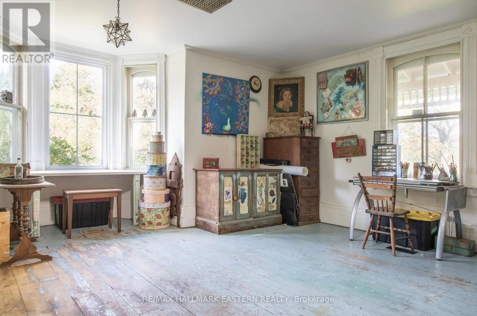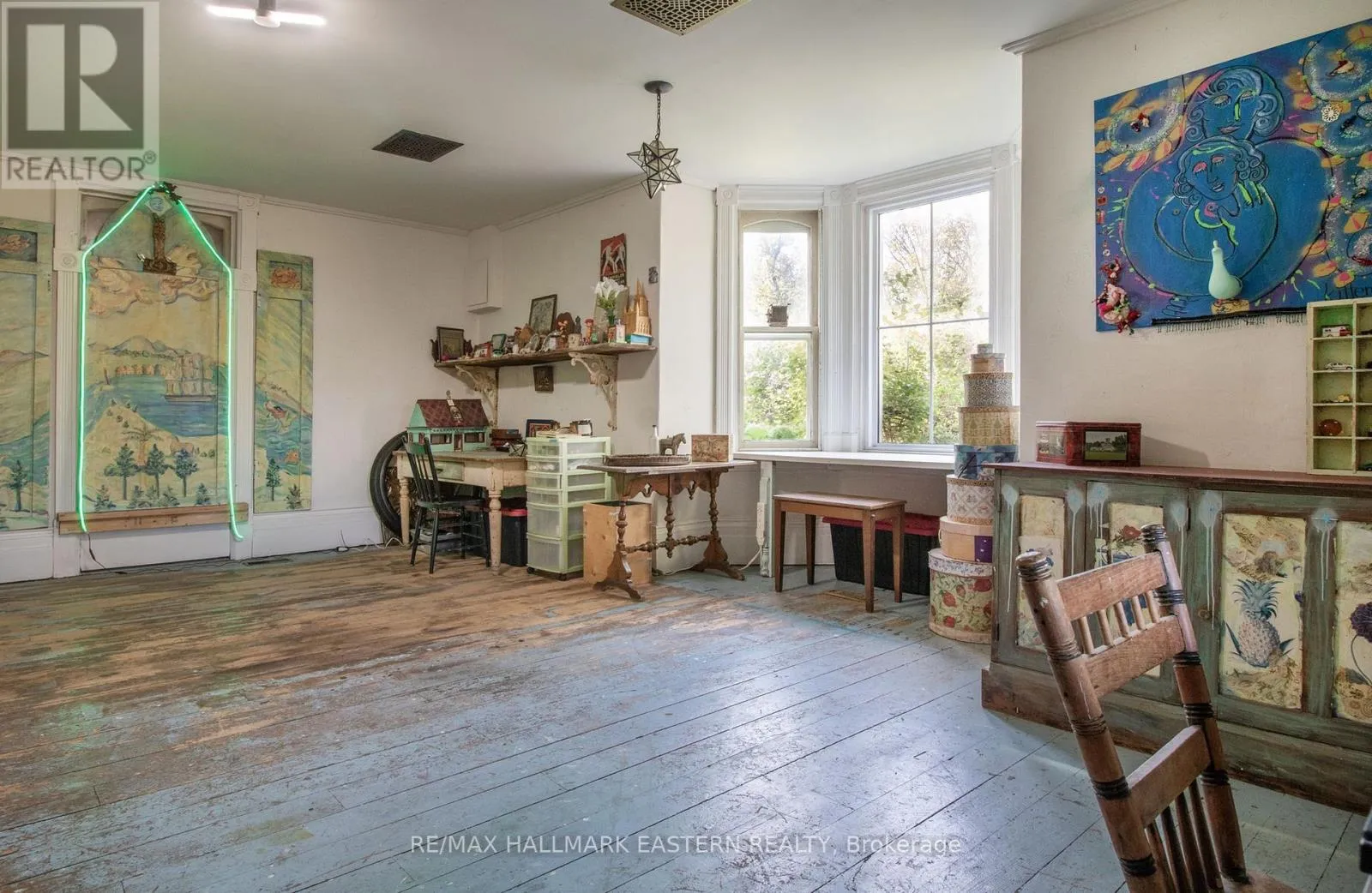 Cross Streets: County Road 10/Challice Line. ** Directions: On County Rd 10, between Millbrook and Port Hope, turn west on Challice Line. Property is on the southwest corner of Challice Line & County Road 10. "Around the Bend" on County Road 10 from Port Hope, on the southwest corner of the boundary between Northumberland and Peterborough Counties, you will find this unique c1840 Farmstead comprising 5.79 acres, south-bordered by 130 acres of protected Ganaraska forest. The elaborate Victorian brick Farmhouse, fronted with a verandah facing east over the valley fields to the farmer's sunrise, was long-ago expanded to approximately 3700 square feet to include a Garden Room overlooking the backyard with unfinished walkout basement beneath; and, a back and front entrance Inlaw Suite with cathedral ceiling, 2nd floor loft, and adjoining bedroom. In the summer of 2025, a heat pump was installed for energy efficient heating and cooling. This property retains its original Bank Barn, Coach House (now a workshop with loft), Potting Shed and a seasonal spring-fed pond. Wrapped with Boho aesthetics, and love of Nature and History, this package is perfect for multi-family homesteading, hobby farming or your other aspirations, in an inspirational setting, commutable to GTA within about one hour. Click on the multimedia link for Property Website with aerial video, more photos and info. (id:27476)
