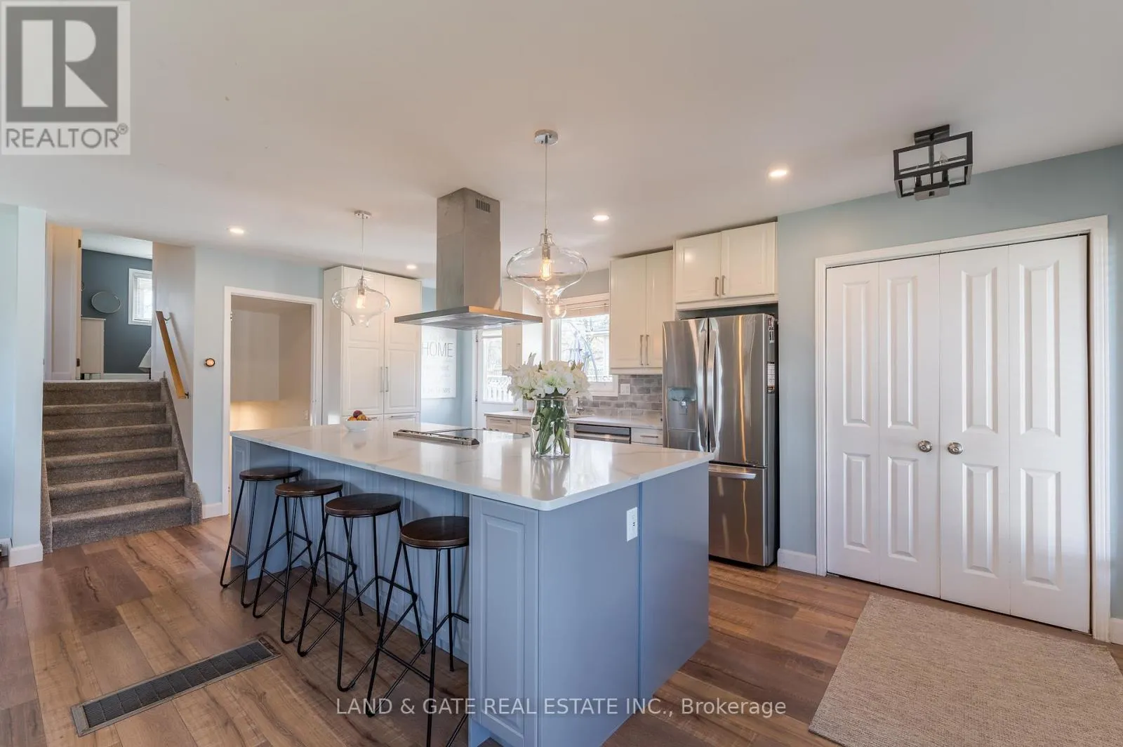 Cross Streets: Centennial and Hewson. ** Directions: Jocelyn St to Crossley Dr to Centennial Dr to Hewson Dr. Welcome to 25 Hewson Drive in the beautiful town of Port Hope. This extensively renovated 4-level backsplit is located in a desirable, family-friendly neighbourhood and is directly beside a park, offering privacy and green space right outside your door. Inside, the open-concept main floor is filled with natural light and highlighted by a stunning nine-foot quartz island, the centerpiece of a timelessly designed kitchen. The spacious living and dining areas are surrounded by windows with serene park views, creating the perfect gathering space. Upstairs features three bright bedrooms and a four-piece bath. Fresh broadloom carpet in the hallway and bedrooms adds warmth and comfort. The lower level offers a welcoming family room with stylish, low-maintenance vinyl plank flooring and a striking shiplap fireplace, accented by a reclaimed barn beam mantle and handcrafted steel brackets. This level also includes a versatile fourth bedroom/office with barn door, a modern three-piece bath, and a convenient laundry room. The finished basement extends your living space with a large recreation room and plenty of storage. Outdoors, the backyard is designed for both relaxation and entertaining. Off the kitchen, a spacious deck leads to a patio and hot tub, while further back, you'll find a cozy fire pit area - perfect for evenings with family and friends. Move-in ready, just minutes to downtown Port Hope, schools, and Hwy 401 - this home truly has it all. (id:27476)