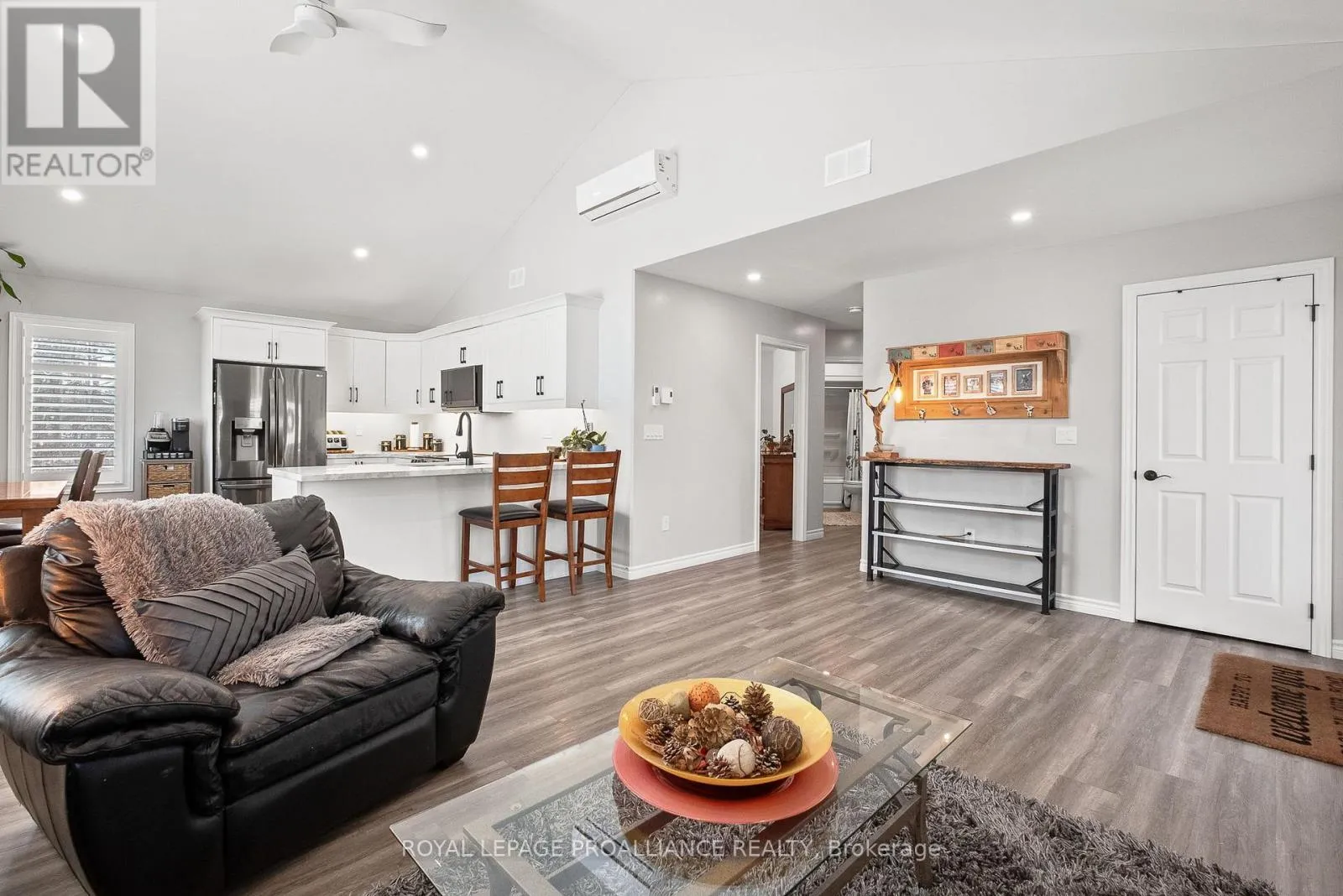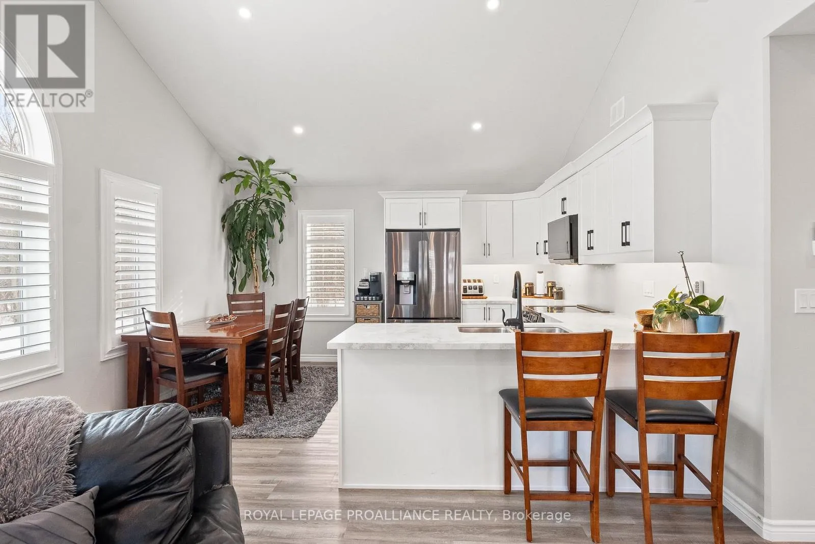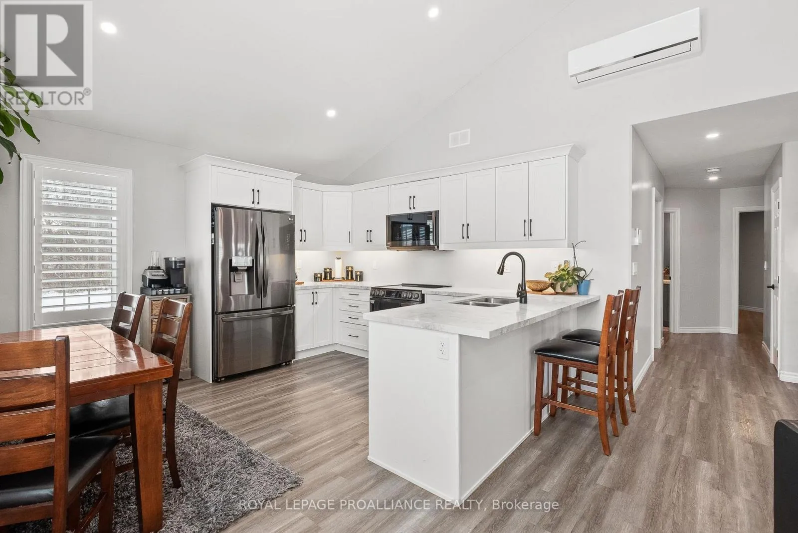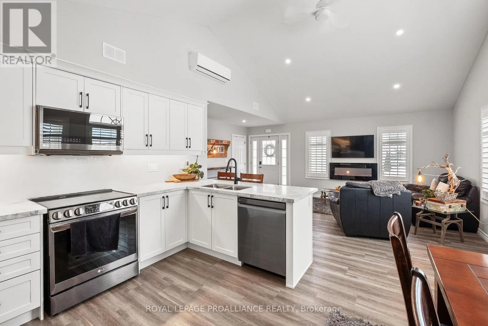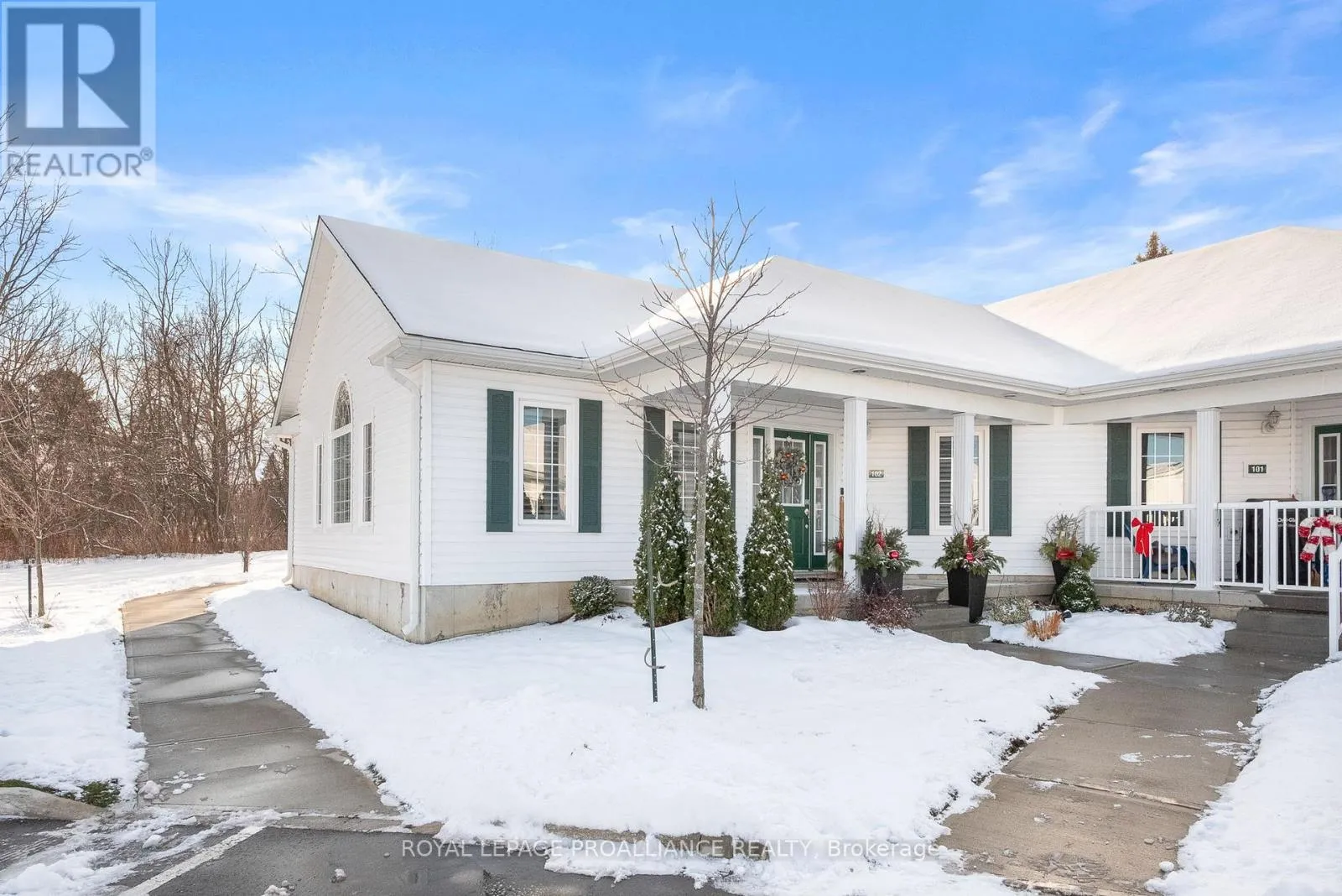 Cross Streets: Rose Glen Rd N & Croft St. ** Directions: 401 to Rose Glen Rd N to Croft St. Welcome to Unit 102 at 300 Croft St in Port Hope. Newly built in 2023, this condo townhouse offers effortless, modern living across one level. With 2 bedrooms plus a flex laundry and den space, and 1.5 baths, the home features stylish finishes throughout including vinyl plank flooring, sleek quartz counters in the kitchen and bathrooms, upgraded under mount kitchen lighting, California shutters, upgraded LG black stainless steel appliances, and an extended kitchen countertop for added seating. The bright open concept layout is enhanced by 9 ft ceilings, vaulted ceilings in the kitchen and living room, and a large window with a view that's not to be missed. An oversized laundry room provides excellent flexibility, housing an all in one wash and dry centre while doubling as a den area and utility or storage space. The owned on demand tankless water heater adds peace of mind, and all inclusive services such as garbage, snow removal, grass cutting, and garden maintenance keep day to day living simple. The parking space is located directly in front of the unit's door for added convenience. Backing onto the Trinity College green space rather than neighbouring units, this condo is surrounded by mature trees and lush greenery. With easy access to the 401 and nearby amenities, this home delivers comfort, convenience, and community. **Note: BBQs are allowed** (id:27476)