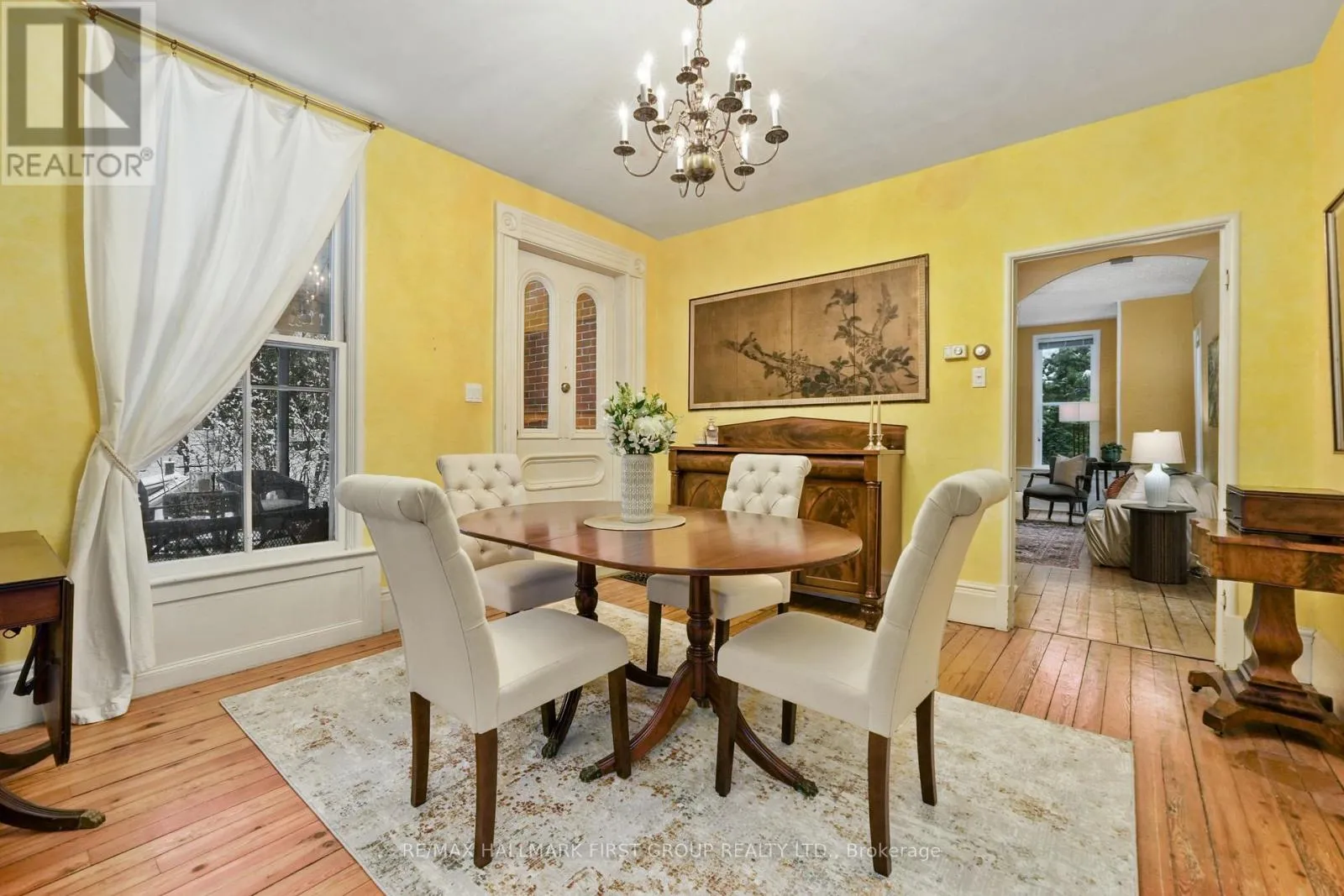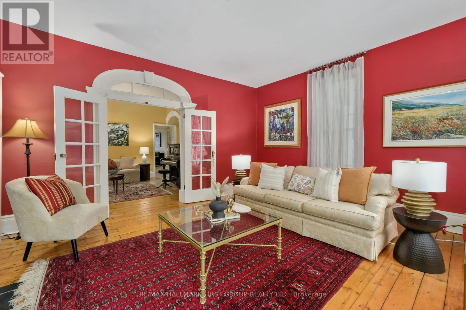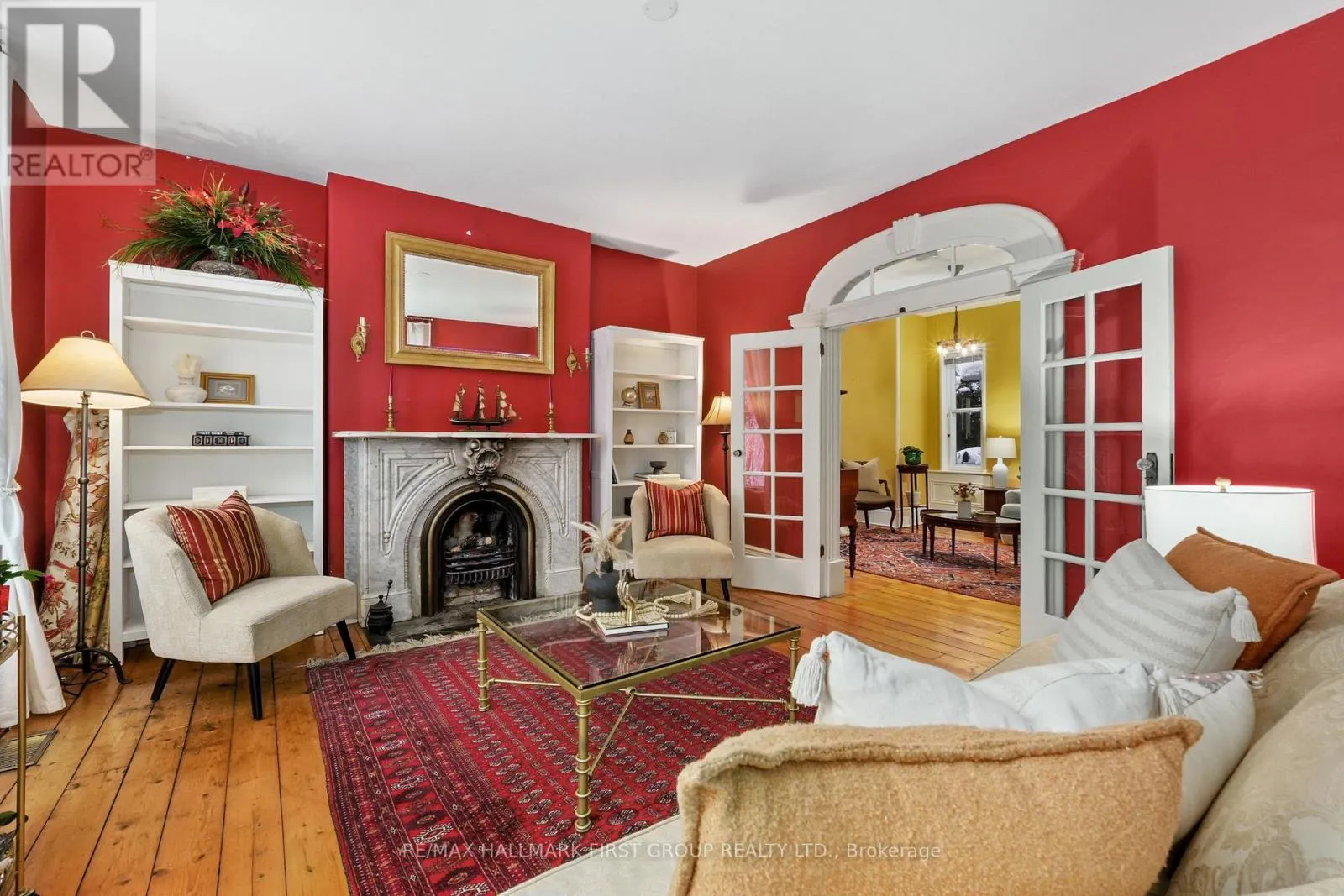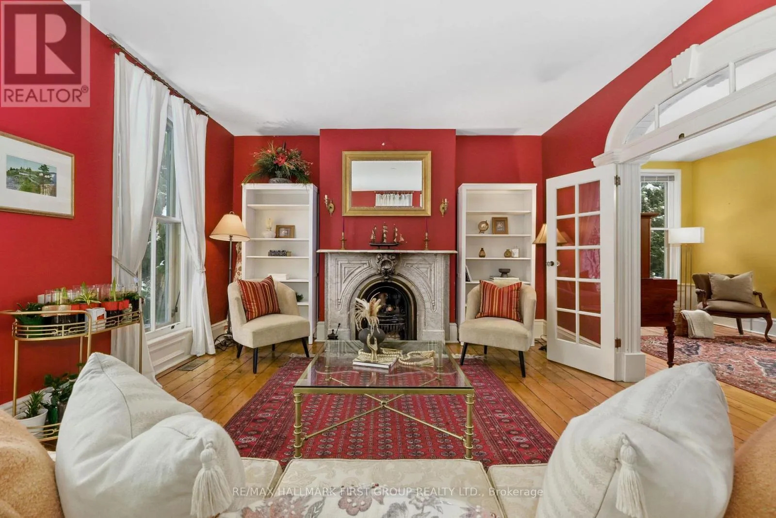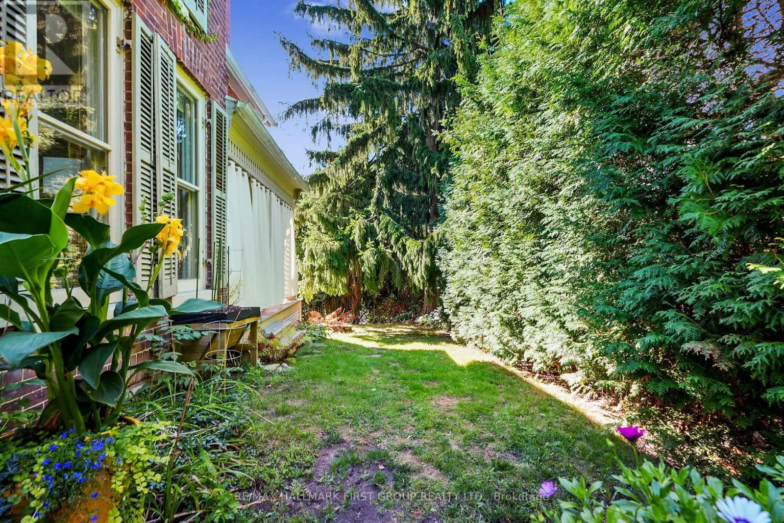 Cross Streets: Bruton St & Pine St N. ** Directions: CR2 (Walton St) heading W, Right onto Pine St, Left onto Bruton St. Located on a picturesque, tree-lined street in the heart of Downtown Port Hope, this distinctive 1850s-built home blends timeless character with thoughtful modern updates. Guests are greeted by a beautiful open foyer featuring a striking floor design and large windows that flood the space with natural light. The living room impresses with a sun-soaked layout, a wall of windows, and a soaring two-storey ceiling. In contrast, the spacious dining room showcases detailed trim and high baseboards, an ideal setting for holiday gatherings and year-round entertaining. The kitchen is designed for hosting, offering generous cabinet and counter space, a coffee bar area, gas stove, breakfast bar, and a prep counter accented by pendant lighting. A character-filled sitting or music room connects to the family room through an elegant arched doorway. The cozy family room features an ornate decorative fireplace and floor-to-ceiling windows overlooking the gardens. A main-floor three-piece bathroom and a convenient laundry room complete this level. Upstairs, the primary bedroom offers a spacious retreat with dual closets featuring French doors, high ceilings, and recessed lighting. The bathroom includes skylights, a glass shower enclosure, and a relaxing soaker tub. Two well-appointed bedrooms and an open loft ideal for a home office or guest space complete the upper floor plan. Outside, a private secret garden oasis awaits. Enjoy a covered porch perfect for morning coffee in any weather, a back patio ideal for alfresco dining, and lush mature trees and gardens, all complemented by a charming bunkie. Situated moments from Trinity College School local amenities, downtown shops, and restaurants, this home offers the exceptional lifestyle Port Hope is known for, with easy access to the 401. (id:27476)