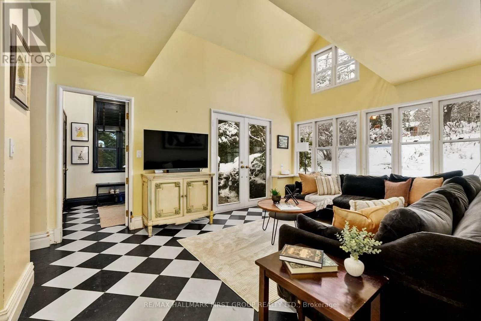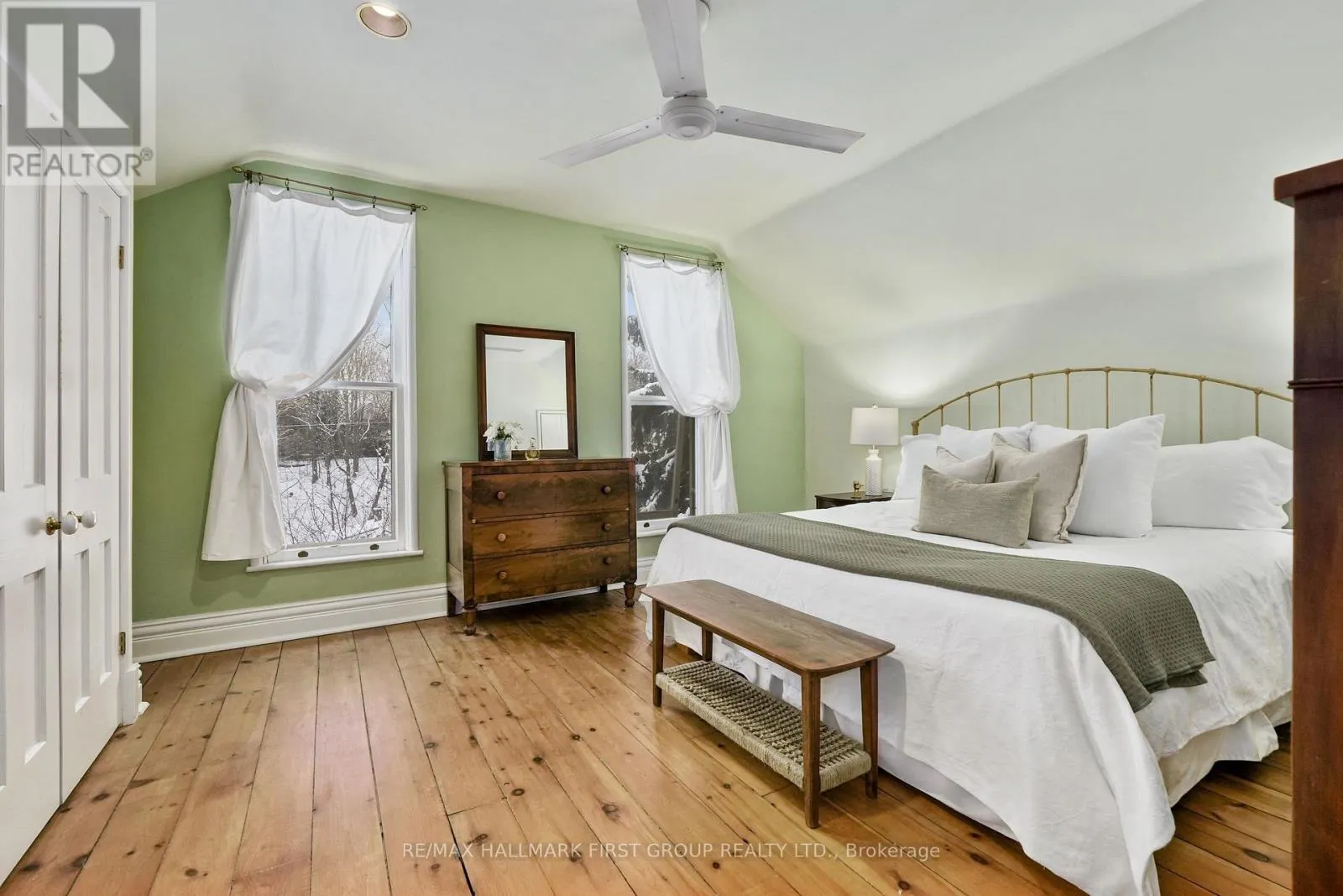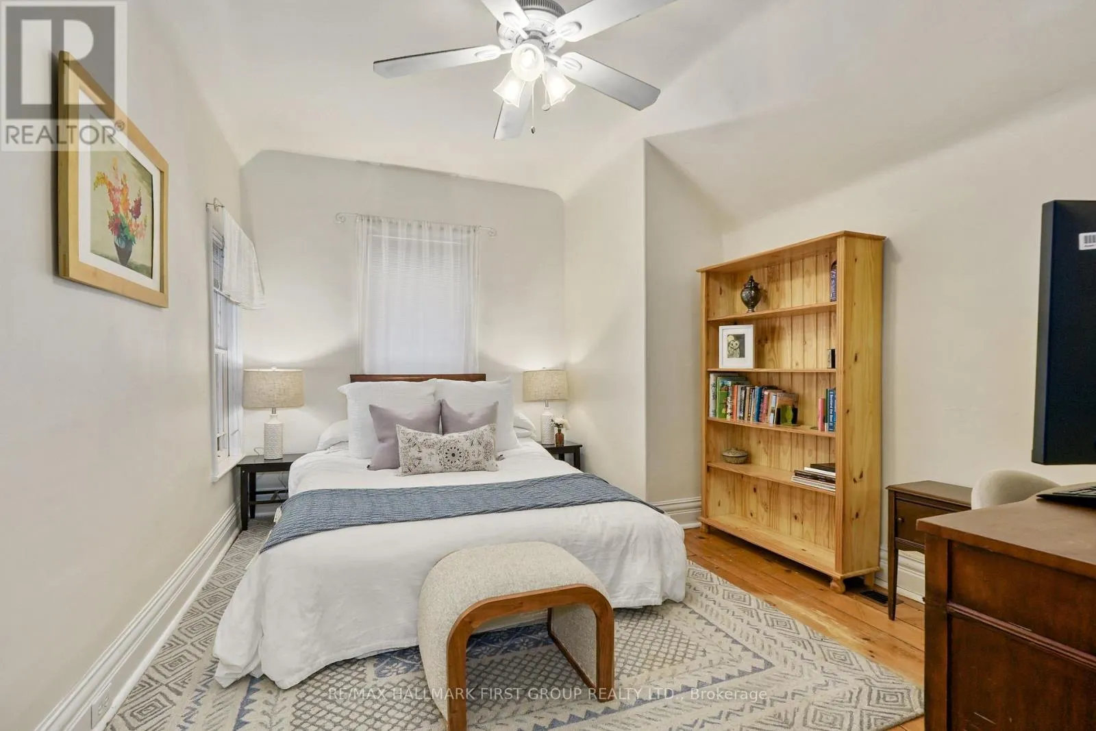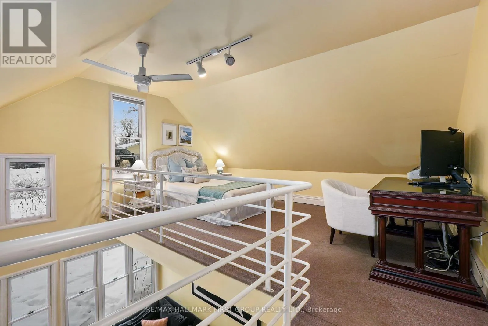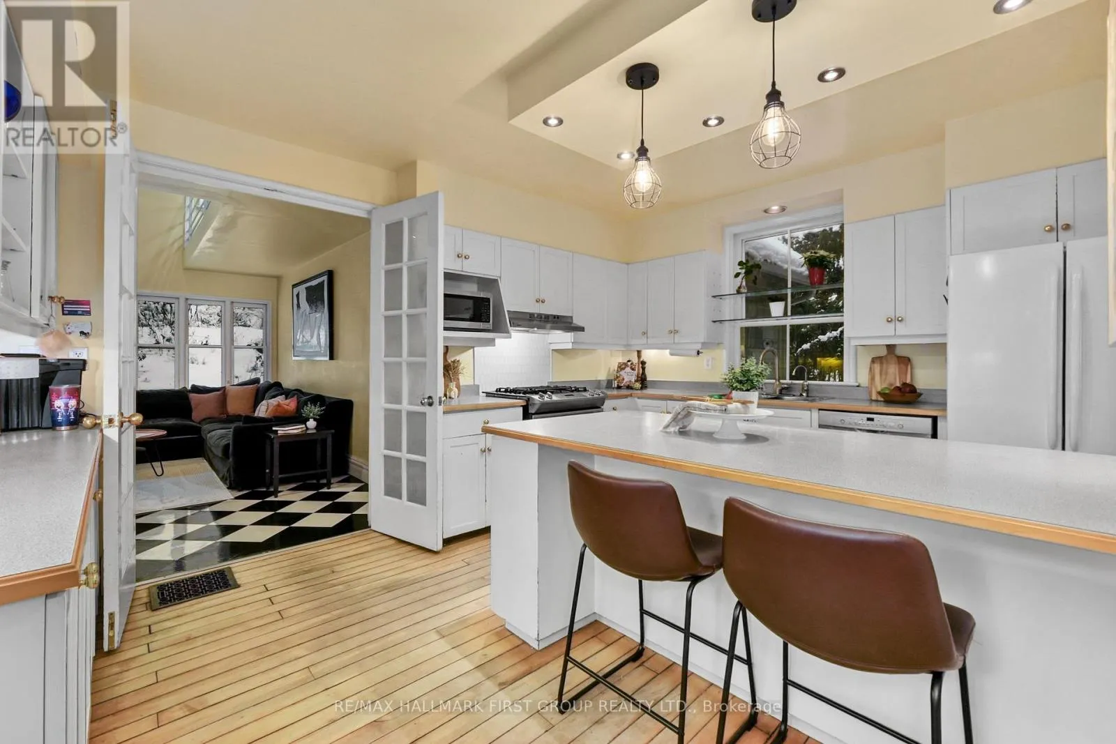 Cross Streets: Bruton St & Pine St N. ** Directions: CR2 (Walton St) heading W, Right onto Pine St, Left onto Bruton St. Located on a picturesque, tree-lined street in the heart of Downtown Port Hope, this distinctive 1850s-built home blends timeless character with thoughtful modern updates. Guests are greeted by a beautiful open foyer featuring a striking floor design and large windows that flood the space with natural light. The living room impresses with a sun-soaked layout, a wall of windows, and a soaring two-storey ceiling. In contrast, the spacious dining room showcases detailed trim and high baseboards, an ideal setting for holiday gatherings and year-round entertaining. The kitchen is designed for hosting, offering generous cabinet and counter space, a coffee bar area, gas stove, breakfast bar, and a prep counter accented by pendant lighting. A character-filled sitting or music room connects to the family room through an elegant arched doorway. The cozy family room features an ornate decorative fireplace and floor-to-ceiling windows overlooking the gardens. A main-floor three-piece bathroom and a convenient laundry room complete this level. Upstairs, the primary bedroom offers a spacious retreat with dual closets featuring French doors, high ceilings, and recessed lighting. The bathroom includes skylights, a glass shower enclosure, and a relaxing soaker tub. Two well-appointed bedrooms and an open loft ideal for a home office or guest space complete the upper floor plan. Outside, a private secret garden oasis awaits. Enjoy a covered porch perfect for morning coffee in any weather, a back patio ideal for alfresco dining, and lush mature trees and gardens, all complemented by a charming bunkie. Situated moments from Trinity College School local amenities, downtown shops, and restaurants, this home offers the exceptional lifestyle Port Hope is known for, with easy access to the 401. (id:27476)