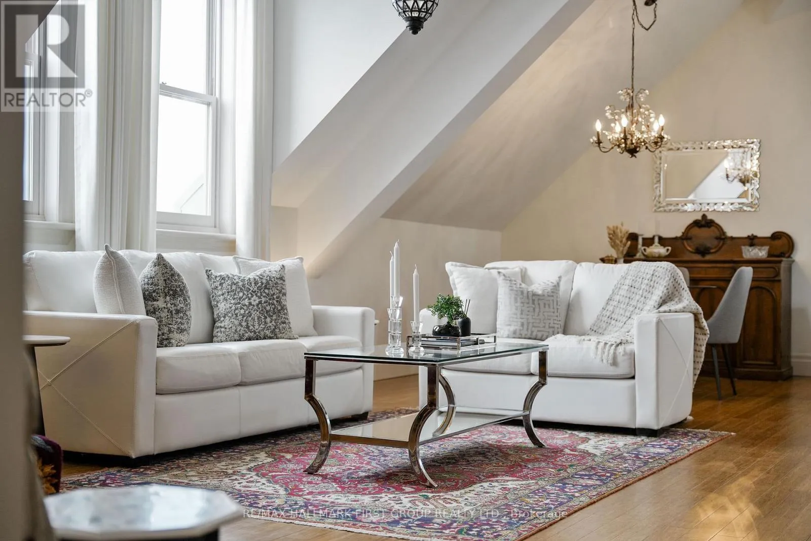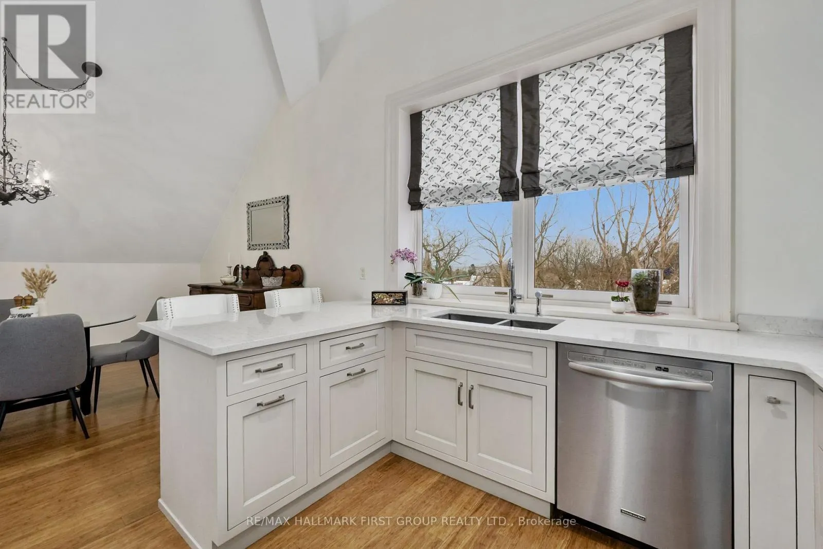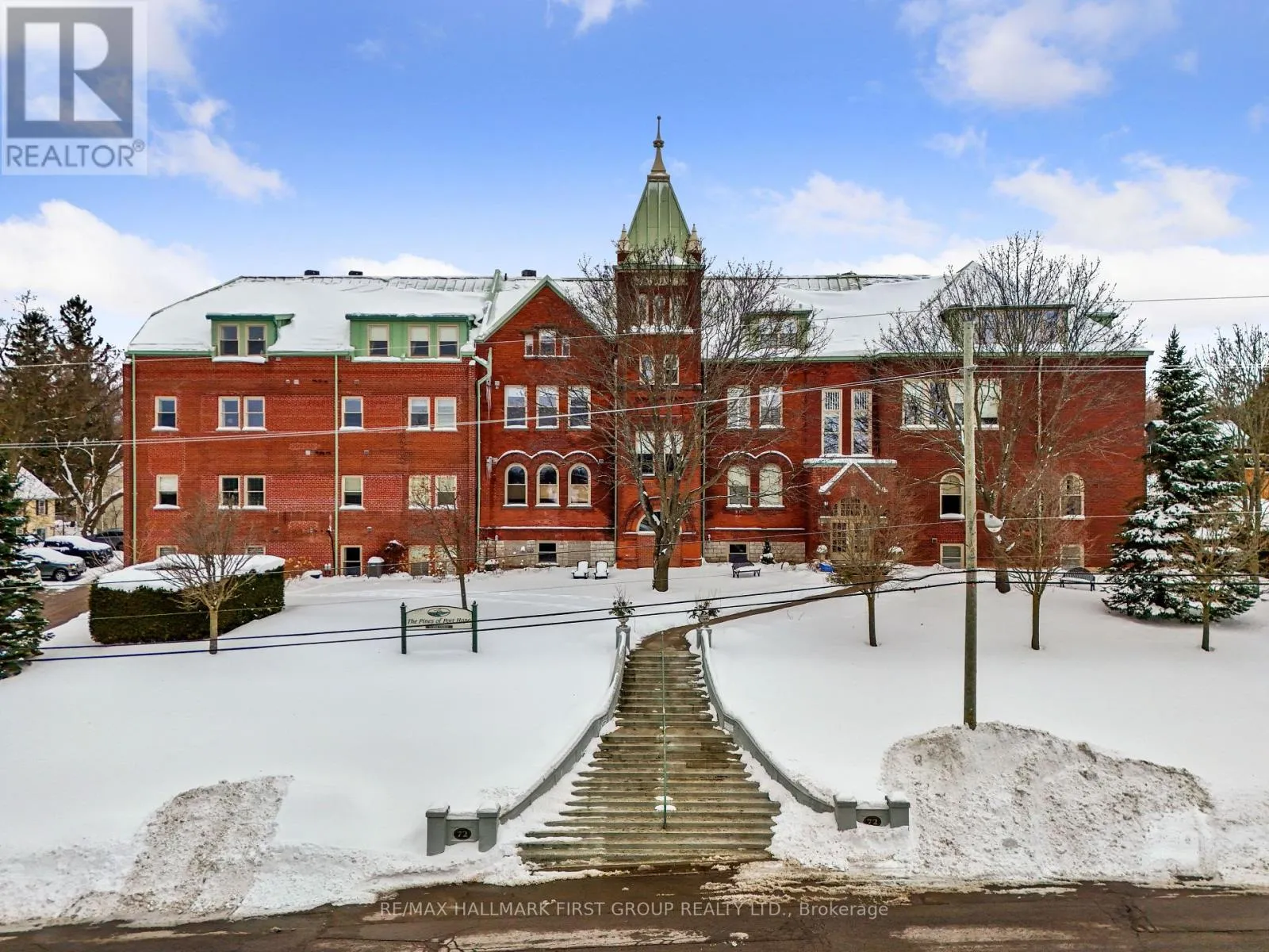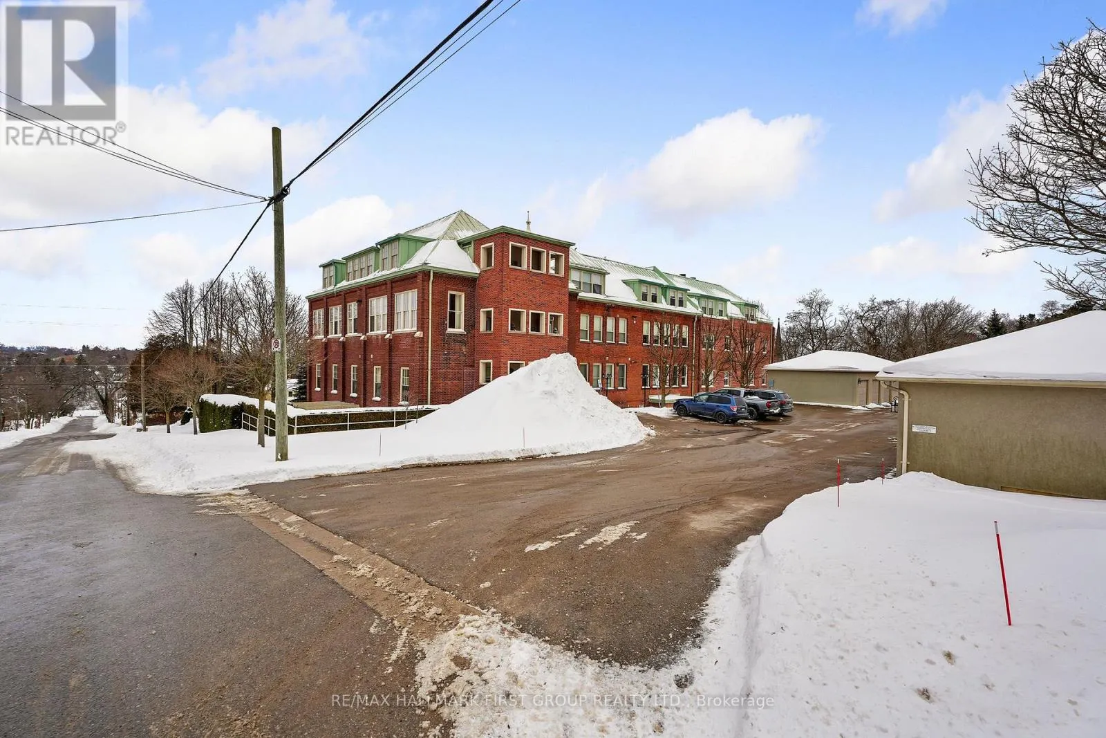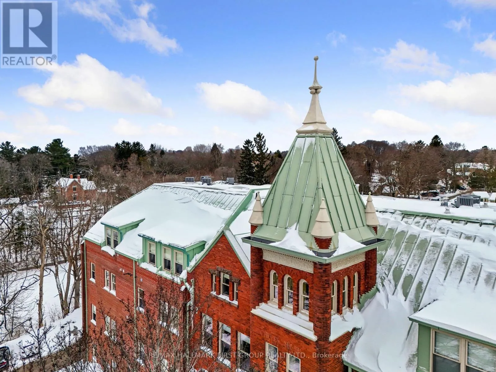 Cross Streets: Pine St N & Bedford St. ** Directions: Walton St heading W, Right onto Pine St N. Welcome to The Pines in Port Hope, a boutique condominium conversion of a historic schoolhouse offering luxurious loft-style living. Renowned for its architectural character, soaring ceilings, and unbeatable location just moments from downtown, this unique residence blends timeless charm with modern comfort. The bright, open-concept living space features a carpet-free layout and a sun-soaked living room with dramatic vaulted ceilings. A well-appointed dining area flows seamlessly into the kitchen, where you'll find stainless steel appliances, ample cabinetry, a breakfast bar, and a large window over the undermount sink that fills the space with natural light. The main level offers a spacious primary suite with impressive ceiling height, a walk-in closet, and a spa-inspired ensuite complete with a glass-enclosed shower and separate soaker tub. An additional bedroom and full bathroom complete this level. Upstairs, the second level provides a generous family room with an office nook, along with a guest bedroom featuring a skylight for added brightness. The building includes garage parking and is conveniently located close to amenities, downtown Port Hope, and offers easy access to the 401. This is the low-maintenance lifestyle you've been looking for, without compromising on space, style, or character. (id:27476)