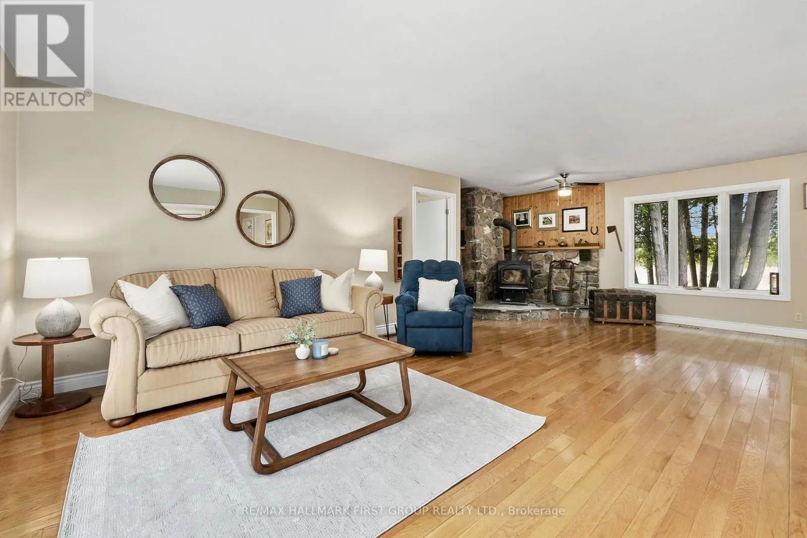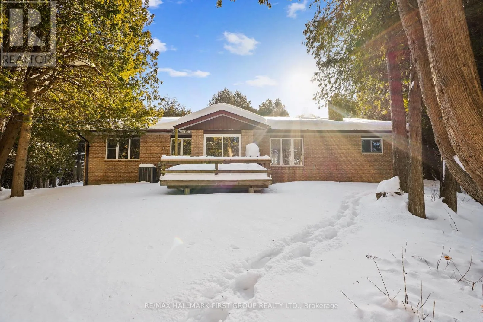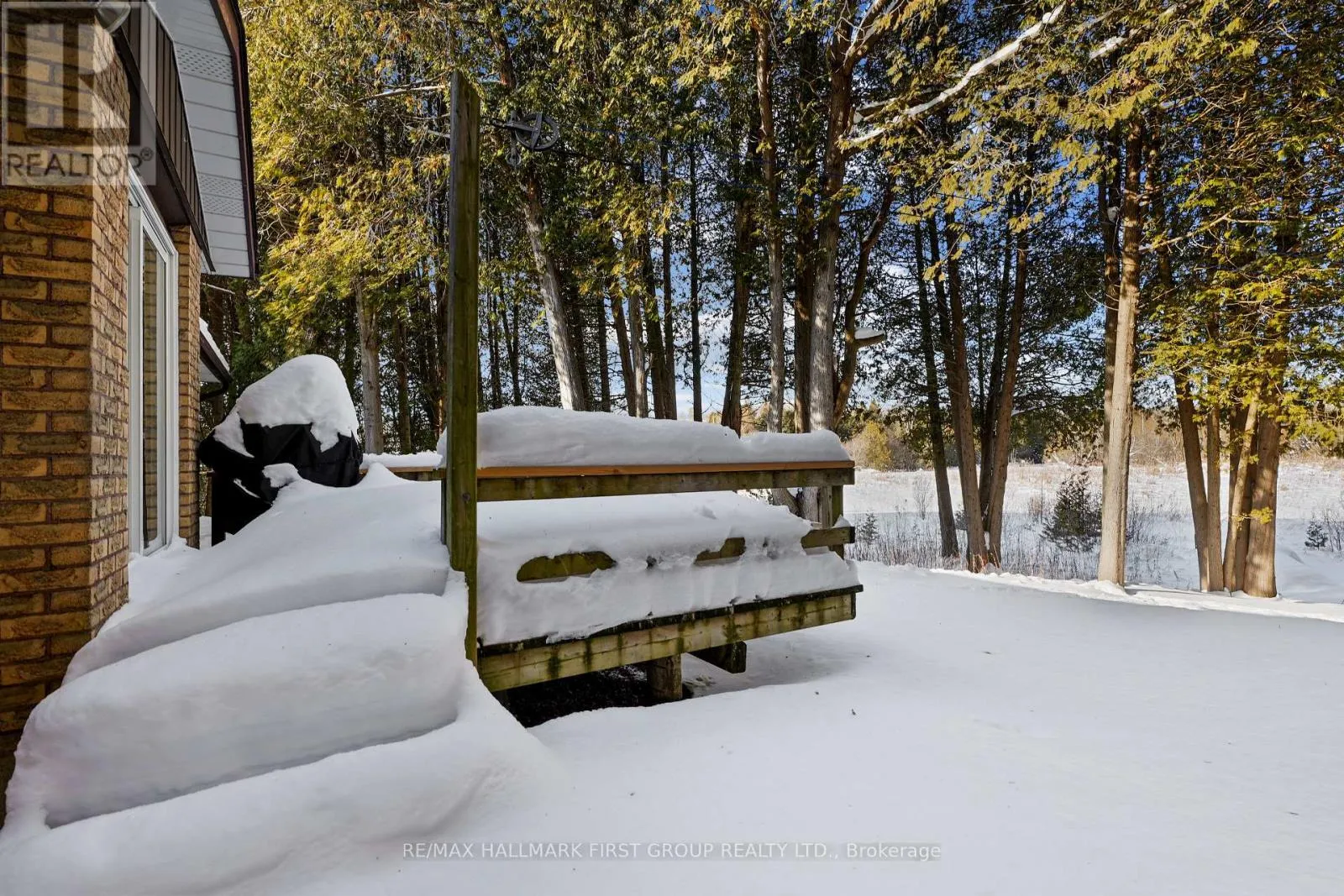 Cross Streets: Campbell Rd & 7th Line. ** Directions: CR28 North to 7th Line, left onto Campbell Rd. Classic charm meets country living in this timeless brick bungalow on 25 forested acres. Offering the ease of one-level living with the added flexibility of a finished lower level and separate entrance, this home suits multigenerational families or those seeking in-law potential. A covered front entrance leads into bright and airy principal rooms where natural light pours through a large picture window in the living room, framing serene views of the surrounding landscape. A cozy wood stove with a stone hearth adds warmth and character. The open-concept dining area features a walkout to the back deck, which is ideal for outdoor entertaining or simply enjoying peaceful country mornings. The kitchen is stylish and functional, with white cabinetry, matching appliances, and a classic tile backsplash. Two spacious main-floor bedrooms, each with its own full ensuite, while a powder room off the front hall serves guests comfortably. Downstairs, the finished lower level expands the living space with a generous rec room, games or media room, office area, large bedroom, and laundry room with ample storage. A separate entrance provides privacy and versatility for extended family or guests. Outdoors, take in the sights and sounds of nature from the deck or explore the surrounding forest. The attached garage includes an additional storage room, extending versatility. All this country tranquility is just 10 minutes from town amenities and convenient 401 access, a perfect blend of seclusion and accessibility. Note: NEW Furnace installed September 2025. (id:27476)