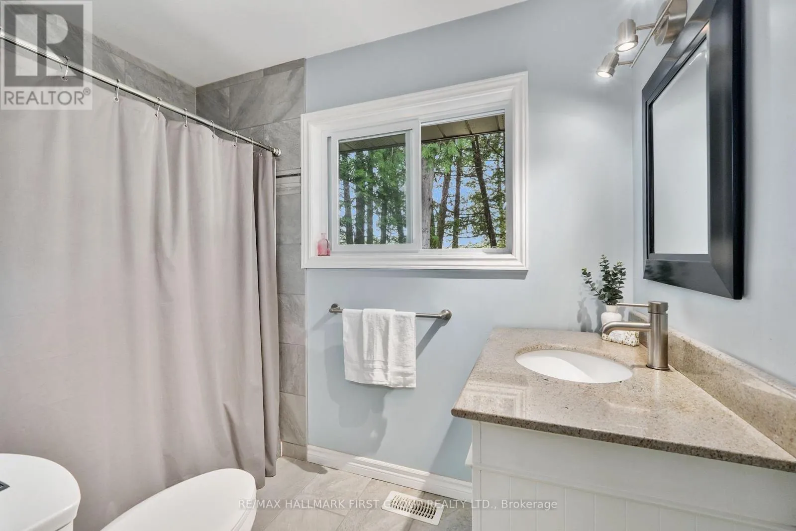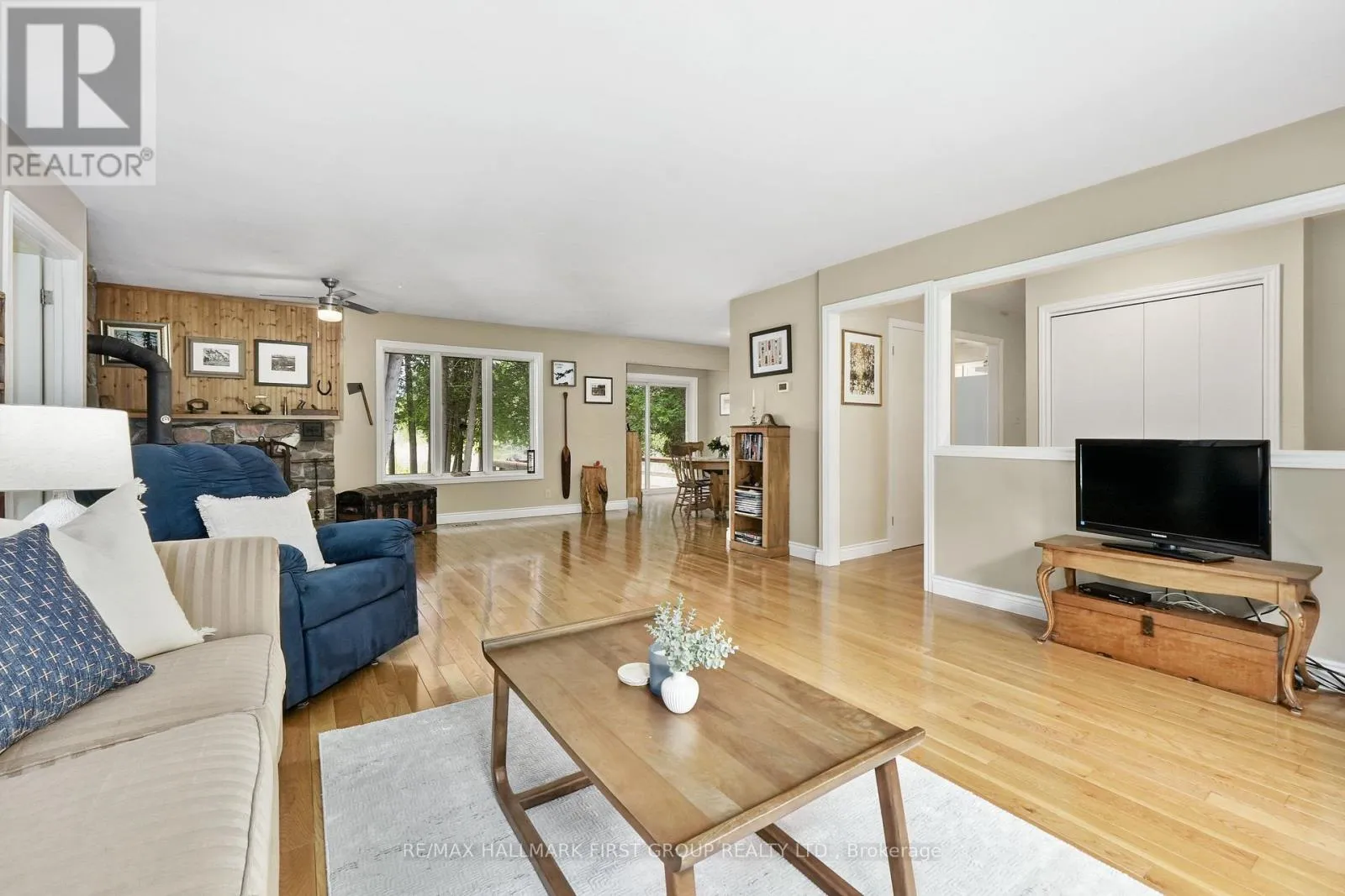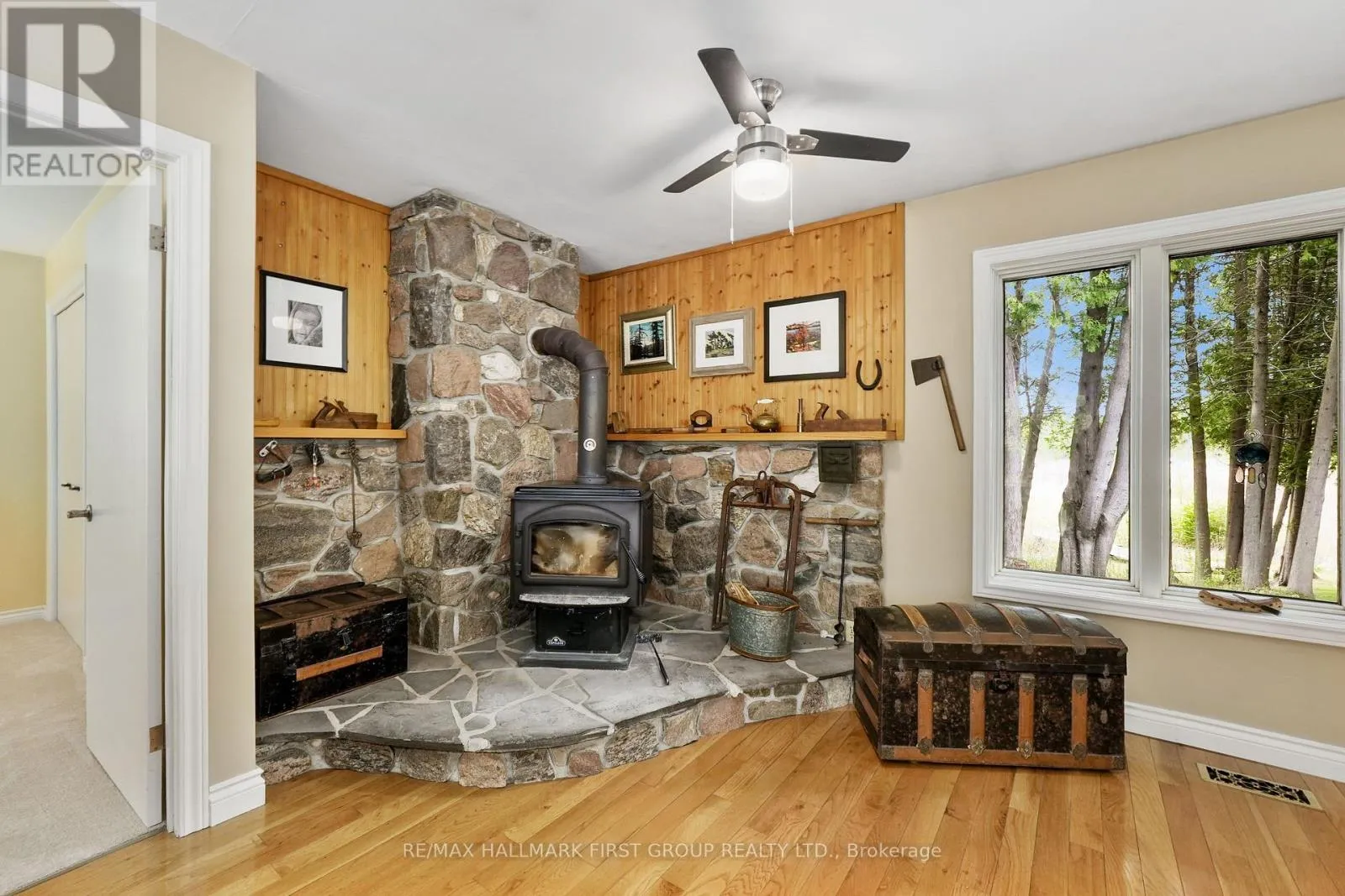 Cross Streets: Campbell Rd & 7th Line. ** Directions: CR28 North to 7th Line, left onto Campbell Rd. Classic charm meets country living in this timeless brick bungalow on 25 forested acres. Offering the ease of one-level living with the added flexibility of a finished lower level and separate entrance, this home suits multigenerational families or those seeking in-law potential. A covered front entrance leads into bright and airy principal rooms where natural light pours through a large picture window in the living room, framing serene views of the surrounding landscape. A cozy wood stove with a stone hearth adds warmth and character. The open-concept dining area features a walkout to the back deck, which is ideal for outdoor entertaining or simply enjoying peaceful country mornings. The kitchen is stylish and functional, with white cabinetry, matching appliances, and a classic tile backsplash. Two spacious main-floor bedrooms, each with its own full ensuite, while a powder room off the front hall serves guests comfortably. Downstairs, the finished lower level expands the living space with a generous rec room, games or media room, office area, large bedroom, and laundry room with ample storage. A separate entrance provides privacy and versatility for extended family or guests. Outdoors, take in the sights and sounds of nature from the deck or explore the surrounding forest. The attached garage includes an additional storage room, extending versatility. All this country tranquility is just 10 minutes from town amenities and convenient 401 access, a perfect blend of seclusion and accessibility. Note: NEW Furnace installed September 2025. (id:27476)