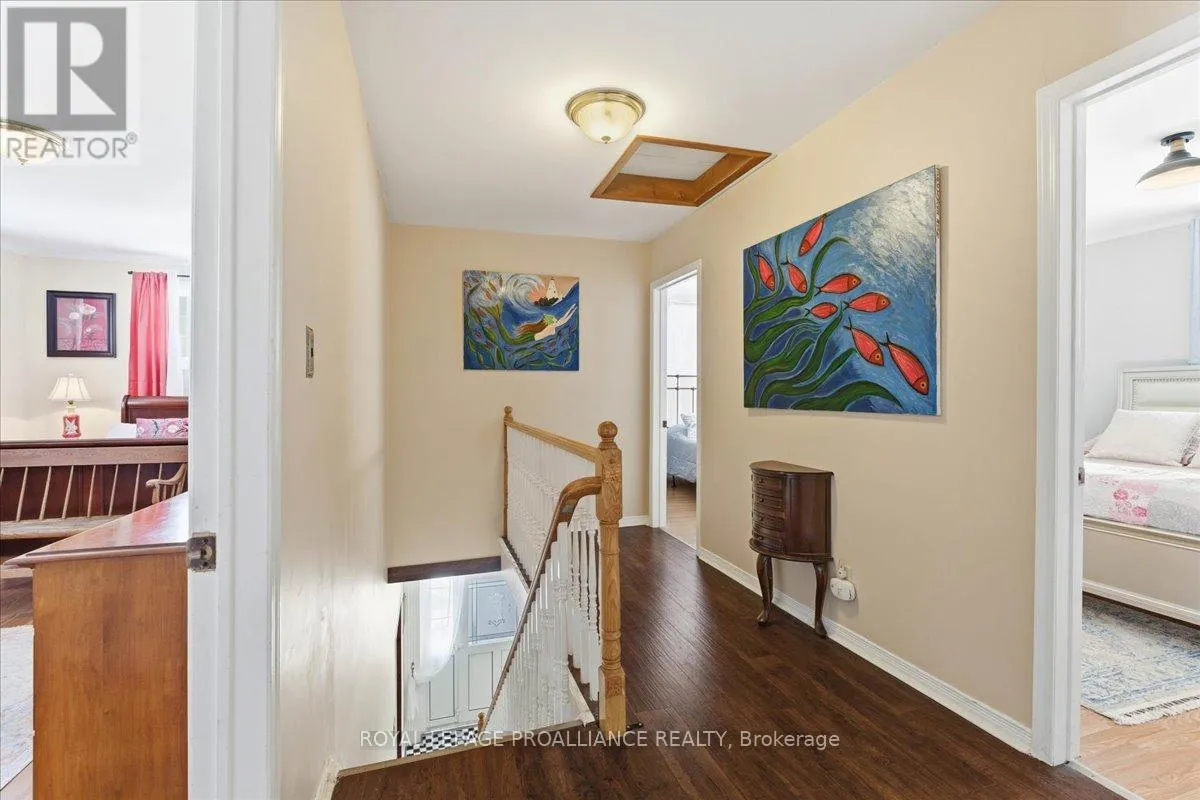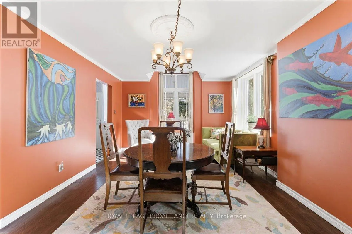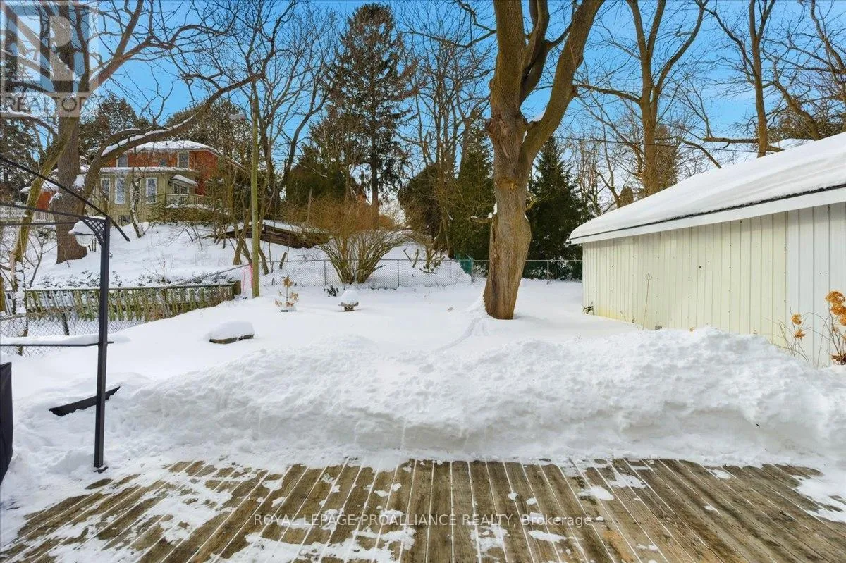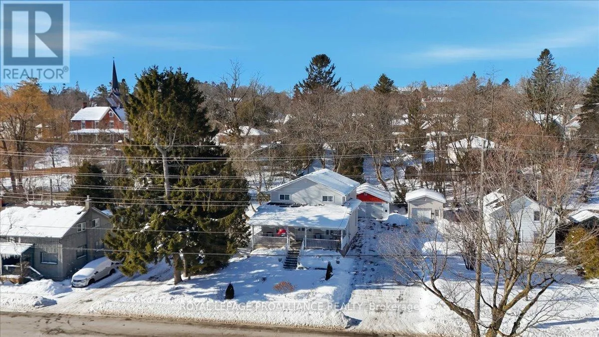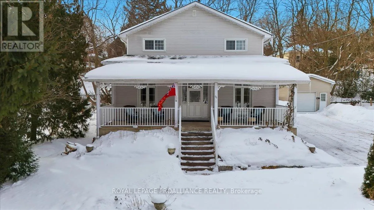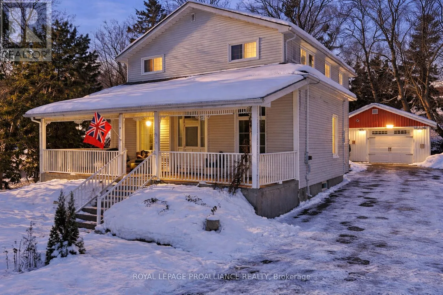Cross Streets: Molson & Cavan Street. ** Directions: West on Molson Street and South on Cavan. Century home dating to the late 1800s with a later full second-storey addition, set on a quiet stretch of Cavan Street in Port Hope's historic core. From the deep covered front porch, there is a clear view of the Ganaraska River, known for its seasonal salmon run, with parkland, rivers trails and downtown Port Hope within walking distance. The centre-hall layout offers four true bedrooms, a rare feature for homes of this era. The main floor includes an eat-in kitchen with walk-out to the yard, formal dining room, living room, main-floor laundry, and a 3-piece bath. Upstairs, four bedrooms are anchored by a 5-piece bathroom with soaker tub and modern shower. The primary bedroom features a private balcony overlooking the fenced backyard. Set on an oversized in-town lot, the property has been professionally landscaped, with gardens and lawn that become a summer showstopper. A private double driveway and detached garage add practicality rarely found this close to the core. This is the kind of home people move to Port Hope for. Not a designated heritage property, offering historic character with out renovations restrictions and a strong connection to the Ganaraska River. *Property Tour Video Under Virtual Tour. (id:27476)