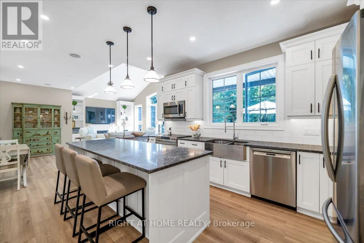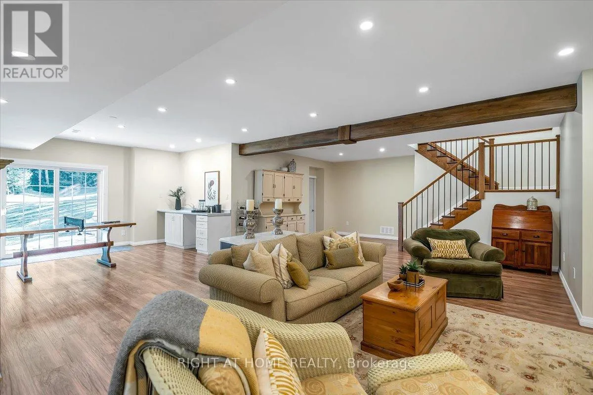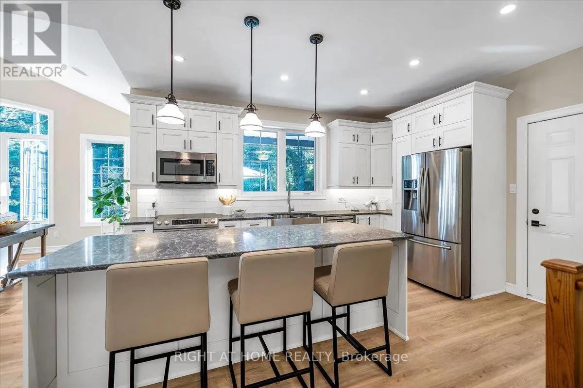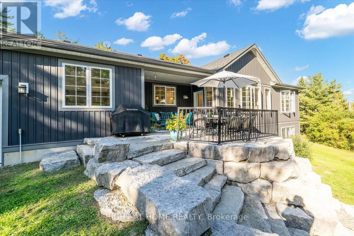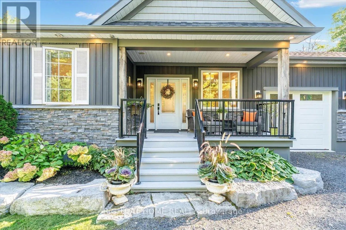 Cross Streets: Hwy 28 & 9th con. ** Directions: hwy 28 north to 9th line. Welcome to this stunning, updated detached bungalow offering nearly 3,500 sq ft of finished living space on a quiet country lot just under 1 acre. With 5 bedrooms (3 up, 2 down) and a bright, open-concept layout, this home is ideal for families, hobbyists, or multi-generational living. Step inside to a spacious foyer and an airy living room with cathedral ceilings, expansive windows, and a w/o to a raised backyard patio overlooking the sunken terrace below. The chefs kitchen is an entertainers dream, featuring stone countertops, a large island, stainless steel appliances, and an undermount farmhouse style sink below a picture window overlooking the backyard. Enjoy indoor-outdoor living with a covered front porch, two-level patio, and direct access to a heated double garage with high ceilings plus a rear garage door for convenient backyard access. The primary suite offers a peaceful retreat with large windows, a walk-in closet, and a 4-piece ensuite featuring a glass shower and heated floors. Two additional upstairs bedrooms offer generous space, large windows, and lighted closets. The fully finished lower level includes a spacious rec room with built-in shelving, 2 bedrooms with above grade windows, a 3-piece bathroom, a walk out to a stone patio and a wet bar set up perfectly for an in-law suite or extended family. The home features a fully installed backup generator for peace of mind, and a built-in sound system for effortless entertaining. Just a 3-minute drive to the lakeside village of Bewdley, you're never far from essentials- whether its a quick grocery run or a last-minute ingredient. Enjoy dining and access to Rice Lake for boating in summer and ice fishing in winter. Minutes to Ganaraska Forest's 11,000+ acres of trails and only 20 minutes to Hwy 407, Hwy 401, Peterborough, and Port Hope this home is perfectly situated for commuters, nature lovers, and anyone seeking peace and space without sacrificing convenience. Move in and enjoy- nothing left to do! (id:27476)