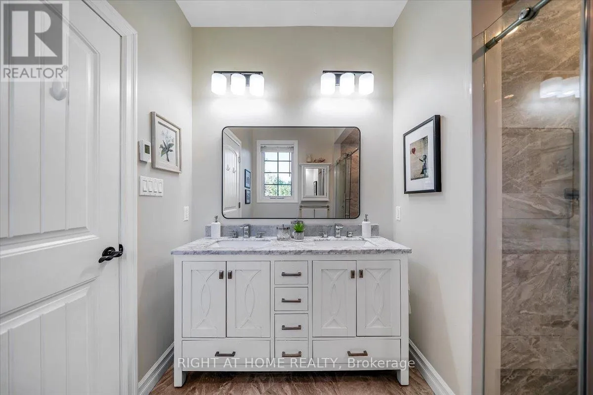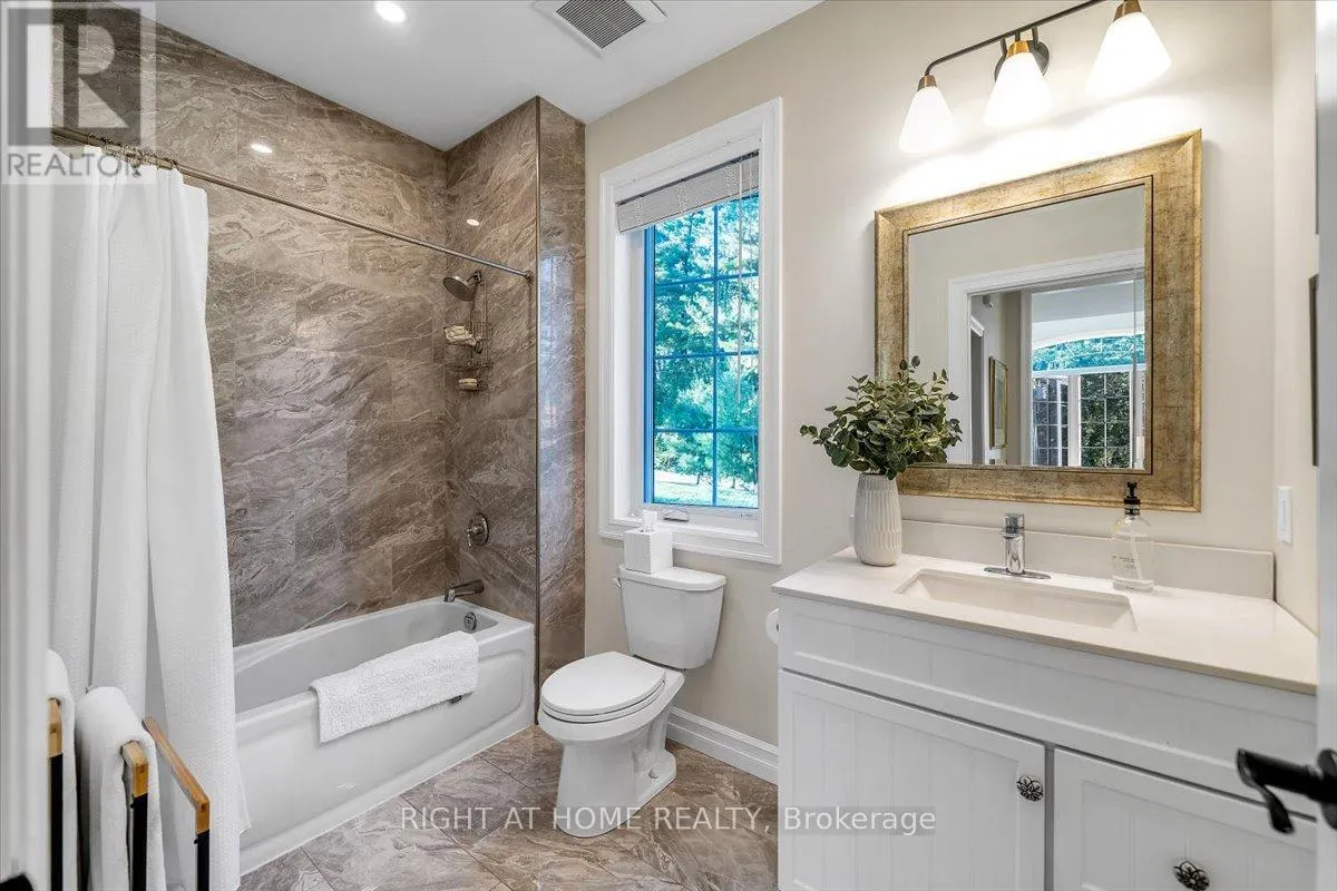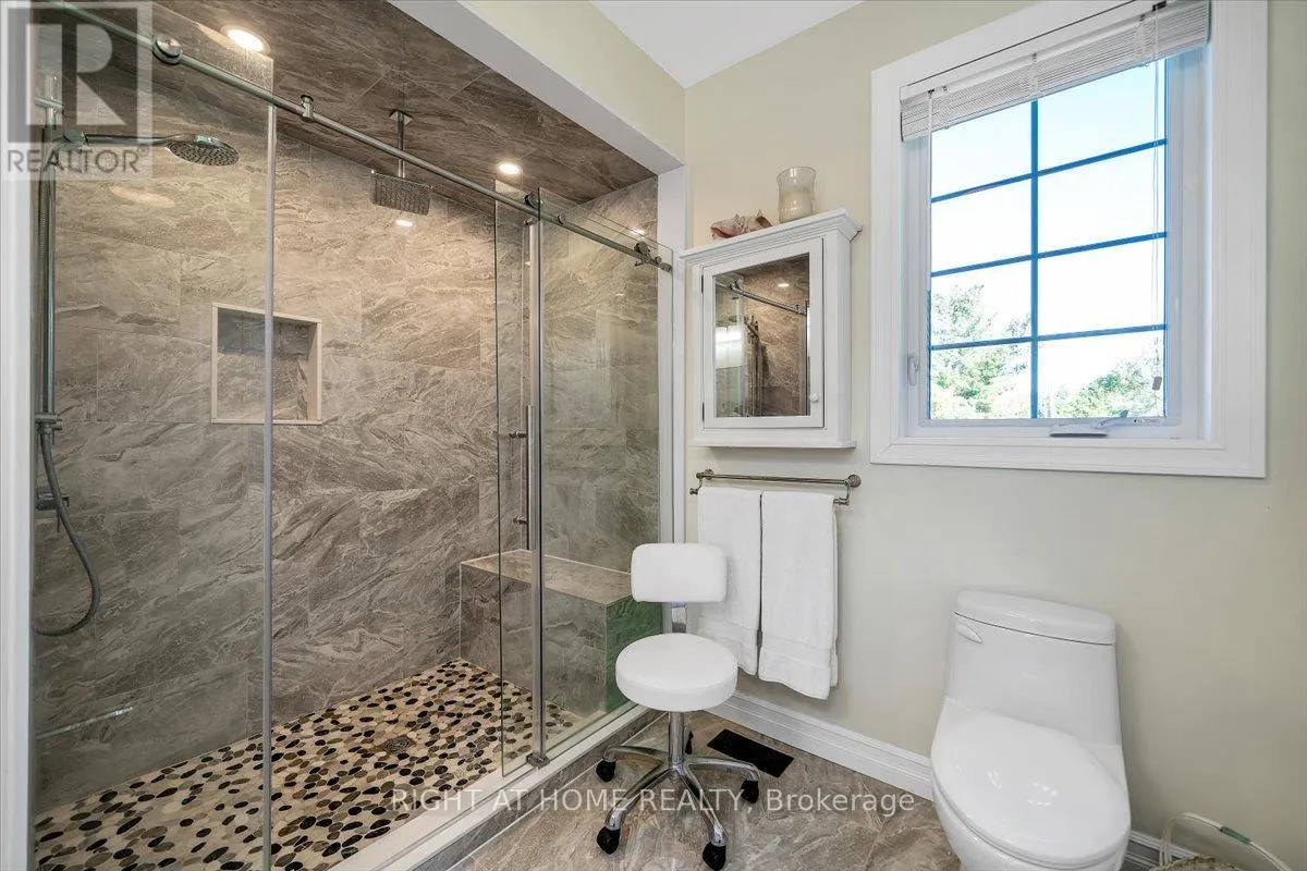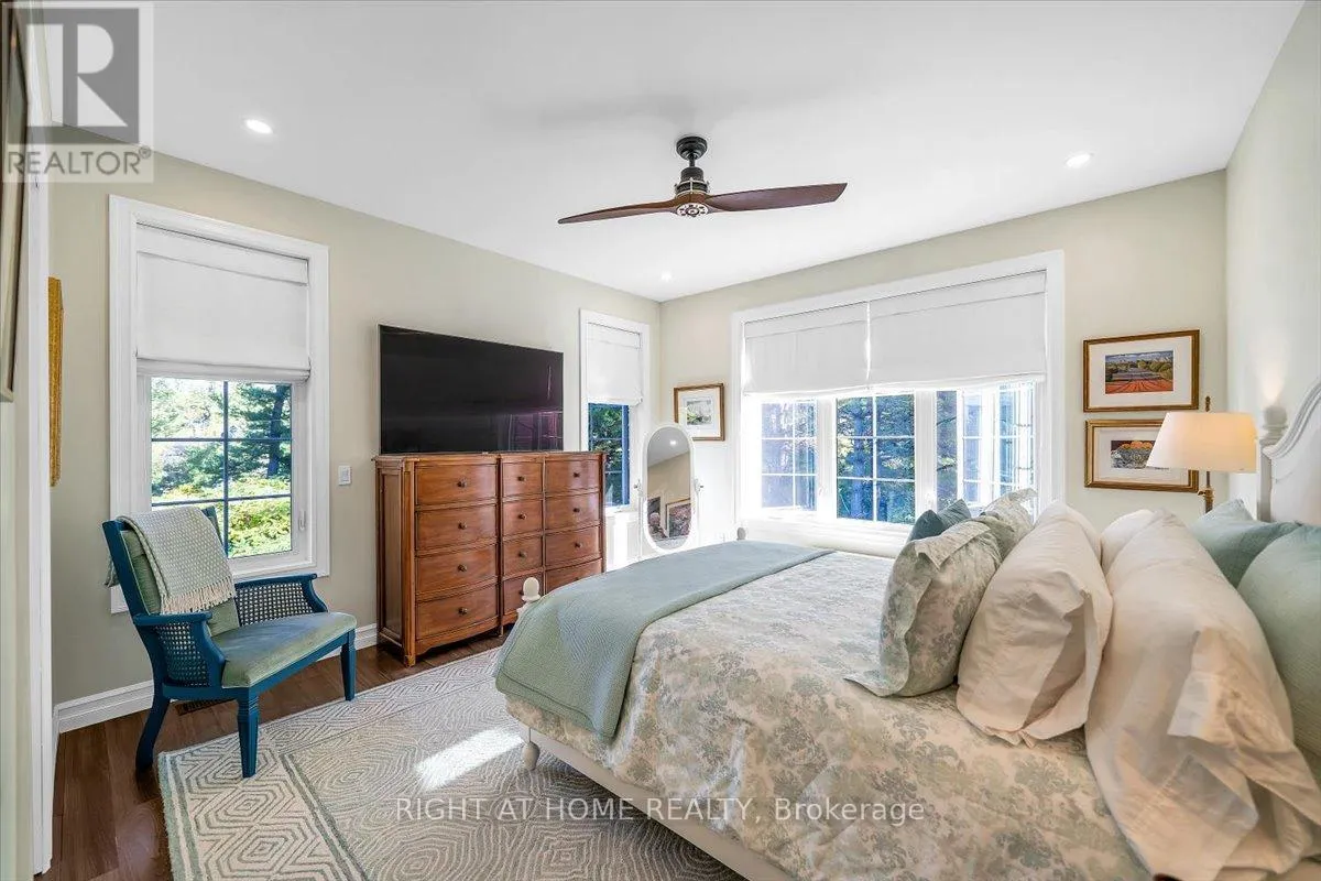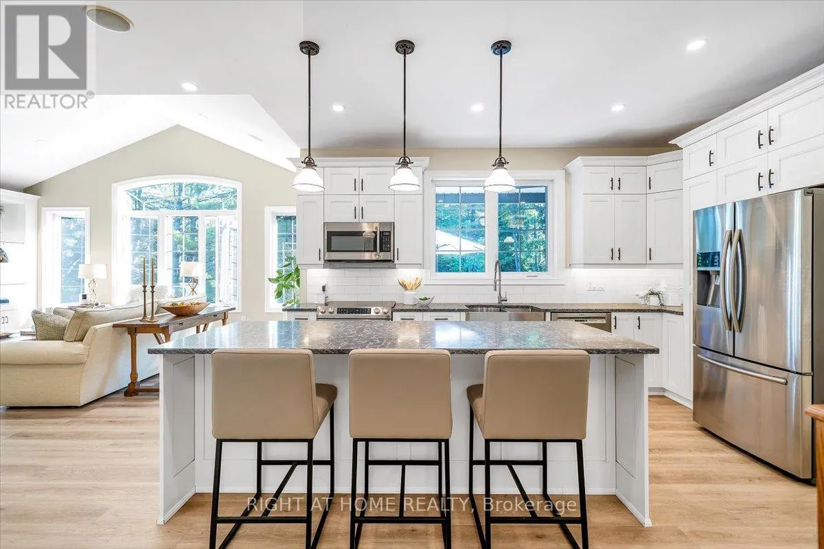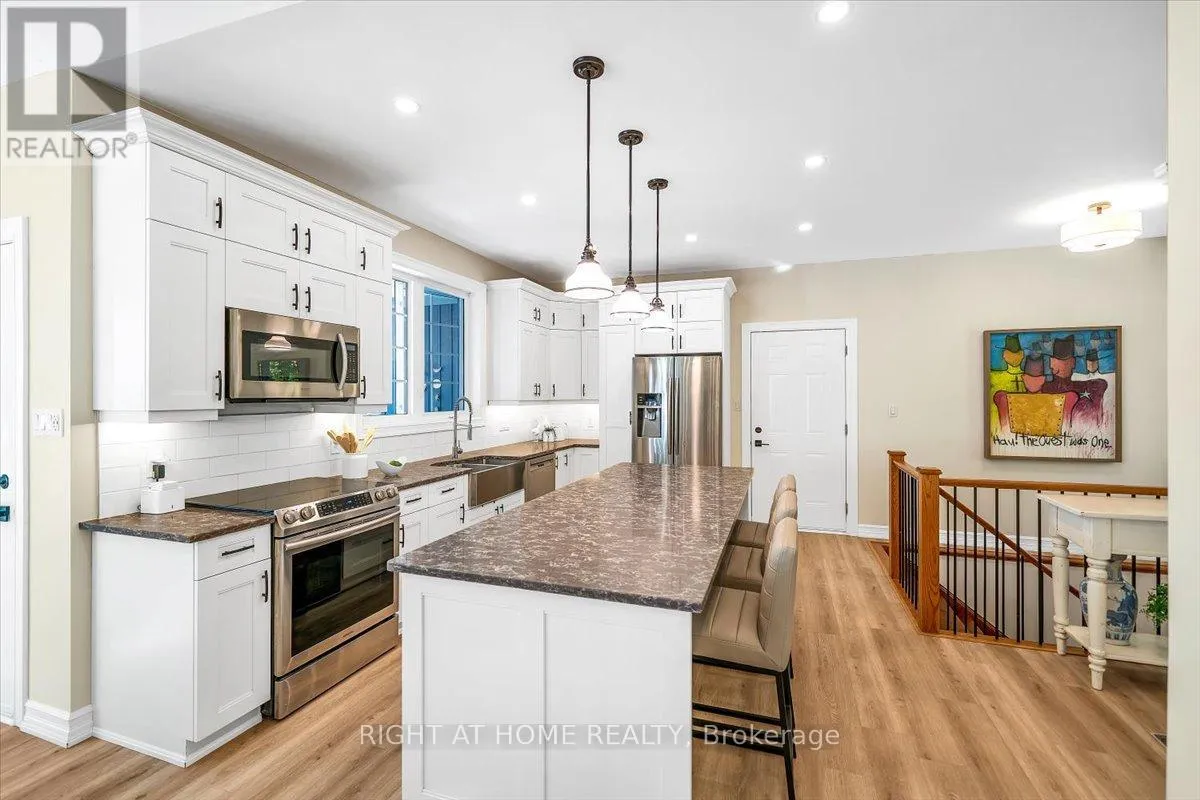 Cross Streets: Hwy 28 & 9th con. ** Directions: hwy 28 north to 9th line. Welcome to this stunning, updated detached bungalow offering nearly 3,500 sq ft of finished living space on a quiet country lot just under 1 acre. With 5 bedrooms (3 up, 2 down) and a bright, open-concept layout, this home is ideal for families, hobbyists, or multi-generational living. Step inside to a spacious foyer and an airy living room with cathedral ceilings, expansive windows, and a w/o to a raised backyard patio overlooking the sunken terrace below. The chefs kitchen is an entertainers dream, featuring stone countertops, a large island, stainless steel appliances, and an undermount farmhouse style sink below a picture window overlooking the backyard. Enjoy indoor-outdoor living with a covered front porch, two-level patio, and direct access to a heated double garage with high ceilings plus a rear garage door for convenient backyard access. The primary suite offers a peaceful retreat with large windows, a walk-in closet, and a 4-piece ensuite featuring a glass shower and heated floors. Two additional upstairs bedrooms offer generous space, large windows, and lighted closets. The fully finished lower level includes a spacious rec room with built-in shelving, 2 bedrooms with above grade windows, a 3-piece bathroom, a walk out to a stone patio and a wet bar set up perfectly for an in-law suite or extended family. The home features a fully installed backup generator for peace of mind, and a built-in sound system for effortless entertaining. Just a 3-minute drive to the lakeside village of Bewdley, you're never far from essentials- whether its a quick grocery run or a last-minute ingredient. Enjoy dining and access to Rice Lake for boating in summer and ice fishing in winter. Minutes to Ganaraska Forest's 11,000+ acres of trails and only 20 minutes to Hwy 407, Hwy 401, Peterborough, and Port Hope this home is perfectly situated for commuters, nature lovers, and anyone seeking peace and space without sacrificing convenience. Move in and enjoy- nothing left to do! (id:27476)