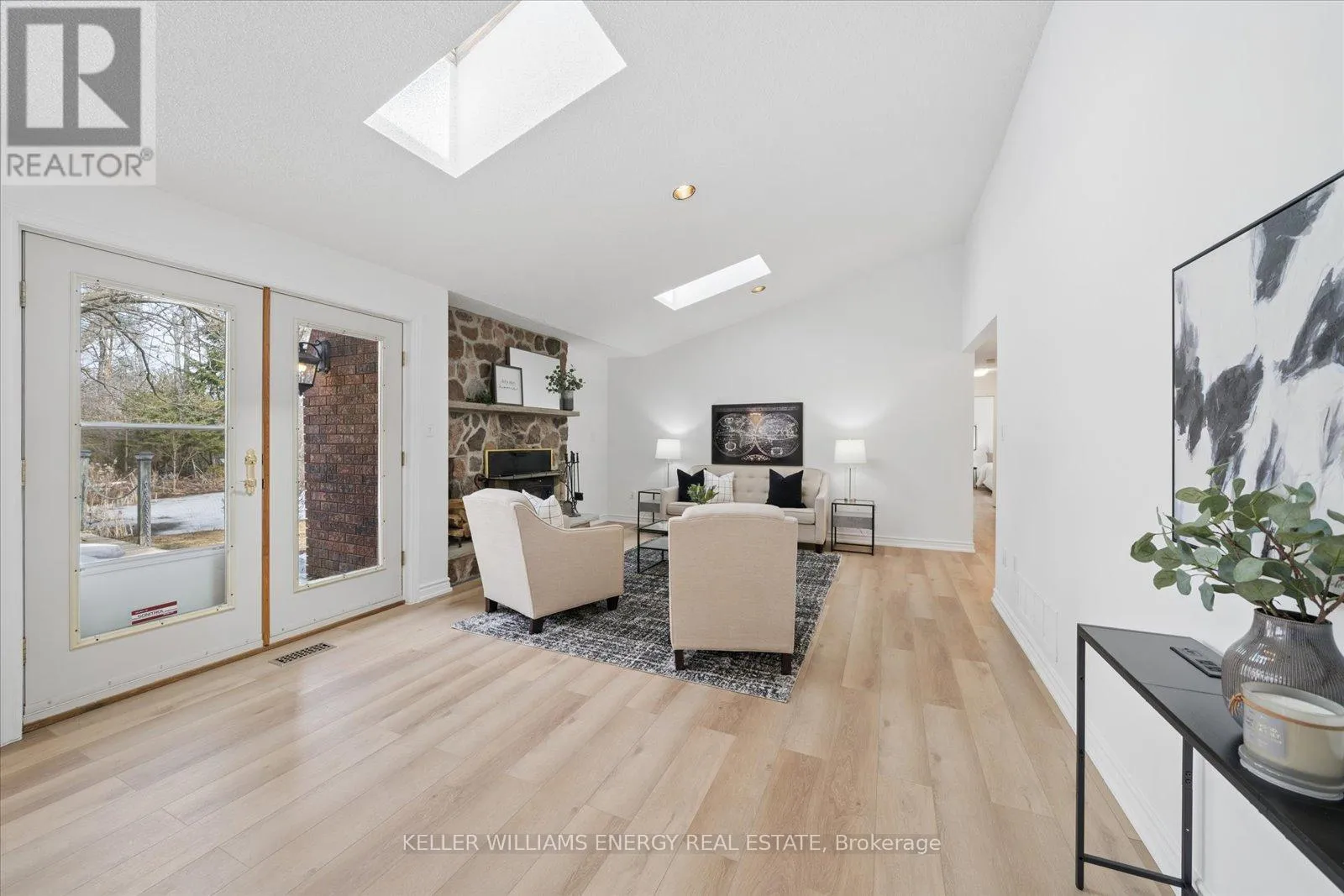 Cross Streets: County Rd 10 & Dale Rd. ** Directions: From town/401 head North on County Rd 10, turn left onto Fourth Line and the home is just before Kellogg Rd on your right hand side. Welcome to 4248 Fourth Line - where the quiet beauty of country living meets the ease of thoughtful, bungalow living, just minutes from the heart of Port Hope. Set on a picturesque 2.4 acre property, this fully bricked and stone ranch bungalow offers the kind of space, privacy, and natural surroundings that are increasingly rare. Surrounded by mature trees and completely private from neighbours, the setting invites a slower pace - morning walks by the pond, evenings under open skies, and room to truly breathe. With over 2,200 sq ft of main floor living, the home is designed for comfort and functionality. A welcoming layout unfolds with a spacious living and dining room at the front of the home, ideal for gatherings both large and small. At the heart of the home, the kitchen opens to a warm and inviting family room with vaulted ceilings, sky lights, and a wood-burning fireplace - a space that feels both expansive and cozy, perfect for everyday living. Large windows throughout the home capture natural light and frame views of the surrounding landscape, enhanced by a desirable southern exposure. The kitchen features a bright eat-in nook overlooking the backyard, creating a natural place to start and end your day. All three bedrooms are generously sized, including a primary suite complete with a walk-in closet, additional closet space, and a private ensuite. New flooring in the family room and bedrooms, along with fresh paint throughout, adds a refreshed feel while still leaving room to personalize the kitchen and bathrooms over time. Practical features further enhance the home's appeal, including a durable metal roof, a new furnace (2025), natural gas heating, and fibre optic internet - blending rural tranquility with modern day comfort and connectivity. For those seeking one floor living, true privacy, and a connection to the outdoors without sacrificing proximity to town, 4248 Fourth Line offers a rare and rewarding lifestyle opportunity. (id:27476)