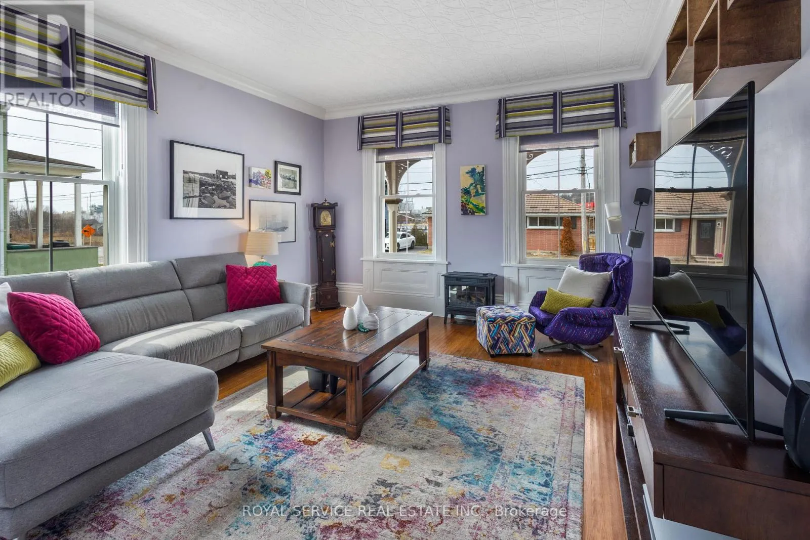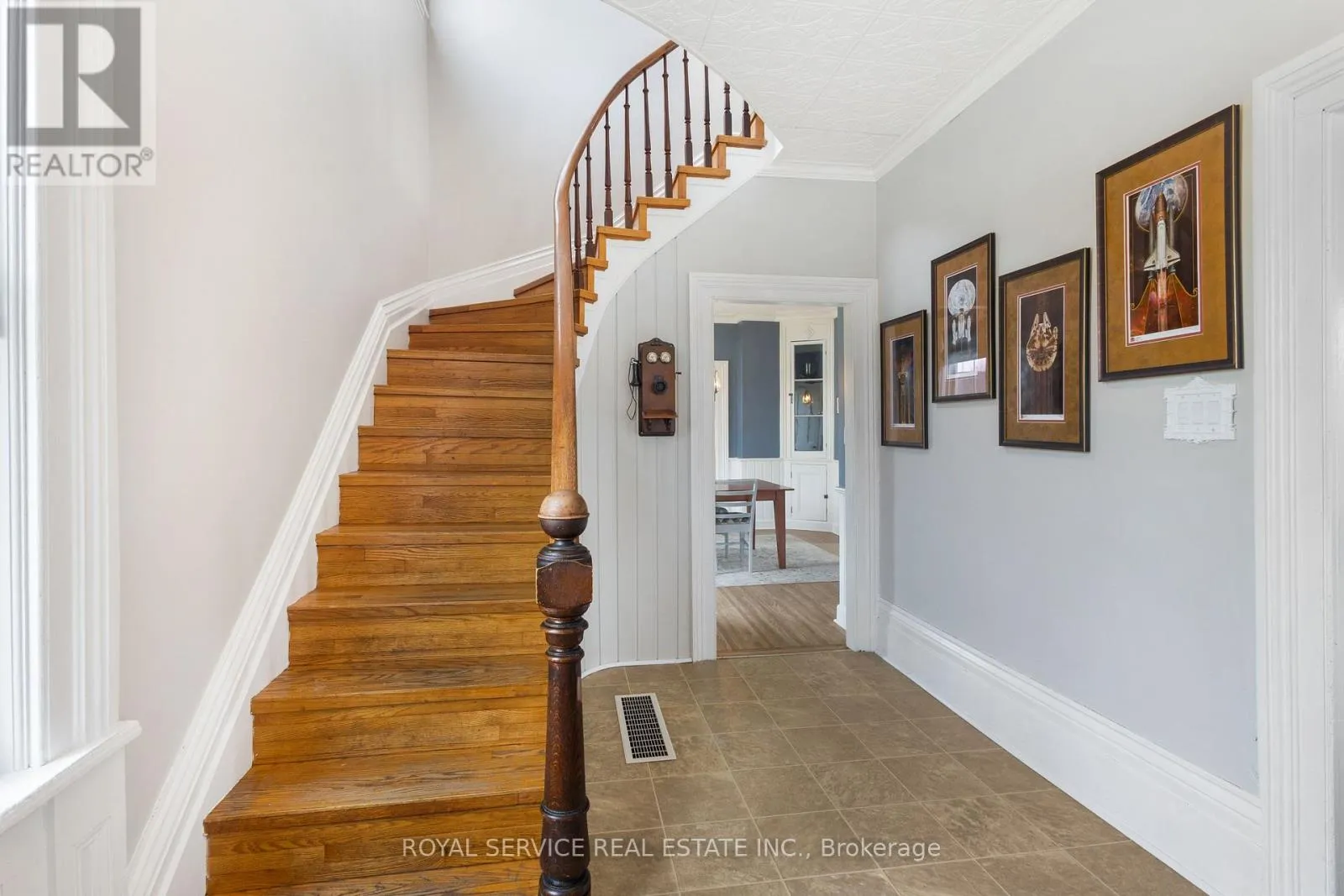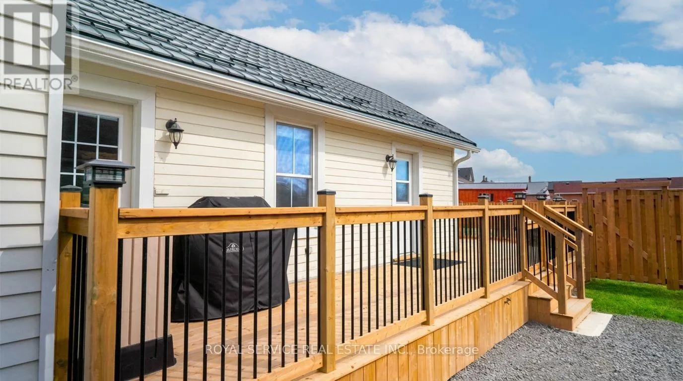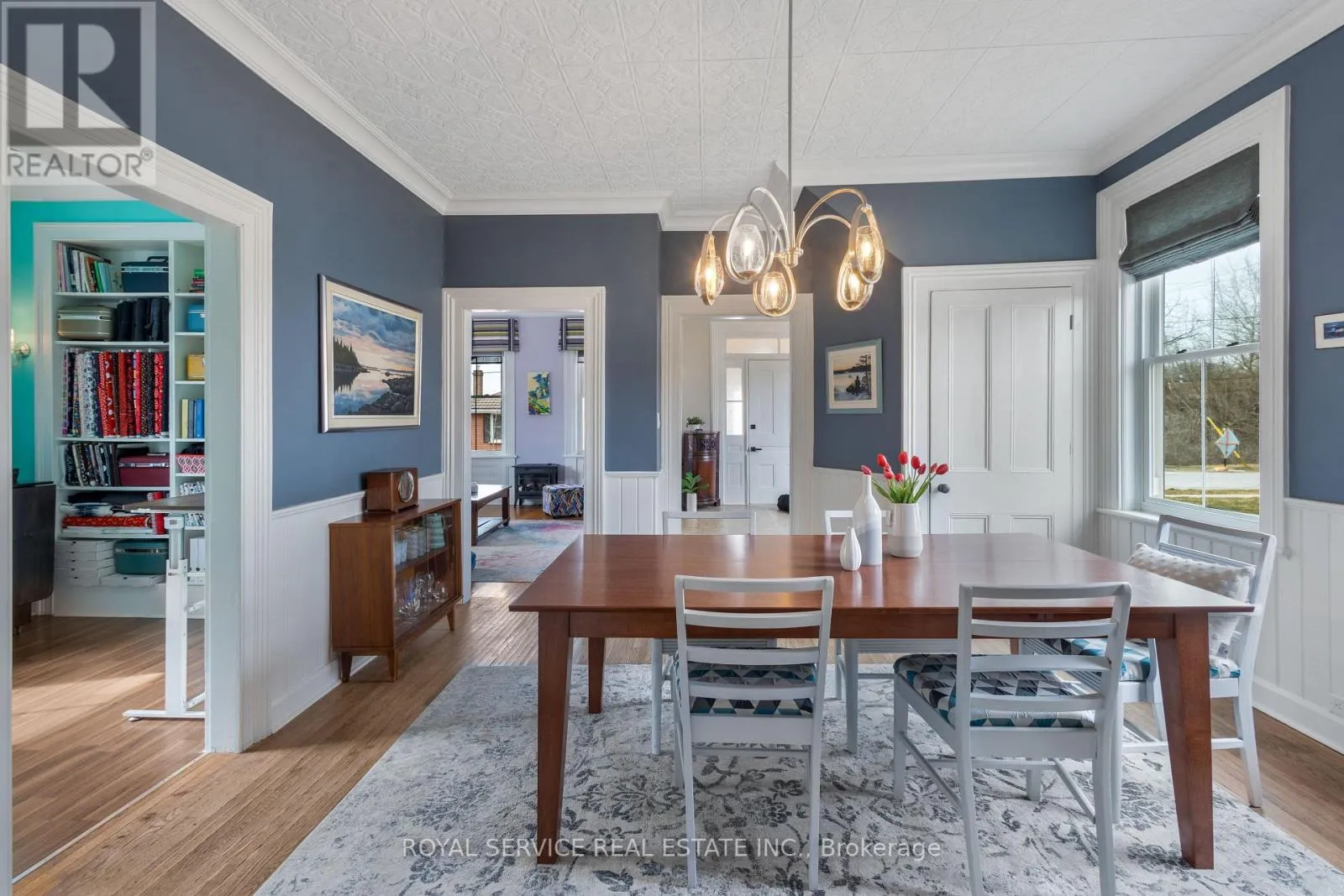 Cross Streets: Peter St. and King St. ** Directions: From 401 head south down Ontario St., keep left on Mill St. S., turn left onto Peter St. (Hwy 2) turn right onto King St. A Piece of Port Hope History - With All the Right Updates. Step into one of Port Hope's storied Captain's Houses and feel the difference that over a century of good bones makes. This two-storey century home sits on a level double lot, just a two-minute walk to the waterfront, 10 minute walk to downtown, and is close to so many amenities. At just under 2,000 SqFt of finished space, there's room to spread out. A sizable front foyer with 9ft ceilings and curved staircase opens into generously sized primary rooms filled with natural light from the large windows. You'll love the historic mouldings and trim throughout the home. The eat in kitchen features granite countertops, original tin ceiling, SS appliances (including a gas stove) and flows well for cooking and gathering. A rear entrance mudroom with main floor laundry and powder room adds everyday practicality, and a new front porch and enclosed portico make for a welcoming arrival. There are three bedrooms upstairs plus a flexible main-floor room that works well as a fourth bedroom, home office, or studio. The large primary bedroom includes a spacious walk-in closet. A full bath with heated tile floors & quartz counters and a powder room serve the household comfortably. The big-ticket items have all been looked after, including metal roof, eavestroughs, windows, mechanicals, and attic insulation, so you can settle in without a long to-do list. Custom window treatments including motorized blinds are all included. This home also offers more storage than you often find in homes of this era. A brand new rear wrap-around deck and fully fenced yard open onto a large, level backyard - a blank canvas ready for your flower beds, gardens or whatever else you can imagine for your space. A home with real history, ready for its next chapter. (id:27476)