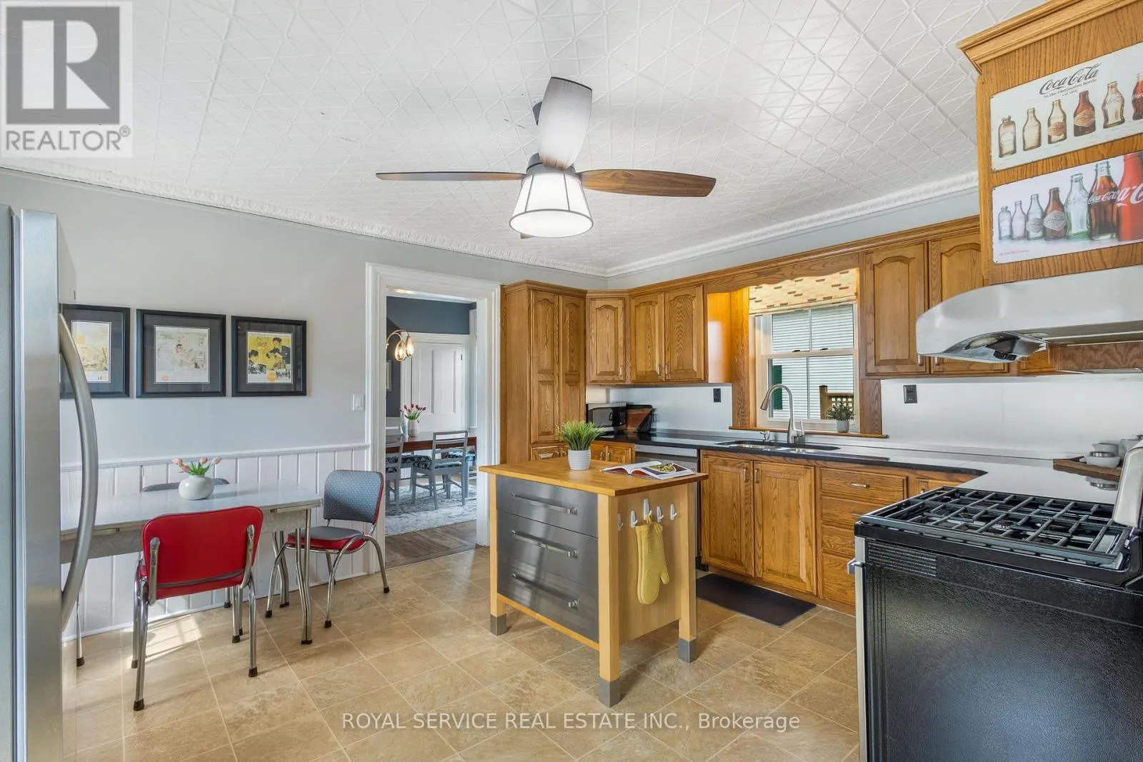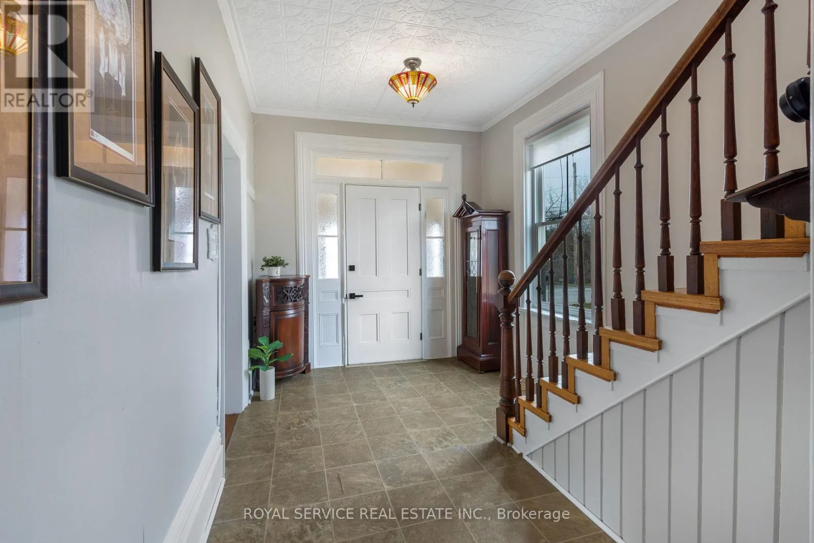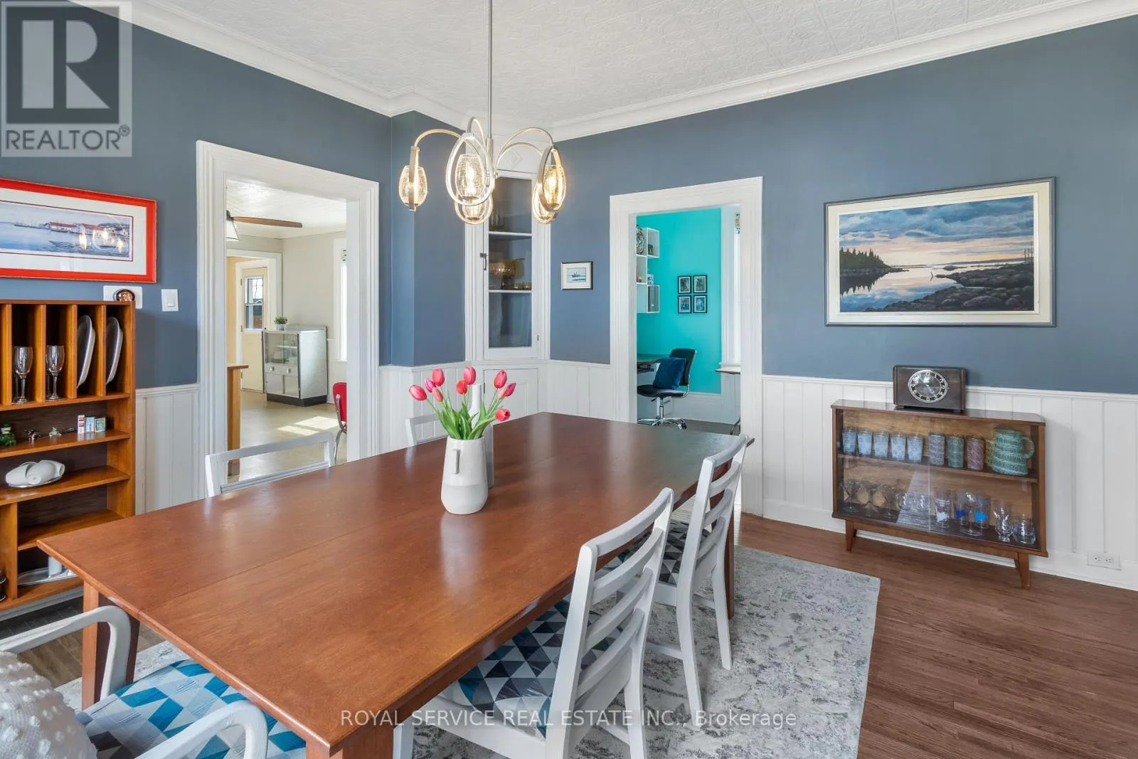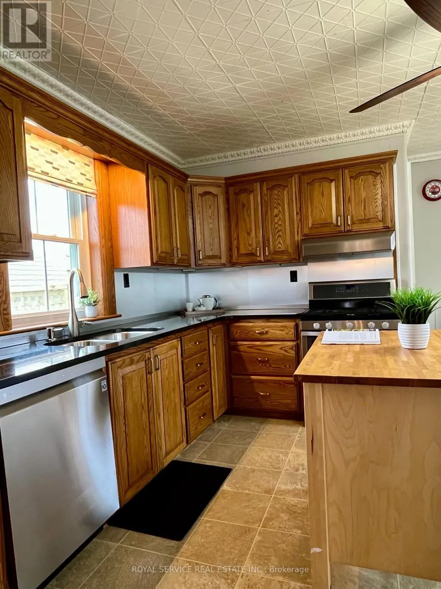 Cross Streets: Peter St. and King St. ** Directions: From 401 head south down Ontario St., keep left on Mill St. S., turn left onto Peter St. (Hwy 2) turn right onto King St. A Piece of Port Hope History - With All the Right Updates. Step into one of Port Hope's storied Captain's Houses and feel the difference that over a century of good bones makes. This two-storey century home sits on a level double lot, just a two-minute walk to the waterfront, 10 minute walk to downtown, and is close to so many amenities. At just under 2,000 SqFt of finished space, there's room to spread out. A sizable front foyer with 9ft ceilings and curved staircase opens into generously sized primary rooms filled with natural light from the large windows. You'll love the historic mouldings and trim throughout the home. The eat in kitchen features granite countertops, original tin ceiling, SS appliances (including a gas stove) and flows well for cooking and gathering. A rear entrance mudroom with main floor laundry and powder room adds everyday practicality, and a new front porch and enclosed portico make for a welcoming arrival. There are three bedrooms upstairs plus a flexible main-floor room that works well as a fourth bedroom, home office, or studio. The large primary bedroom includes a spacious walk-in closet. A full bath with heated tile floors & quartz counters and a powder room serve the household comfortably. The big-ticket items have all been looked after, including metal roof, eavestroughs, windows, mechanicals, and attic insulation, so you can settle in without a long to-do list. Custom window treatments including motorized blinds are all included. This home also offers more storage than you often find in homes of this era. A brand new rear wrap-around deck and fully fenced yard open onto a large, level backyard - a blank canvas ready for your flower beds, gardens or whatever else you can imagine for your space. A home with real history, ready for its next chapter. (id:27476)