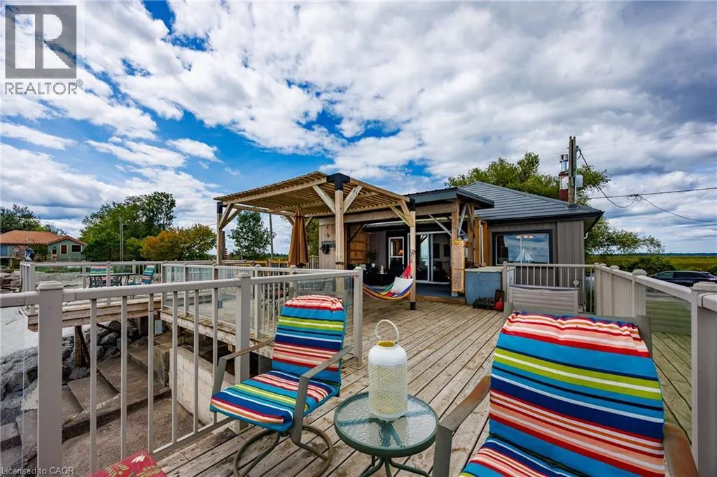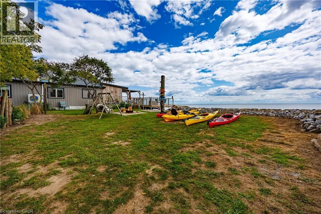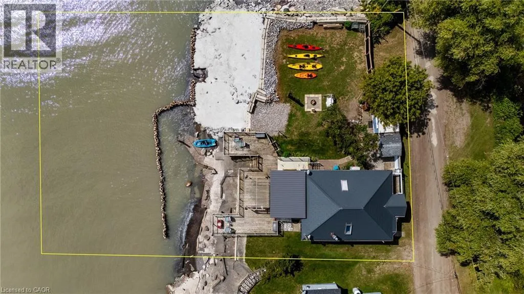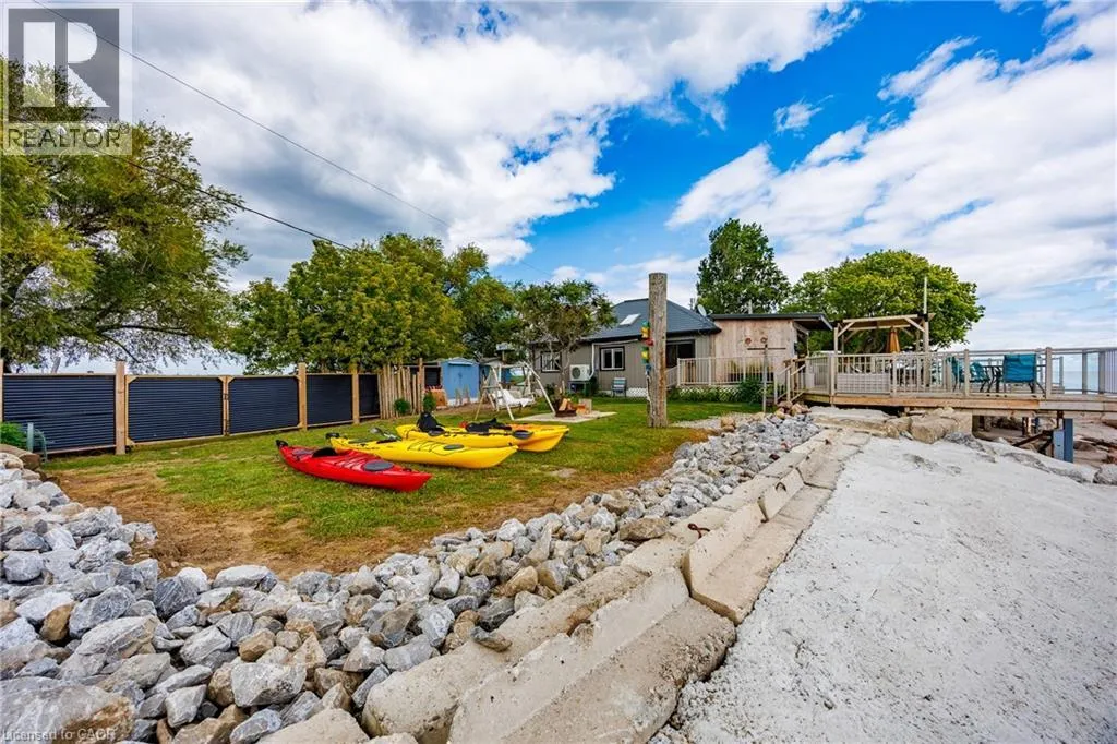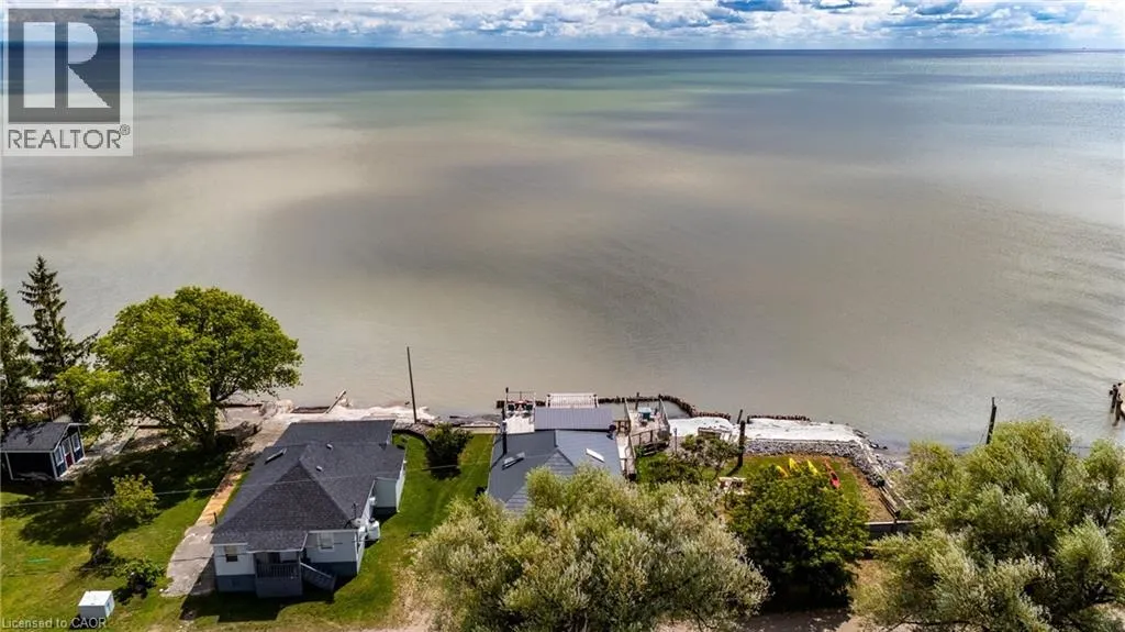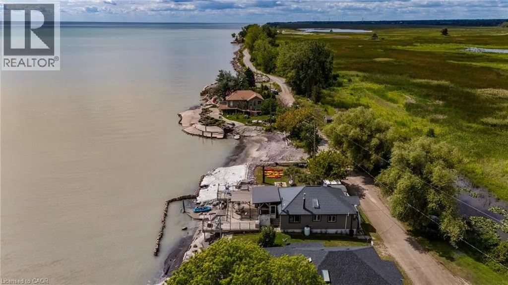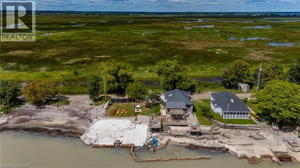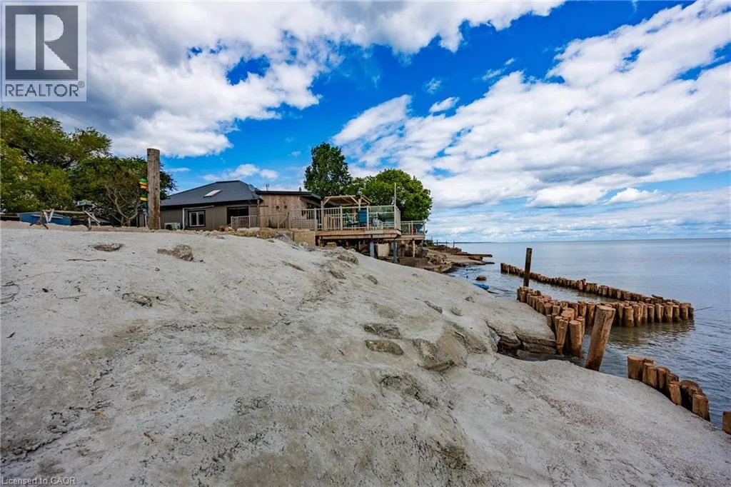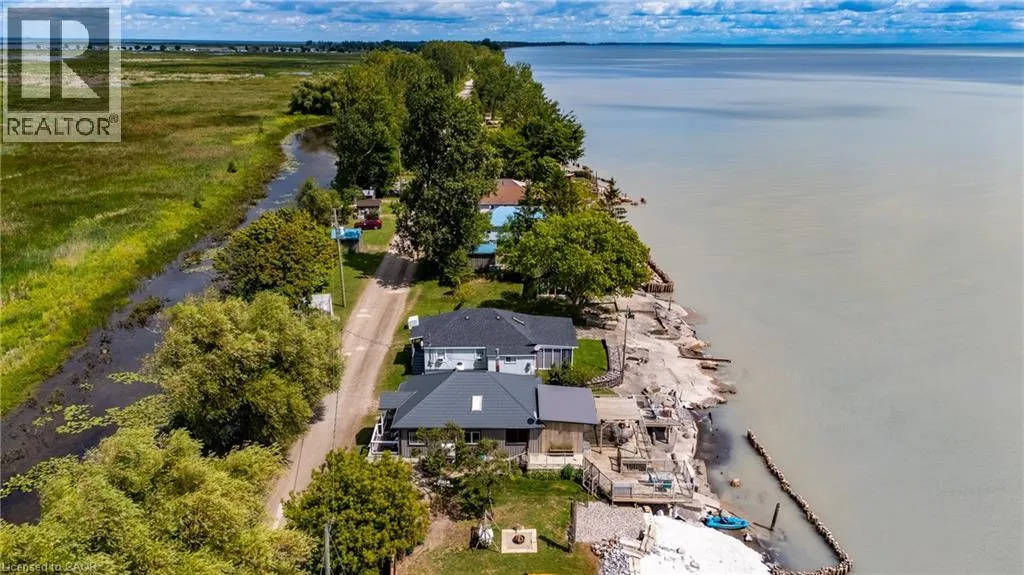 Hwy 59 to Long Point, turn right on to Hastings Drive. Continue until you see the property on the Left. Fantastic lake views! Cute cottage on Hasting Drive - a retreat away from the crowds. Extensive outdoor living space with a deck perched on the edge of Lake Erie, and extending over 40 feet along the lakeshore. Extensive erosion protection with concrete blocks, boulders, and poured concrete along the shoreline with steps and launching space provided for kayaks or small boats. Open concept dining /living area with vaulted pine ceiling integrates nicely with a shaded outdoor sitting area. Updated kitchen with plenty of storage space as well as skylight to provide extra natural light. Stainless steel kitchen appliances included along with washer and dryer (all new in 2023). Three bedrooms (one with a vaulted ceiling) with one that has been used as an office. Bathroom totally redone in 2023 with laundry space added. Heating and cooling provided by a ductless mini split heat pump. For those colder nights a free standing propane fireplace provides extra warmth. Extra lot provides space for a firepit, storage sheds and outdoor storage of water toys or other items. Adjacent to Big Creek National Wildlife Area - lots of opportunity for wildlife viewing with huge flocks of swans, cranes, ducks and more during migration and lots of turtles during the summer. The Sellers have directed that 221 Hastings Drive and 223 Hastings Drive must be purchased together. Also listed on LSTAR (id:27476)
