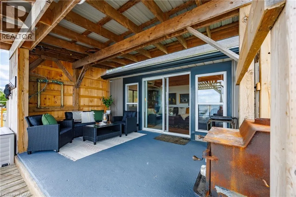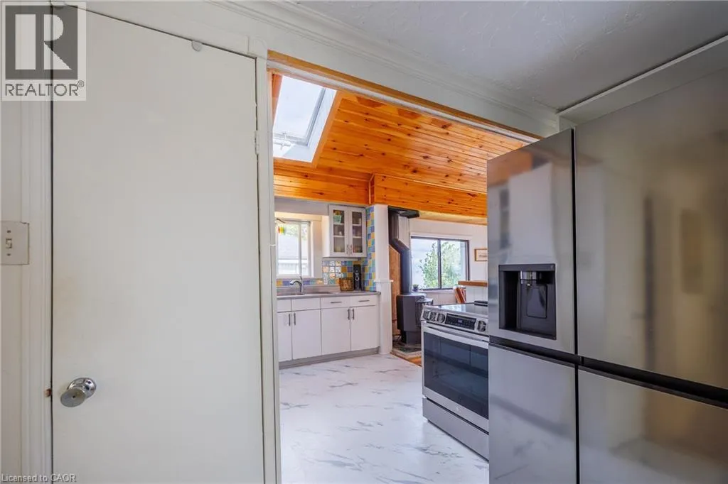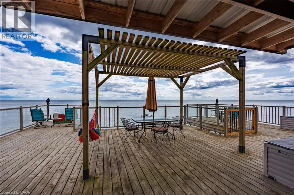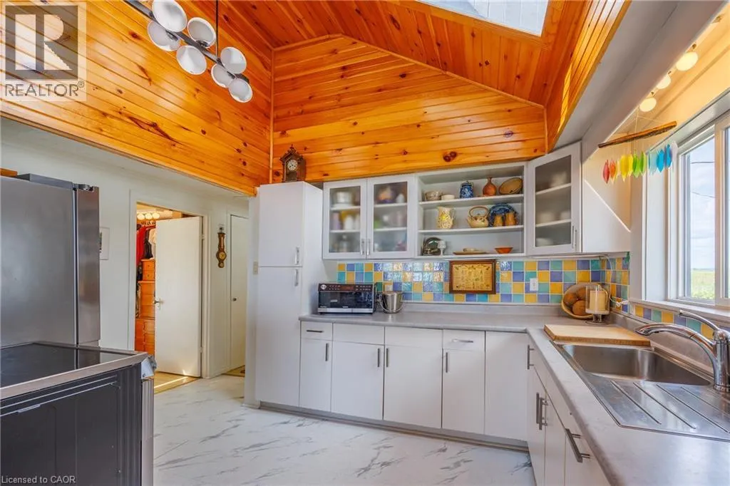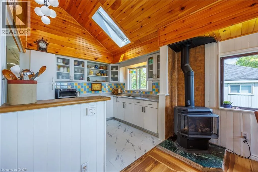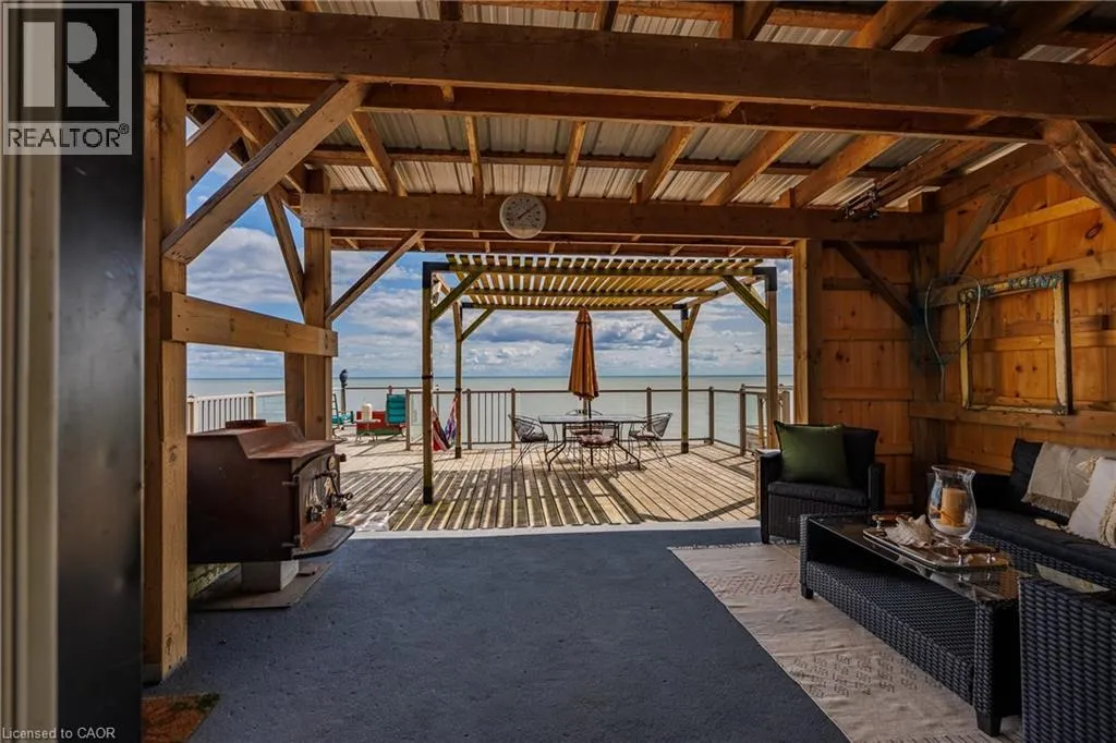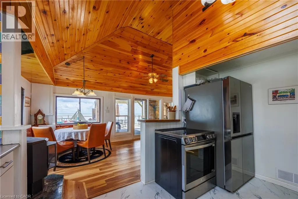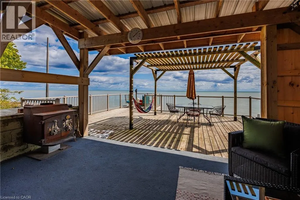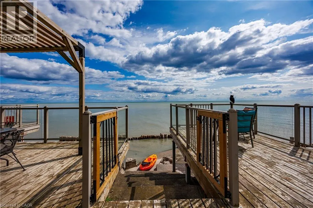 Hwy 59 to Long Point, turn right on to Hastings Drive. Continue until you see the property on the Left. Fantastic lake views! Cute cottage on Hasting Drive - a retreat away from the crowds. Extensive outdoor living space with a deck perched on the edge of Lake Erie, and extending over 40 feet along the lakeshore. Extensive erosion protection with concrete blocks, boulders, and poured concrete along the shoreline with steps and launching space provided for kayaks or small boats. Open concept dining /living area with vaulted pine ceiling integrates nicely with a shaded outdoor sitting area. Updated kitchen with plenty of storage space as well as skylight to provide extra natural light. Stainless steel kitchen appliances included along with washer and dryer (all new in 2023). Three bedrooms (one with a vaulted ceiling) with one that has been used as an office. Bathroom totally redone in 2023 with laundry space added. Heating and cooling provided by a ductless mini split heat pump. For those colder nights a free standing propane fireplace provides extra warmth. Extra lot provides space for a firepit, storage sheds and outdoor storage of water toys or other items. Adjacent to Big Creek National Wildlife Area - lots of opportunity for wildlife viewing with huge flocks of swans, cranes, ducks and more during migration and lots of turtles during the summer. The Sellers have directed that 221 Hastings Drive and 223 Hastings Drive must be purchased together. Also listed on LSTAR (id:27476)