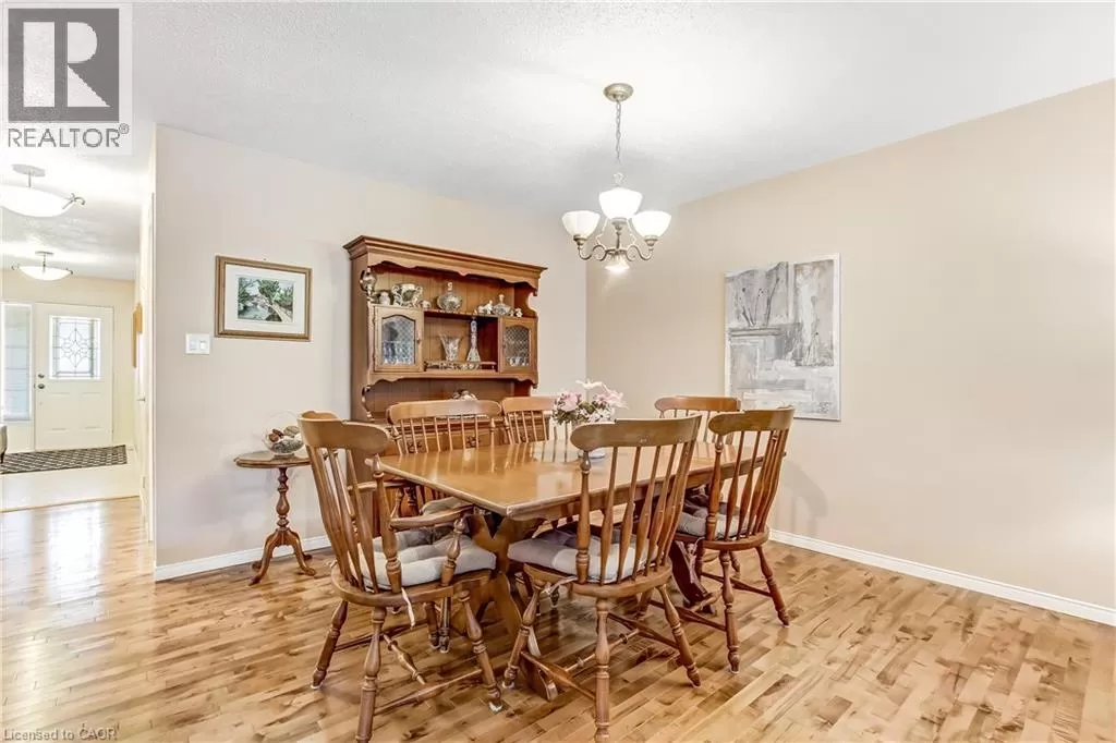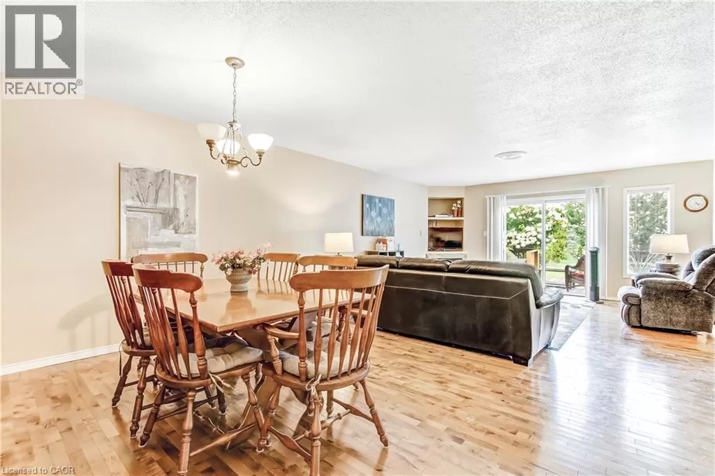 Bay Street to Long Point Blvd, left onto Walsingham Blvd This popular cottonwood model has lots to offer for retirement living in the Villages of Long Point Bay. Spacious entry way with front primary bedroom with 3 piece en suite along with a walk-in closet. Main floor Laundry room. The 4 piece bathroom has a skylight to give this room natural light, with the linen closet just in the hall bedside this bathroom. The second bedroom makes a great second bedroom or a computer room. The open concept dining living room and eat-in kitchen give these rooms a nice open feeling, with hardwood flooring in the dining and living rooms. Lots of cabinets and counter space in the kitchen help to get your cooking and cleaning done a whole lot easier. 3 year old furnace and central air, Step out to your large patio deck from your eat-in kitchen area. This home is just a short walk to the villages clubhouse complete with indoor heated pool, exercise area, billiards, banquet hall, library and so much more. With local pharmacy, grocery store, and restaurants, this area has everything you want all in one lakeside community. (id:27476)