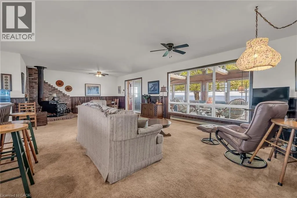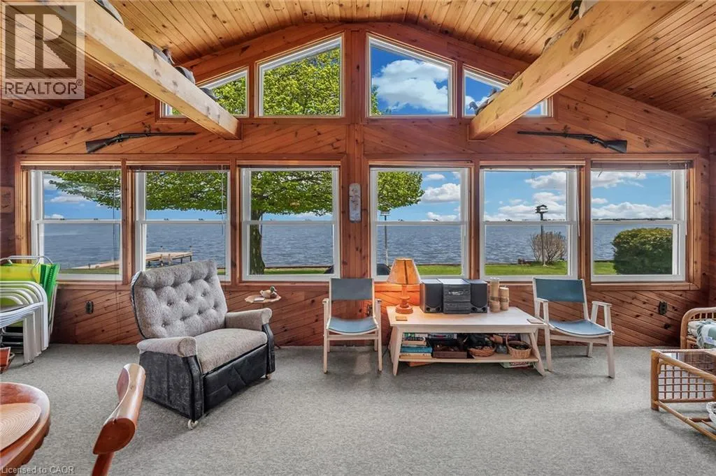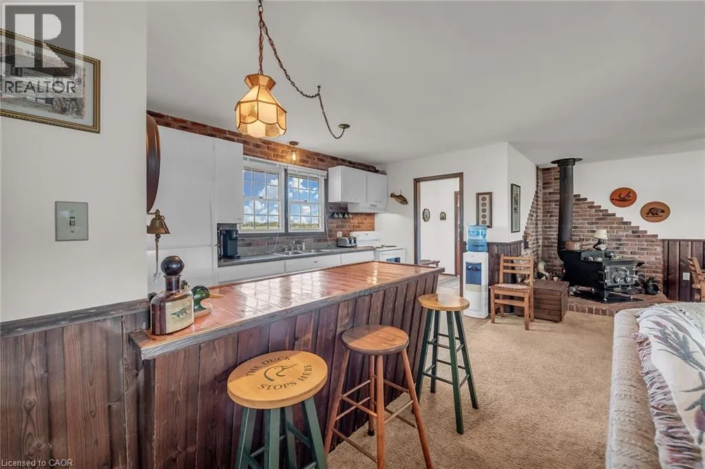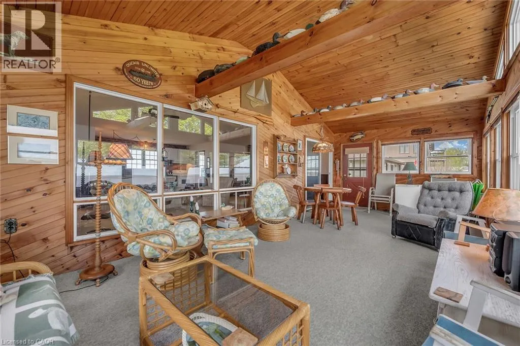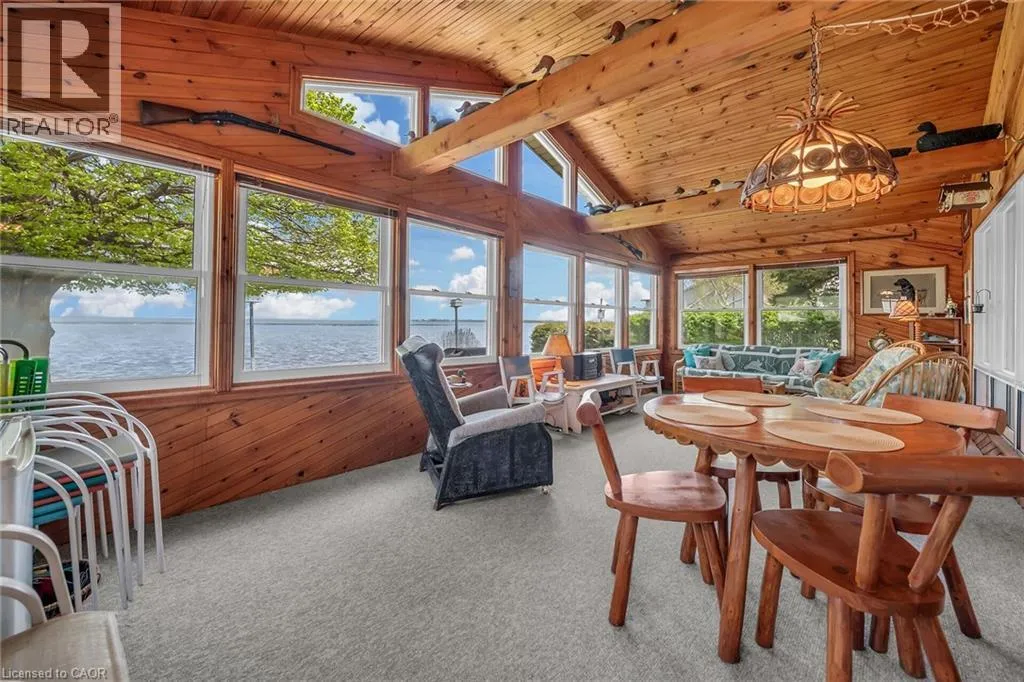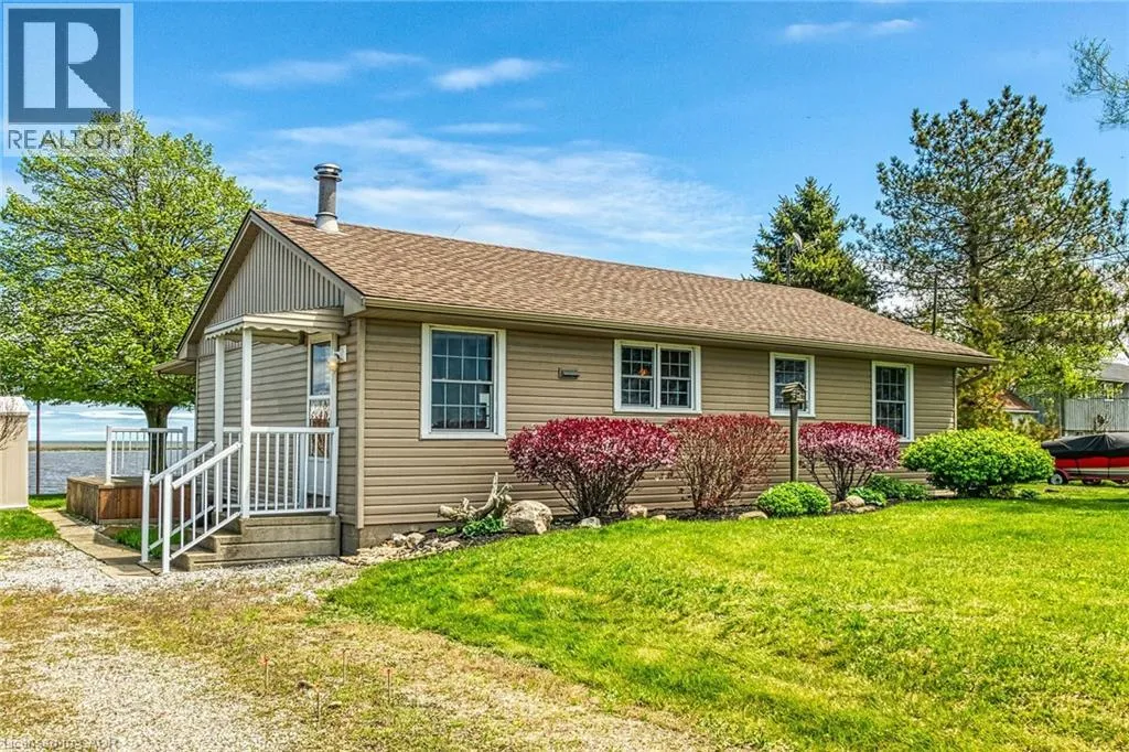 Highway 59, heading into Long Point Waterfront Escape on Long Points Inner Bay! Pride in ownership is evident in this charming 995 sqft winterized cottage. Inside, enjoy the rustic charm of the open concept main floor boasting a large kitchen and spacious living/dining room where you can savor evenings by the cozy woodstove. The large kitchen features a brick backsplash. Grab a stool at the peninsula to chat with the cook or a quick bite. Your turn to do dishes, you will delight in the views over Big Creek while you wash up. This space conveniently connects to the bright, airy sunroom with vaulted ceilings where you can take in the panoramic views of the bay. The expansive wrap-around deck is the perfect space for entertaining or unwinding from a long week. Enjoy boating, kayaking, canoeing right from your own backyard, catch a morning sunrise over the bay or a sunset over the Big Creek National Wildlife Area. Perfect for nature lovers, this property offers easy access to many exciting adventures; Long Point Birding Trail, boating, beaches, wineries & breweries. Explore the sandy beaches just a short drive away. Located minutes from Port Rowans shops and dining, this peaceful retreat blends natural beauty with everyday convenience. (id:27476)