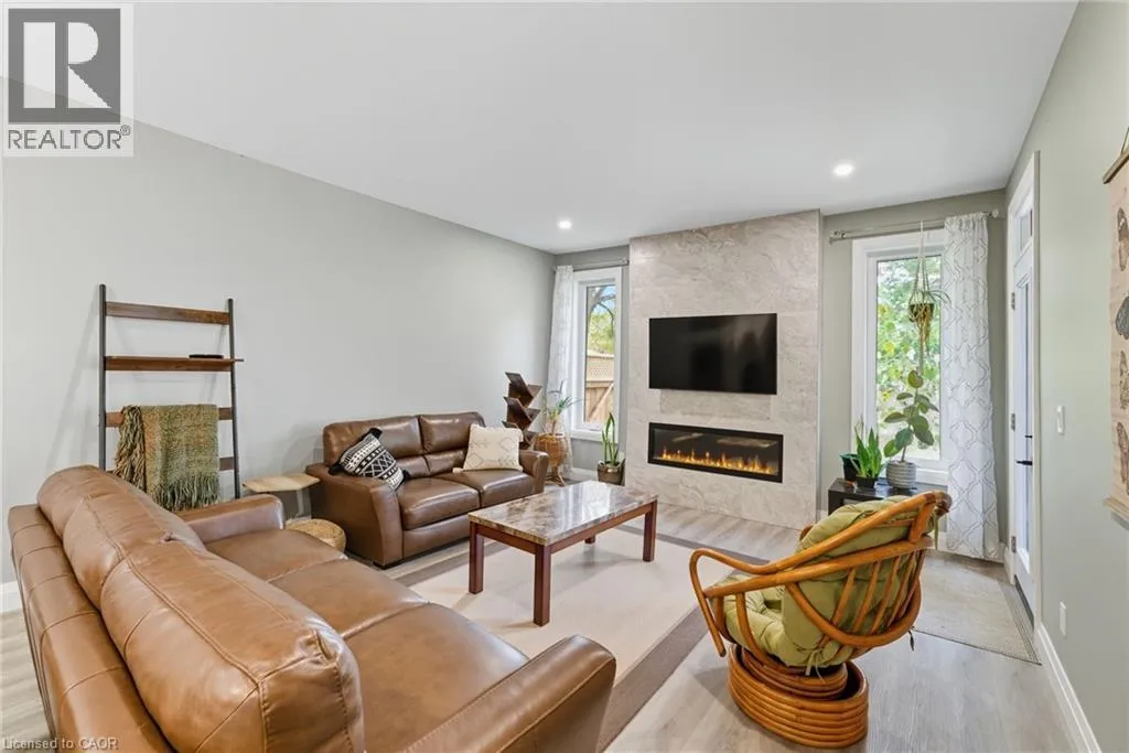 Norfolk County Hwy 24 to Forestry Farm Road to Lakeshore Road, follow around Lakeshore Road turns into Bay Street. Property on right just up from the Lake. Welcome to 1053 Bay Street â A Modern Lakeside Retreat in Port Rowan, nestled in the charming lakeside community of Port Rowan, this beautifully built semi-detached bungalow offers a seamless blend of comfort and style. Boasting over 2300 sq ft of living space, this home features 2+1 bedrooms and 3 full bathrooms, making it perfect for families, downsizers, or those seeking in-law suite potential. The exterior showcases modern stone and vinyl siding, an oversized driveway with parking for four vehicles, and a cozy covered front porchâideal for enjoying your morning coffee. Step inside to a bright, open-concept layout highlighted by 9-foot ceilings, neutral tones, and a feature fireplace that anchors the main living area. The sleek kitchen includes stainless steel appliances, crown moulding, and plenty of workspace for home chefs. The primary bedroom is a true retreat with a large walk-in closet, an extra storage closet, and a stylish 4-piece ensuite complete with a double vanity. At the front of the home, you'll find a versatile second bedroom or home office, another modern 4-piece bath, convenient main floor laundry, and interior garage access. Downstairs, the fully finished basement continues the home's elegant palette and adds fantastic functional space. Enjoy a large rec room with egress windows and a rough-in for a wet bar or kitchenette, a spacious third bedroom, and a full bathâideal for guests or potential in-law accommodations. Outside, the fully fenced backyard includes a beautiful, covered deckâperfect for relaxing and entertaining through the warmer months. Located just minutes from Lake Erie, Long Point, and all the natural beauty the area has to offer, this home is a must-see! Donât miss your chance to own a piece of Port Rowan paradise. (id:27476)