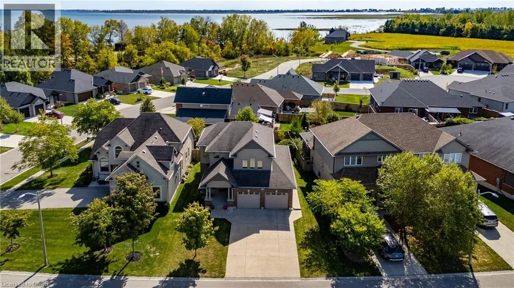 Highway 59 south, left onto Front Road, right onto Hunter Drive, right onto Wood Duck Way. Enjoy lakeside living in Ducks Landing! Beautiful 2 story brick home with 3+1 bedrooms, 4 bathrooms and double car garage. Bright foyer and open concept living / dining / kitchen provide a wonderful space for entertaining family and friends. Large deck off the kitchen / dining area with gas barbecue hookup. Nicely finished kitchen with cream cupboards, large island / breakfast bar, central vac sweep and stainless steel appliances included. Main floor laundry / garage entry with extra storage. Upstairs primary bedroom with 3 pc ensuite and walk in closet. Extra large windows in the basement family room and bedroom. Gas fireplaces in living room and basement family room. Short walk to Port Rowan Harbour and shops; 10 minute drive to Long Point Bay. Lots of opportunity for active living in the local area including golfing, pickleball, kayaking, wildlife viewing, wineries, microbreweries and more. (id:27476)