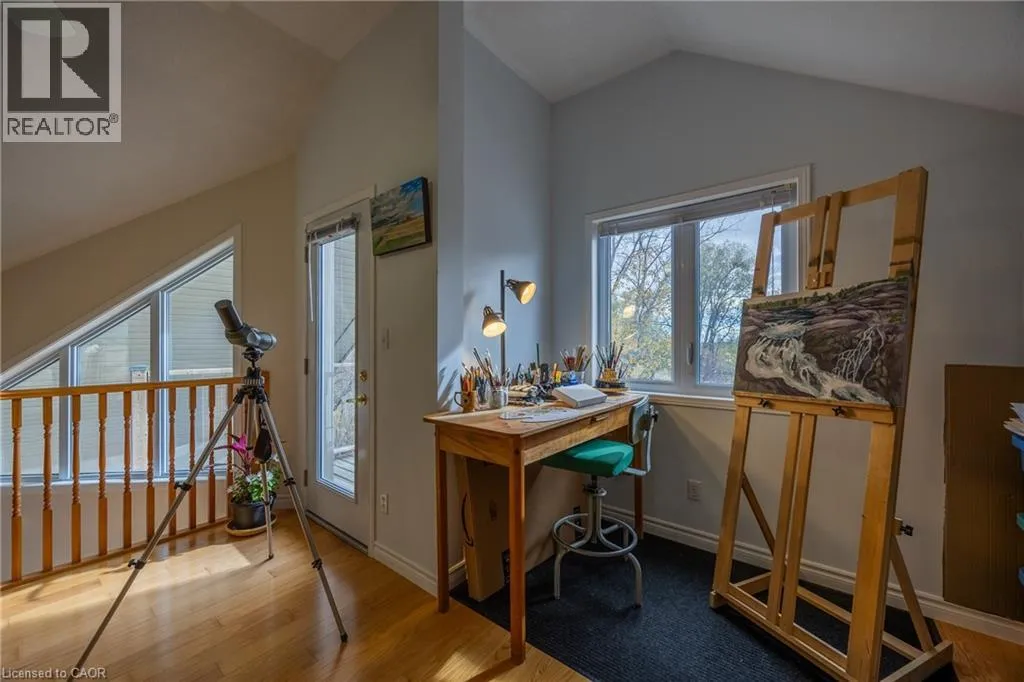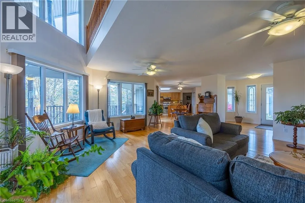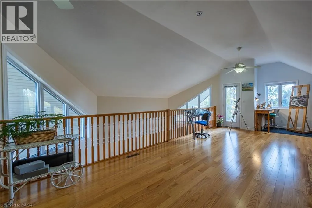 Continue down HW 59 towards Long Point, property is on left #1028 Charming country bungaloft, located between the friendly harbour town of Port Rowan and Long Point's sandy beaches. The bright open-concept main floor has solid oak flooring throughout the spacious living room, dining area and bedrooms. Numerous windows frame stunning sunrises, sunsets, and seasonal lake views. The large covered deck provides convenient outdoor living space. The well-designed kitchen makes meal preparation a breeze, either for quiet dinners or entertaining a crowd. The main floor primary bedroom has double closets and ensuite bath. The second main floor bedroom (currently an office) is beside a second bathroom. Laundry facilities are tucked away close to the kitchen. The airy loft, with its own balcony, is an adaptable space for wellness/creativity/business. Downstairs, part of the basement features a finished bedroom, bathroom, and hallway with access to the garage. The rest of the basement awaits your finishing touches, and includes an inviting hexagonal room with a cheerful Vermont Castings gas fireplace, adjoining workshop, furnace room, and cold cellar. The large attached double garage has lots of storage space. Outside is a tranquil green oasis with conifers, fruit trees, perennials and raised garden beds. A Generac generator provides peace of mind during power outages. Port Rowan offers many active living amenities: walking trails, water sports, tennis, and golfing. Services include a grocery store, primary school, pharmacy, restaurants, medical offices, and boutique shopping. Nearby are Long Point and Turkey Point Provincial Parks, marinas, breweries, wineries, world-class birding, and mountain biking trails. (id:27476)