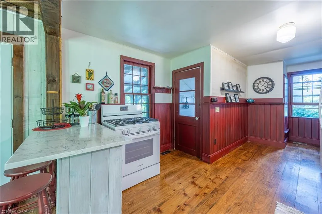 KING ST N to YOUNG'S CREEK ROAD in Port Ryerse. The property is on the North side of YOUNG'S CREEK ROAD. Please park in the double wide driveway. Welcome to 17 Young's Creek Road! This beautiful 19th-century character home, in the quaint village of Port Ryerse is situated on a spacious double-sized lot, just steps to Port Ryerse Harbour & beach on the shores of Lake Erie. Built in 1820, this 3 bedroom, 1 bathroom Two-Storey home, blends timeless appeal with thoughtful updates. Highlights to note include gorgeous wood floors and mouldings, a sun-filled covered porch, a gas fireplace/stove in the living room, a traditional dining room and quartz countertops in the kitchen. Set on 0.32 of an acre, this property offers a peaceful and serene setting with no direct street-facing neighbours and a private, tree-filled backdrop. This rare find provides historic charm and a tranquil setting, only an 8 minute walk to the water. Recent upgrades include new UV Water Treatment System & Water Softener (2025), Pine floors sanded and refinished (2024), installation of wood wall-panelling and new flooring in primary bedroom(2024) & Quartz countertops installed in kitchen (2021). Click on the links to view the video and virtual tour, then call to book your private showing today! (id:27476)