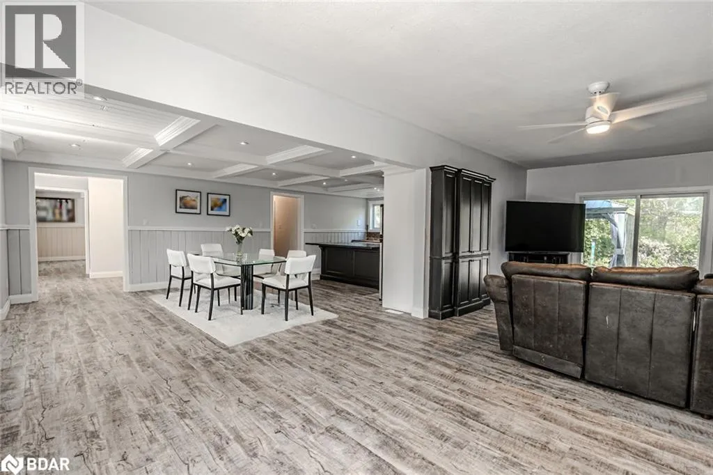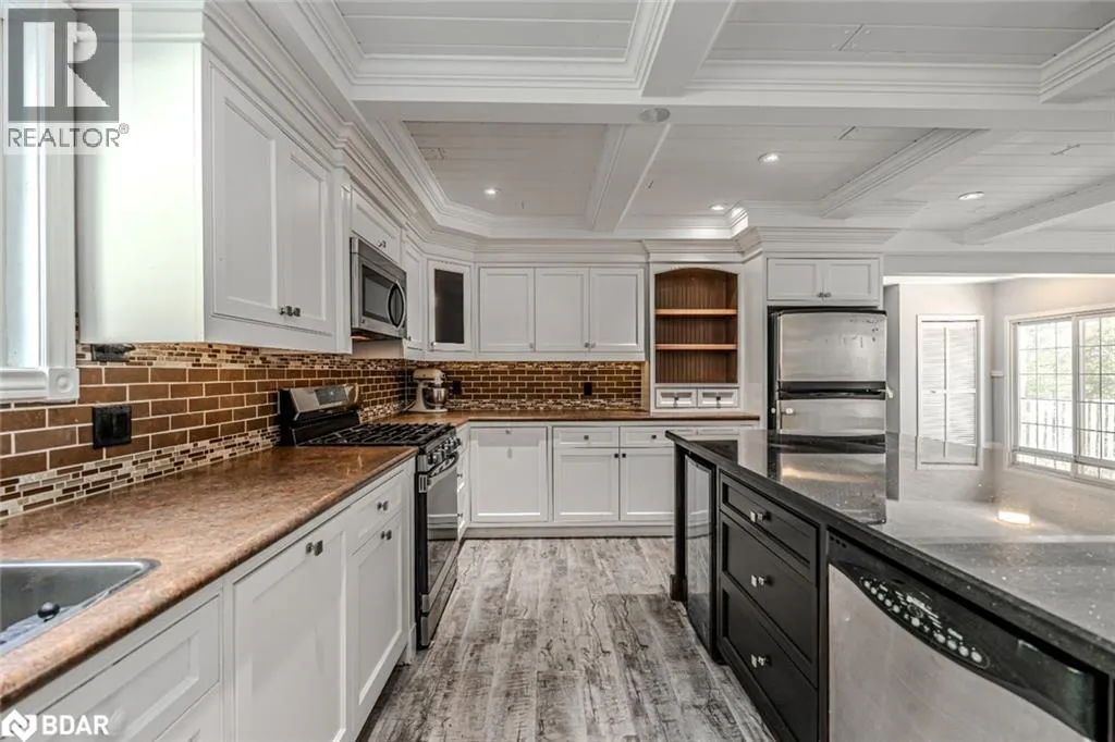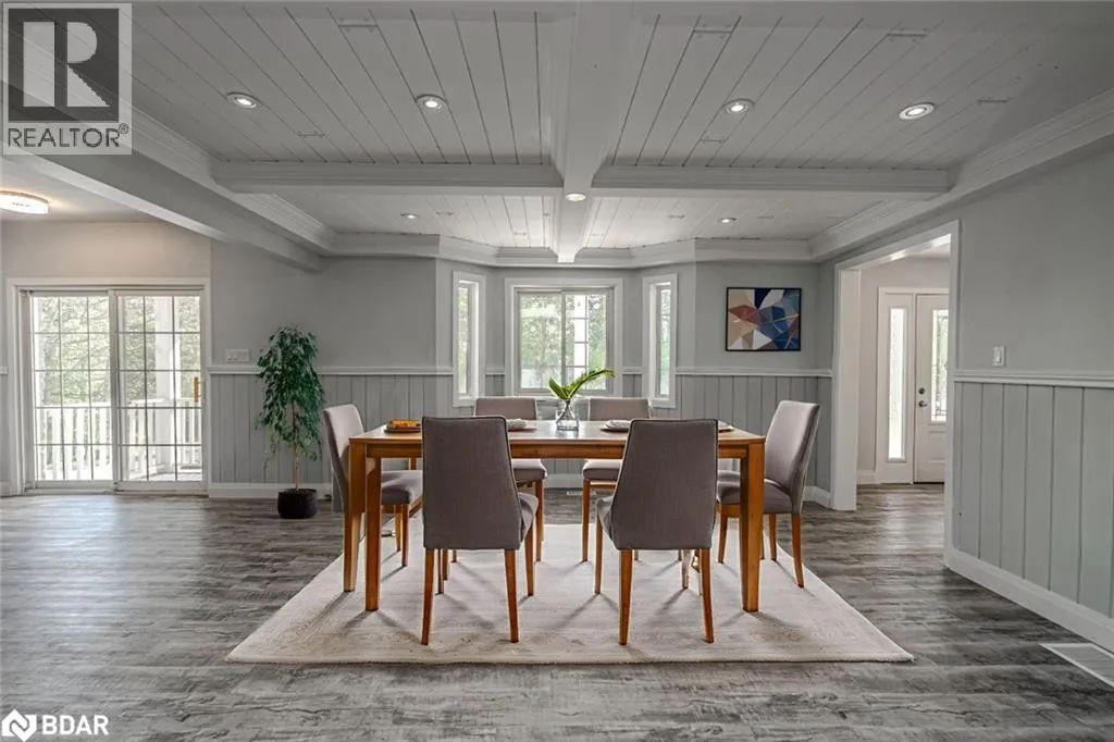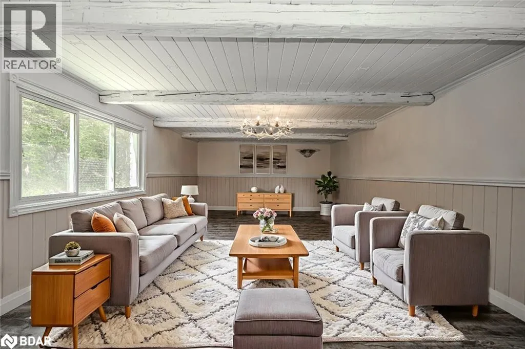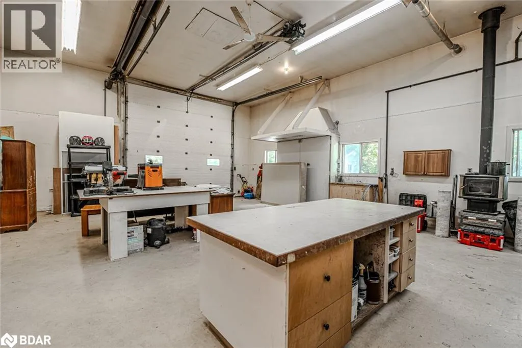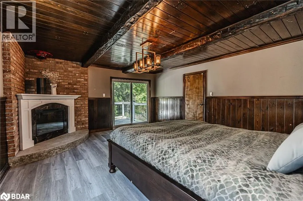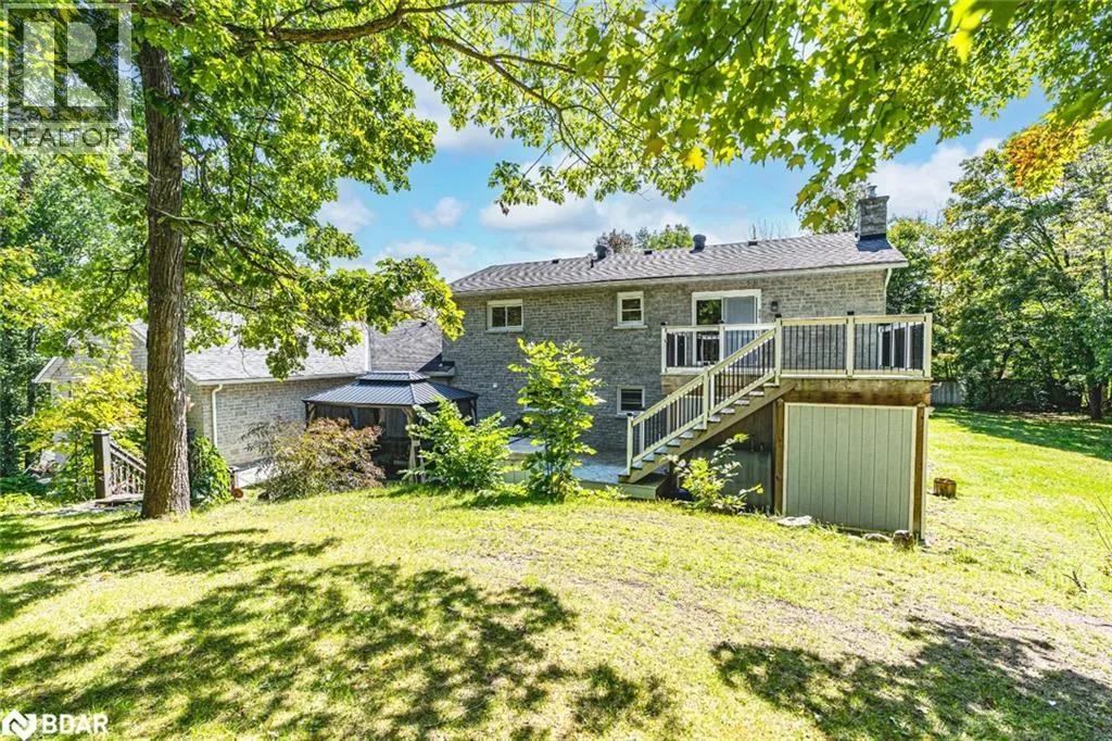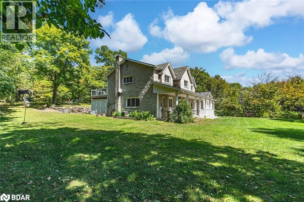 Hwy 400/Port Severn Rd N/Honey Harbour Rd/Musky Bay Rd WELCOME TO YOUR OWN PRIVATE 3+ ACRES OF MUSKOKA PARADISE WITH A 1400 SQ FT HEATED GARAGE/SHOP, RESORT-STYLE OUTDOOR LIVING, & RUSTIC CHARM! This 3+ acre retreat showcasing a Muskoka-style landscape with rock outcroppings, abundant wildlife, and a private forested EP backdrop, all located just 5 minutes from Hwy 400 and the Oak Bay Golf Club, under 10 minutes to marinas, and close to all everyday essentials. Enjoy year-round recreation with Mount St. Louis and Horseshoe Valley Ski Resort less than 30 minutes away, while Orillia, Barrie, and Midland are within 35 minutes for urban amenities. The 2-storey brick home boasts dramatic rooflines, stamped concrete walkways and steps, and a welcoming full-width covered front porch. The 1,400 sq ft insulated and heated garage is a standout with 13+ ft ceilings, radiant heat, compressed air lines, a paint spray booth, overhead storage, office and loft space, and multiple access points including dual garage doors, an oversized roll-up rear door, a side man door, and interior entry. Outdoor living shines with a patio and screened pergola, a powered tiki bar and firepit, a two-tiered deck with covered storage below, and a garden shed with a wood storage overhang, all complemented by a 5-zone irrigation system. The open kitchen, dining, and living area features a walkout to the back patio, plus a pantry, family room, and a renovated bathroom with heated floors, granite counters, and a steam shower. The upper level offers 4 bedrooms, including a primary retreat with a walk-in closet, fireplace, and a walkout to the deck, paired with a second full bathroom with heated floors and granite counters. Shiplap-style ceilings with faux wood beams add character, while thoughtful upgrades include vinyl and tile flooring, modern door hardware, fresh paint, and updated electrical. From the striking exterior to the thoughtful interior finishes, this one-of-a-kind #HomeToStay promises a life of natural beauty, convenience, and endless enjoyment. (id:27476)
