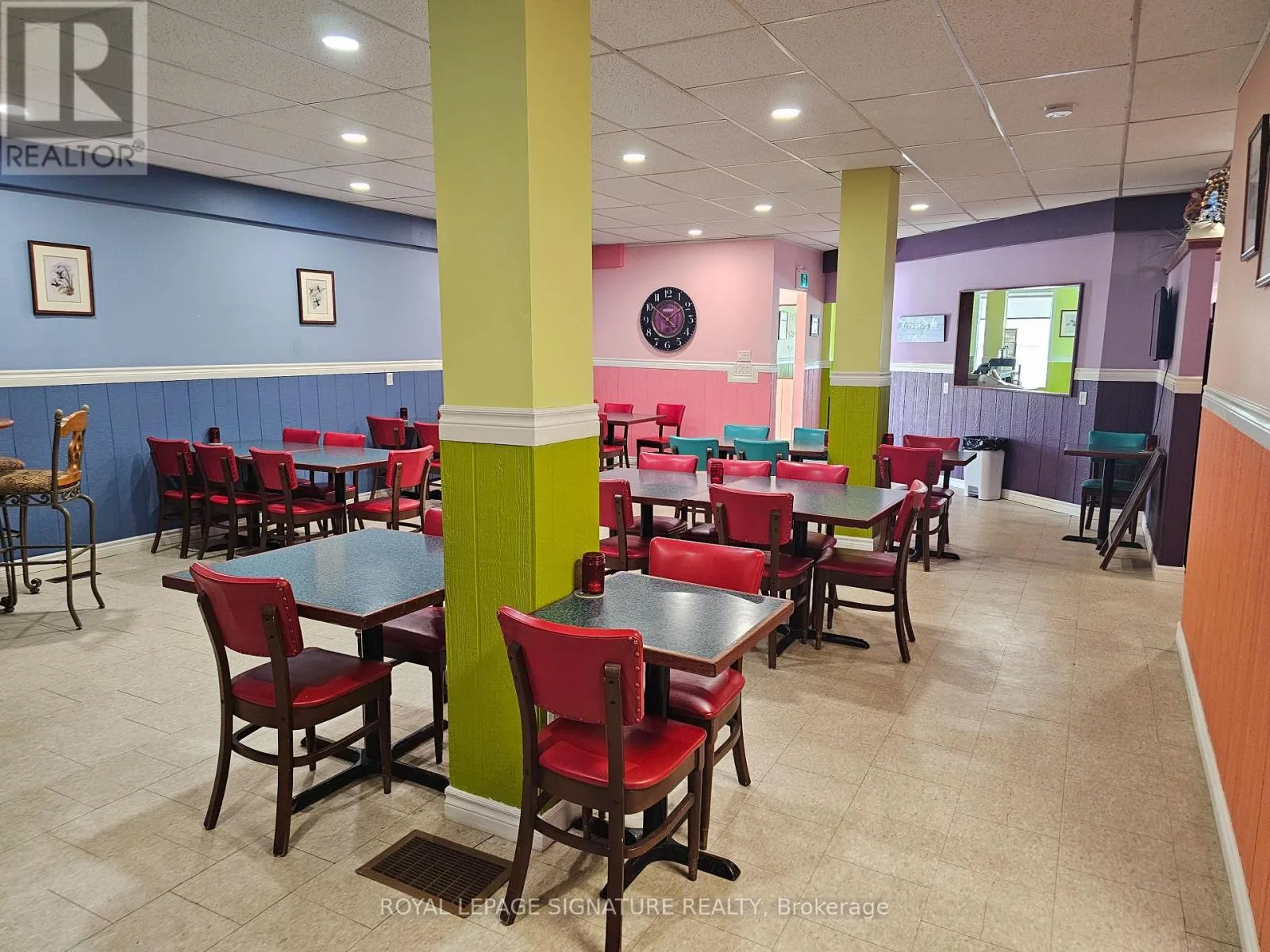Main St & King St Hummingbird Pizza is a well-established and very popular pizzeria and licensed restaurant in the heart of Powassan, Ontario. This profitable business features a 3,000 sq ft layout with both a QSR-style front counter for takeout and delivery, as well as a full dining area with one private party rooms. Located on a prime corner in the downtown core, it benefits from strong visibility, steady traffic, and a dedicated customer base. The restaurant is fully equipped with a 13-ft commercial hood, a secondary hood for pizza ovens, and holds a liquor license for 98. Additional features include on-site parking and a full patio area ready for future use.This is a turnkey opportunity with excellent sales and strong local support. Please do not go direct or speak to staff or ownership. (id:27476)