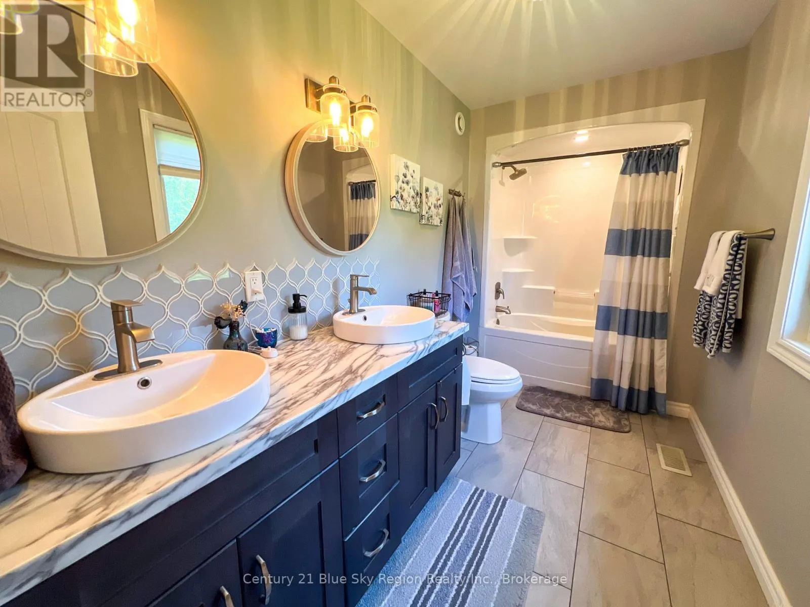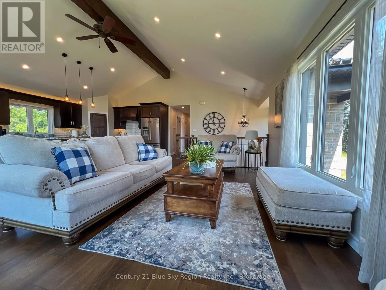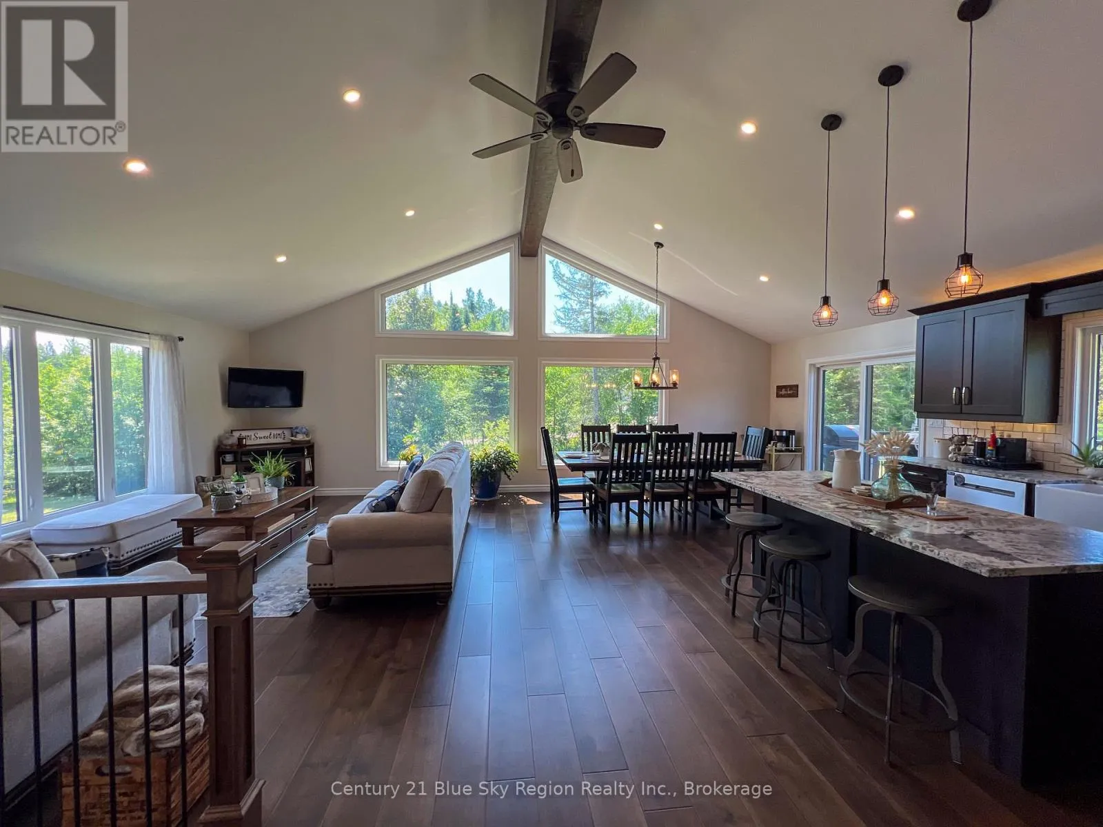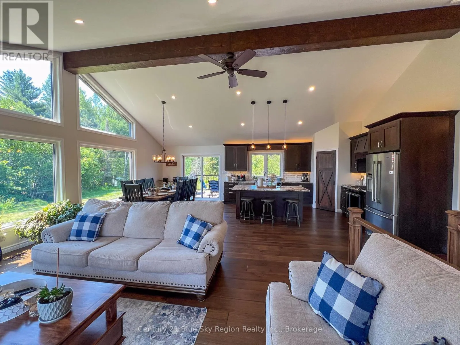 Cross Streets: HWY 534. ** Directions: HWY 11, onto HWY 534, left onto Maple Hill Rd, Property on left. Welcome to perfection. This absolutely stunning 2020 custom built home is being offered for sale for the very first time. Sitting on just under 1.5 acres of meticulously landscaped property this home surely goes above and beyond expectations and features high end finishes to immensely impress. Walking through this massive stone built entrance you definitely get the luxury feel walking into this home. Beautifully crafted vaulted ceilings in the living, dining & kitchen areas with huge triple pane windows with southern exposure. The custom built kitchen is home to a walk-in pantry along with granite countertops. Entrance to the back deck where you can bbq right off the kitchen that is steps away from your backyard escape. With a total of 6 bedrooms in the home- 3 being on the main level, you are sure to have lots of room for growing families or even multigenerational living. The primary bedroom welcoming a walk-in closet along with a beautifully done 4xPC ensuite. With upgrades going the extra mile having the bedroom sound proofed as well as a solid wood door. There are 3 total bathrooms in the home, all being 4xPC bathrooms that are beautifully completed & tastefully done. With a laundry shoot being located in the guest bathroom upstairs, laundry is made easy when heading downstairs! In the lower level of the home you are welcomed by a huge entertaining area, perfect for guests or a second living quarter. Three more bedrooms are found downstairs along with the 3rd bathroom. Heading into the 30x28ft heated garage you are met with 14ft ceilings with huge garage doors, perfect for anyone with large vehicles & toys! Headed outside you will find beautiful wrap around gardens and landscaping to your secluded backyard oasis. This home is truly everything you'd want to build & more. Everything is finished with high end taste & done simply to perfection. An immaculately built home for anyone seeking space, style, & serenity in a prime Powassan location. Come see for yourself (id:27476)