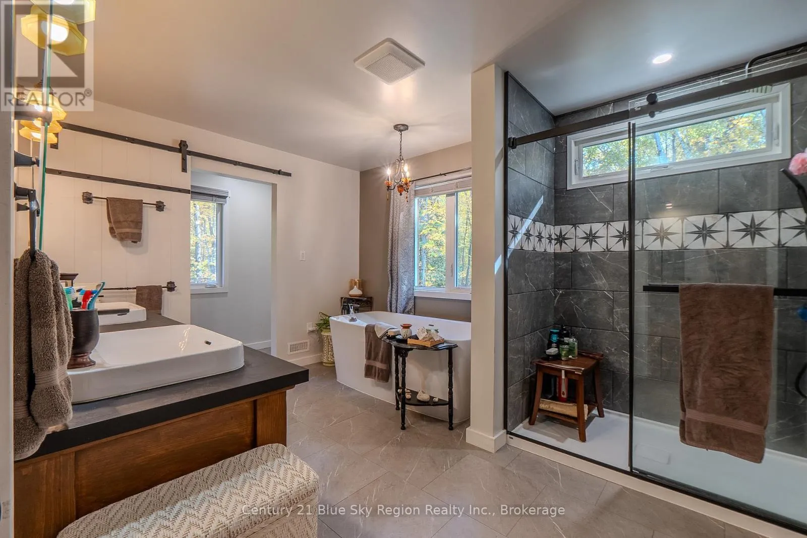 Cross Streets: Alsace and Hwy 534. ** Directions: Highway 534 to Alsace, right onto Ski Hill, House on left. Privately set on nearly 10 acres and 400 feet from the road, this craftsman house was created with accessibility and light in mind. Wide hallways, spacious rooms, and 32"+ doorways. The front porch welcomes you into a spacious, tiled entry. Off the entry is a bright bathroom featuring a unique vanity, walk-in shower, toilet, and a barn-style cheater door leading to a large, well-lit bedroom. The great room features a propane fireplace with built-in storage cabinets and a coffee nook. A terrace door welcomes you to a 10X28 deck with a propane hookup for entertaining and BBQ'ing. The open concept kitchen features full-height uppers, a large island, and Silestone countertops, a tiled cooking area boasting a 36" THOR propane range with a pot filler and adjoining prep-pantry with a baker's pass-through to the kitchen. A side-by-side fridge and freezer finish the kitchen. The Master bedroom features a large walk-in shower, a stand-alone tub, double sinks, and a linen closet. The master suite is completed with an impressive walk-in closet. Descend to the walk-out lower level with storage and central vac located under the stairs. A 2-piece marble floor washroom is at the bottom of the stairs next to another storage/workshop area, and a versatile 14'X24' sewing/exercise room. Large windows and a terrace door lead to the rear stone patio. Flexibility is the word with roughed-in plumbing and doorways that allow for a conversion in a granny suite. The lower level includes a large rec room with wiring for recessed speakers. CAT-5 is fed into every TV space to take advantage of the Fiber internet servicing the house. The basement also features a wood fireplace, kitchenette, 2 bedrooms, a large 3-piece bath, and a terrace door to the patio. The home is heated by a high-efficiency furnace with LifeBreath HRV and cooled by A/C.A full service generator provides power during outages. (id:27476)