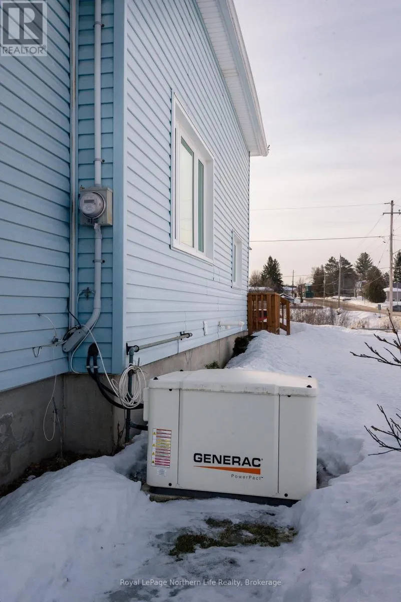 Cross Streets: Main & Valley View Dr E. ** Directions: Clark to Main St to SOP. 404 Main Street, Powassan, walking distance to town you will find a well-appointed 1497 sq ft three-bedroom, two-bathroom home situated on a generous corner lot and includes a detached double car garage. The front entrance leads to the primary bedroom, which features a three-piece bathroom with a walk-in shower. The home offers a large eat-in kitchen with direct access to the backyard patio, a step-up to a sizable dining area, and a separate family room highlighted by a striking stone wall and an updated gas fireplace. Upstairs comprises two additional bedrooms and a four-piece bathroom. The lower level includes a substantial furnace/laundry room, another expansive family room with a stone fireplace as well as a crawl space providing ample storage. Notable updates include a metal roof (2016), owned hot water tank (2020), furnace (2009), air conditioning unit (2014), windows (2007), and Generac generator (2025). This property offers an excellent opportunity for customization and personalisation. (id:27476)