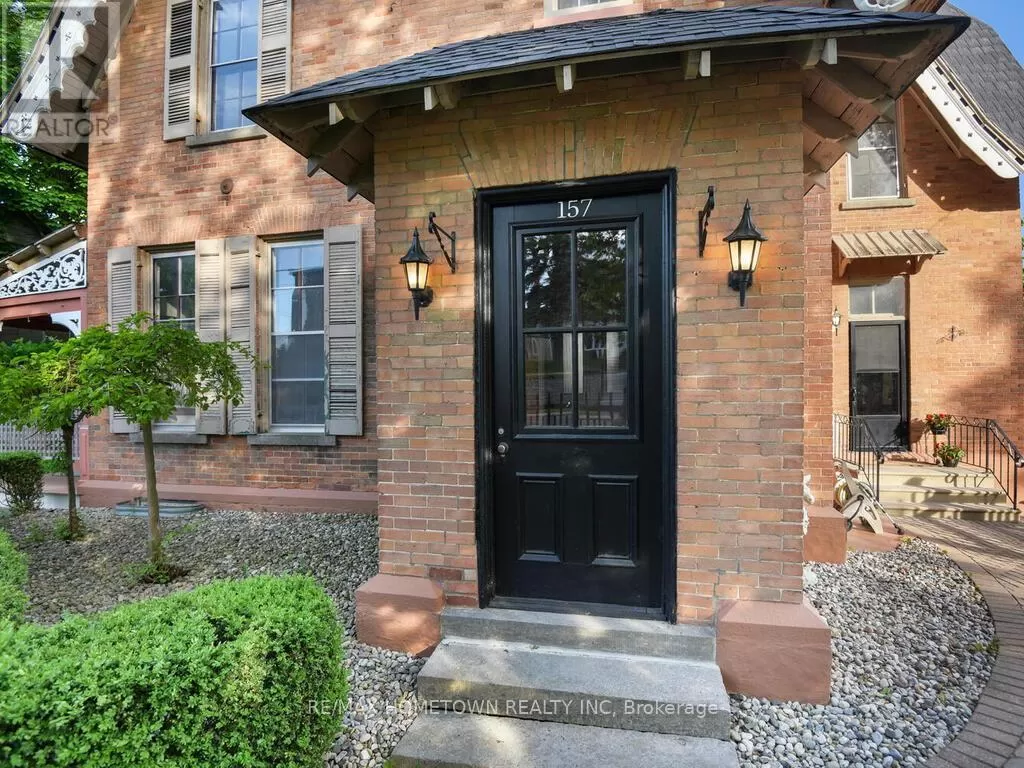 Cross Streets: Dibble West and Edward Street. ** Directions: Take exit 716 and head south; go over the 401 overpass and train overpass. Once you go over train over overpass, you will come to a light, and Dibble Street is the second street on the right; house is the second on the left#157. Stunning 2-Storey Victorian Home (1857 -Over 2,700 sq ft. of Character and Charm - This meticulously maintained double-brick Victorian from 1857 blends historic charm with modern function. With over 2,700 sq. ft. of finished space, this home is rich in original detail and perfect for families, creatives, or those needing versatile space for work and play. Main Floor Highlights: Elegant front vestibule with a high ceiling, Victorian terracotta tiles, built-in benches, and a hand-wrought Moroccan ceiling lamp. Spacious formal living room with double garden doors opening to an east-facing porch. A media/sitting room and a convenient 2-piece bath with a window. The kitchen features rich maple cabinetry and opens into the dining area.Large study with six windows and its own separate entrance, ideal for a home office. Bright 4-season sunroom with radiant heated floors, two tall original garden doors, and a patio door leading to a two-tiered deck and a nearly-new 18 ft heated above-ground pool. Upper Level: Two generously sized bedrooms, each with its own 3-piece ensuite.Two additional bedrooms plus a sun-filled loft with pot lights and two Velux skylights, perfect for an art studio or playroom. Extras: Fully fenced property for privacy and security. A heated rear garage with a removable fence panel can serve as a workshop or garage, with space beside the house for RV or boat storage. Massive 1,666 sq. sq.ft. dry walk-out basement with 6'5"+ ceilings. Flooring throughout includes hardwood and ceramic.This unique home is a rare mix of period elegance and practical upgrades.Ready for its next chapter. Just minutes from the 18-hole Prescott Golf Club. Catch live performances at the Kinsmen Amphitheatre, home to the annual St. Lawrence Shakespeare Festival (July-August). Hone your scuba skills at the Prescott Dive Training Park. Sandra Lawn Harbour Marina, 128 slips, Alaine Chartrand Community Centre, local history at Fort Wellington.This is more than a home-it's a lifestyle. (id:27476)