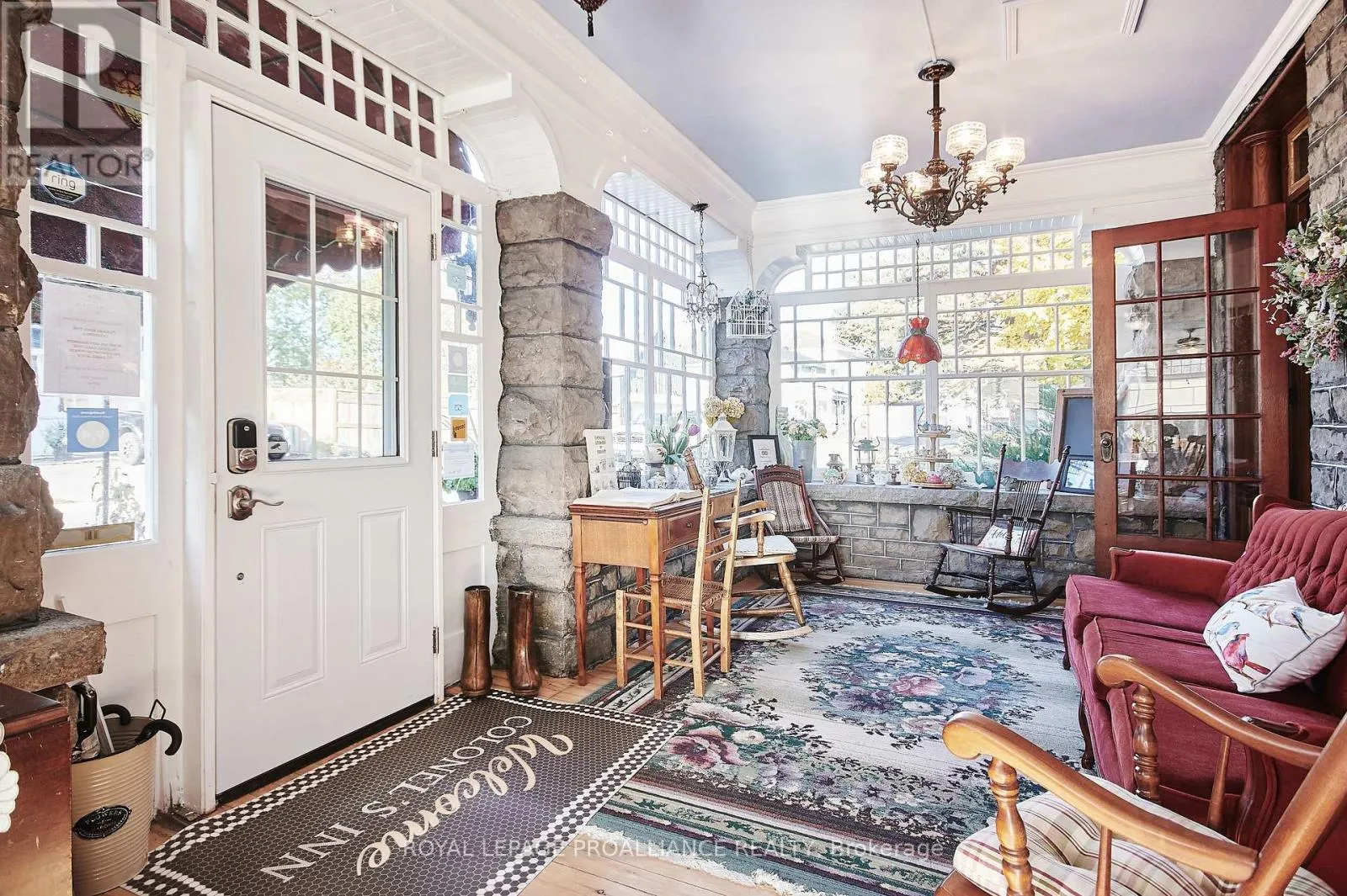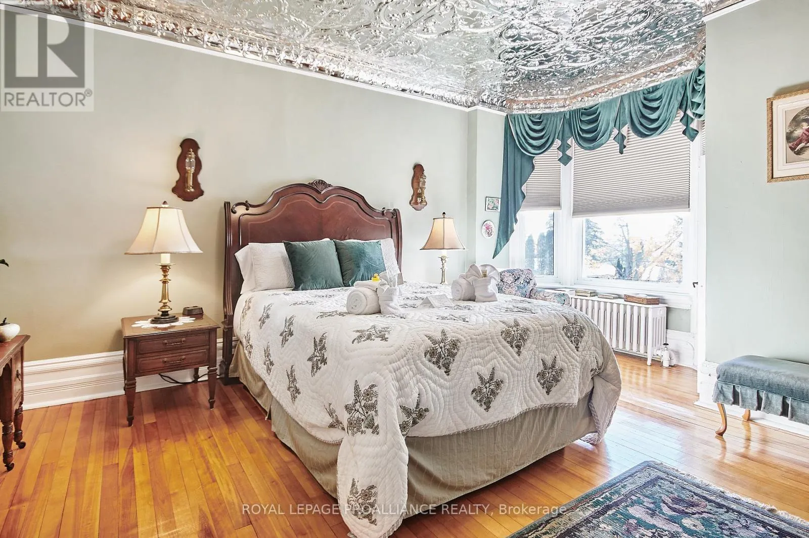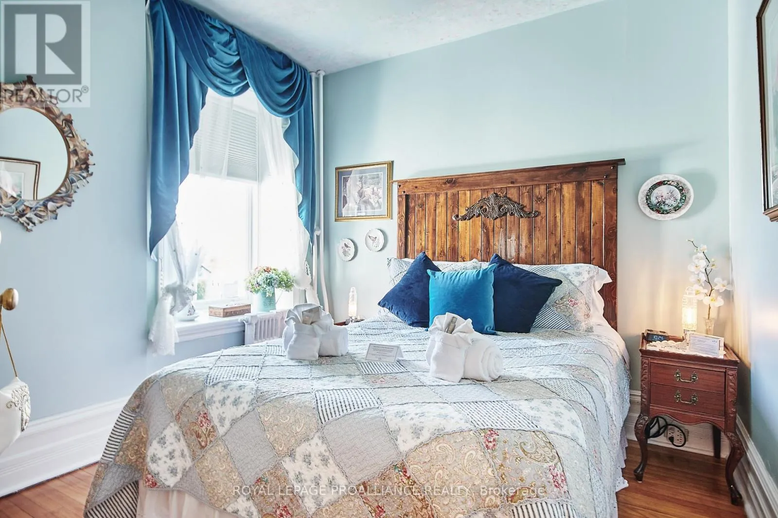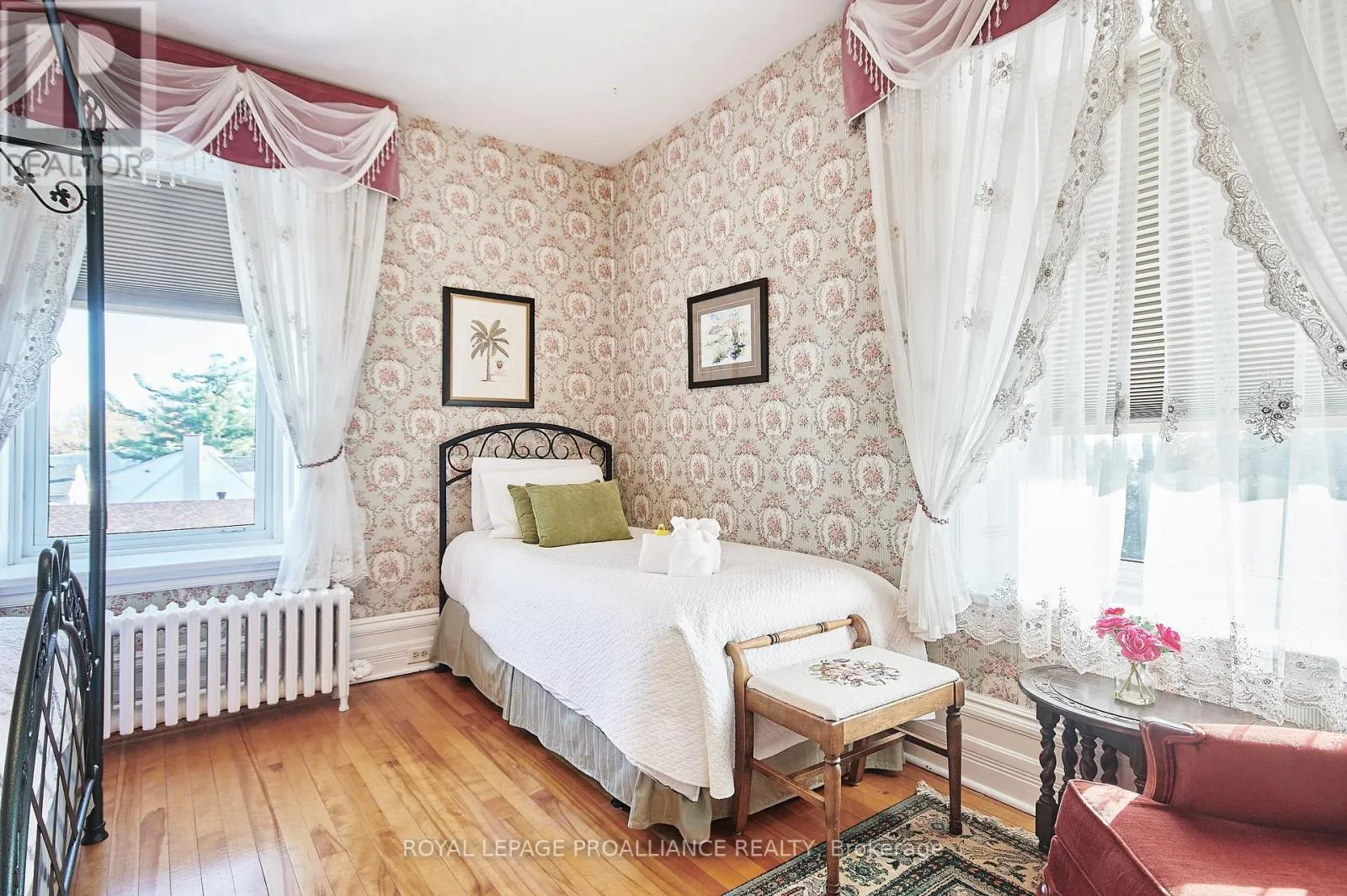 Cross Streets: East St / Dibble St. ** Directions: From Highway 401 take Edward St south, turn left onto Dibble St E follow to East St, property is on the corner of East St & Dibble St E. A cherished piece of history has arrived to market. This spectacular 3 storey (circa 1830, as per MPAC) straight coursed stone home was originally built by members of Colonel McDonell's family (Colonel of Fort Wellington). This home is proudly positioned on a 1/2 acre of property within the Fort Town. An extensive addition by Denis Higgins in 1909 transformed this home to a level of opulence with the addition of a spectacular dining room and butler's pantry, a large kitchen, porches (later to be all enclosed) and the carriage house. Further upgrades have been completed over the years. The moment you enter home you instantly feel connected to the Loyalist roots. Solid oak panelled walls, woodwork, banisters & finishings have been meticulously crafted. The dining room has a hand-painted silk ceiling, while the living room has bevelled glass pocket doors, a parlour coal stove(now gas) with the original marble hearth and vintage tin ceiling on the second floor. Boasting 11 beds, 9 baths, 5 fireplaces, a detached "carriage house", lovely stone patio, inground pool, and enclosed wrap around verandah (tea room). There isn't another home quite like this in the area. Currently operating as the Colonel's Inn Inc., this turn-key opportunity with an established business is yours to carry on or occupy as a family home, or perhaps a multi-generational home. In previous years, the enclosed front porch operated as an Antique Store ... a home based business. There is a full basement which offers the laundry area, storage for the Inn supplies ( which includes linens), a mechanical room, workshop, storage, office and a 4 pc. washroom. Located two blocks from the Majestic St. Lawrence River, the Sandra Lawn Harbour, Amphitheatre , and downtown core. Centrally located to Highways 401, 416 and the USA International Bridge. (id:27476)