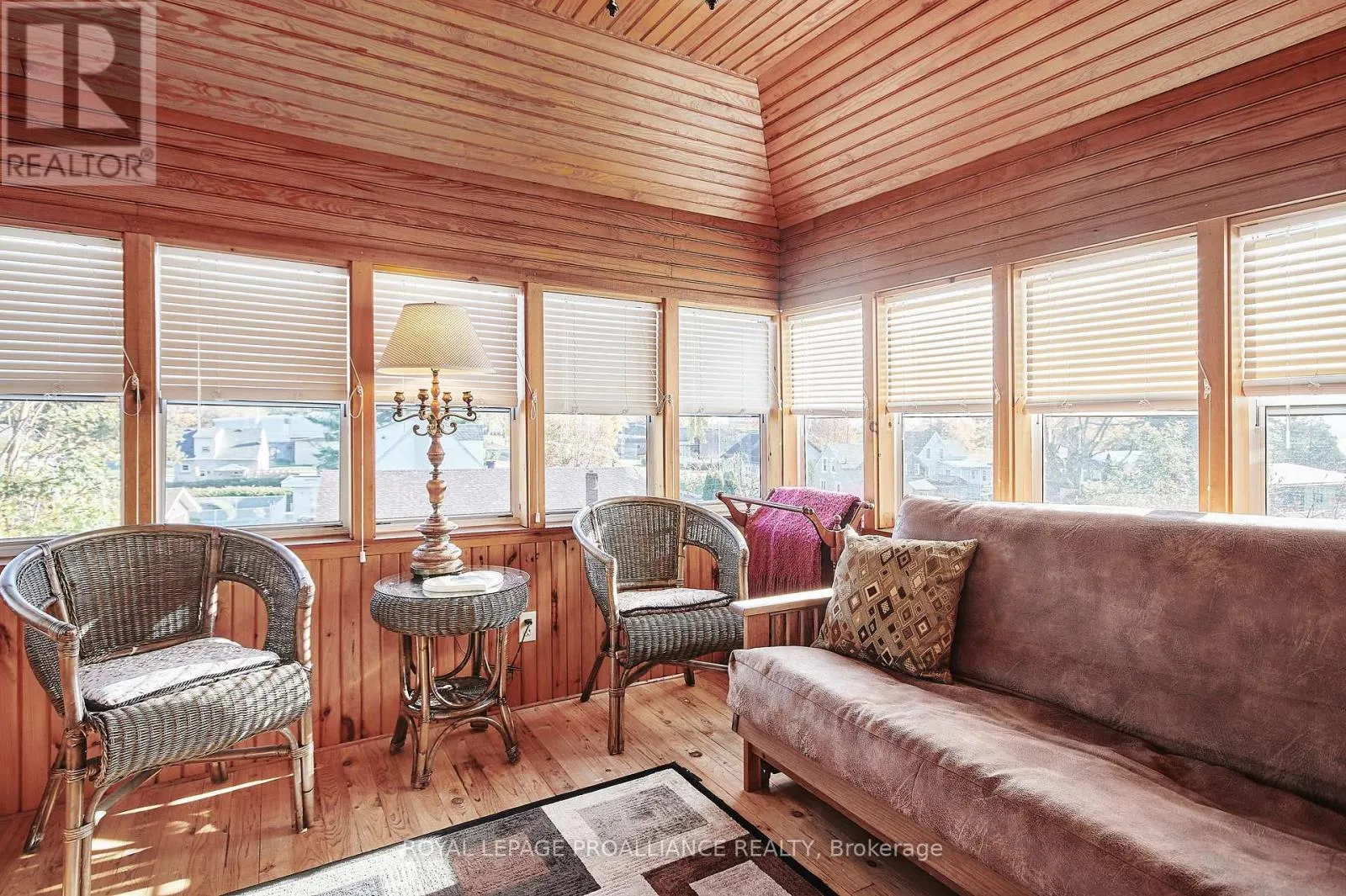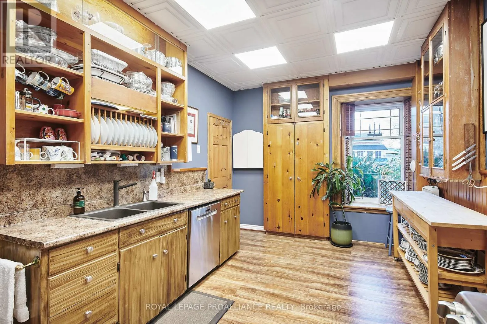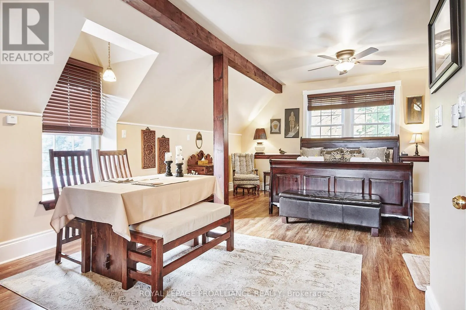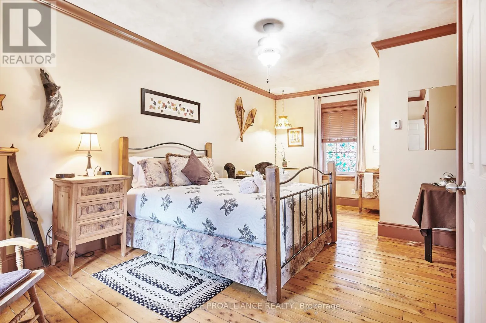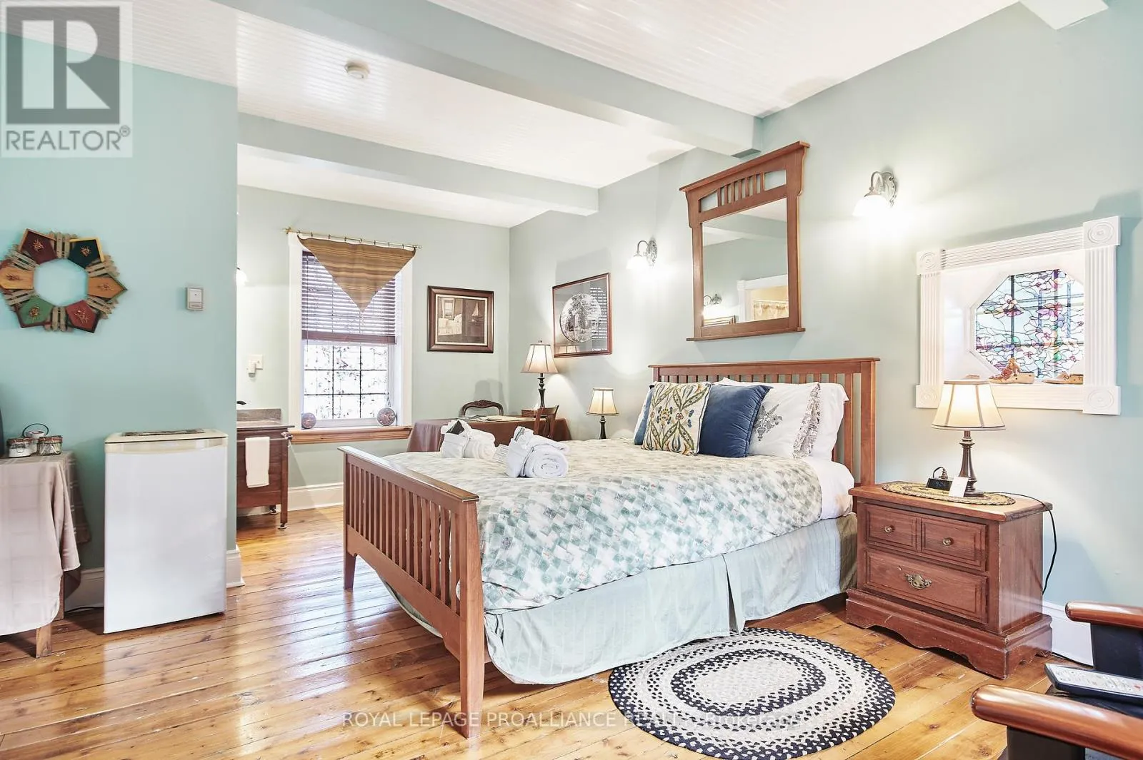Cross Streets: East St / Dibble St. ** Directions: From Highway 401 take Edward St south, turn left onto Dibble St E follow to East St, property is on the corner of East St & Dibble St E. A cherished piece of history has arrived to market. This spectacular 3 storey (circa 1830, as per MPAC) straight coursed stone home was originally built by members of Colonel McDonell's family (Colonel of Fort Wellington). This home is proudly positioned on a 1/2 acre of property within the Fort Town. An extensive addition by Denis Higgins in 1909 transformed this home to a level of opulence with the addition of a spectacular dining room and butler's pantry, a large kitchen, porches (later to be all enclosed) and the carriage house. Further upgrades have been completed over the years. The moment you enter home you instantly feel connected to the Loyalist roots. Solid oak panelled walls, woodwork, banisters & finishings have been meticulously crafted. The dining room has a hand-painted silk ceiling, while the living room has bevelled glass pocket doors, a parlour coal stove(now gas) with the original marble hearth and vintage tin ceiling on the second floor. Boasting 11 beds, 9 baths, 5 fireplaces, a detached "carriage house", lovely stone patio, inground pool, and enclosed wrap around verandah (tea room). There isn't another home quite like this in the area. Currently operating as the Colonel's Inn Inc., this turn-key opportunity with an established business is yours to carry on or occupy as a family home, or perhaps a multi-generational home. In previous years, the enclosed front porch operated as an Antique Store ... a home based business. There is a full basement which offers the laundry area, storage for the Inn supplies ( which includes linens), a mechanical room, workshop, storage, office and a 4 pc. washroom. Located two blocks from the Majestic St. Lawrence River, the Sandra Lawn Harbour, Amphitheatre , and downtown core. Centrally located to Highways 401, 416 and the USA International Bridge. (id:27476)