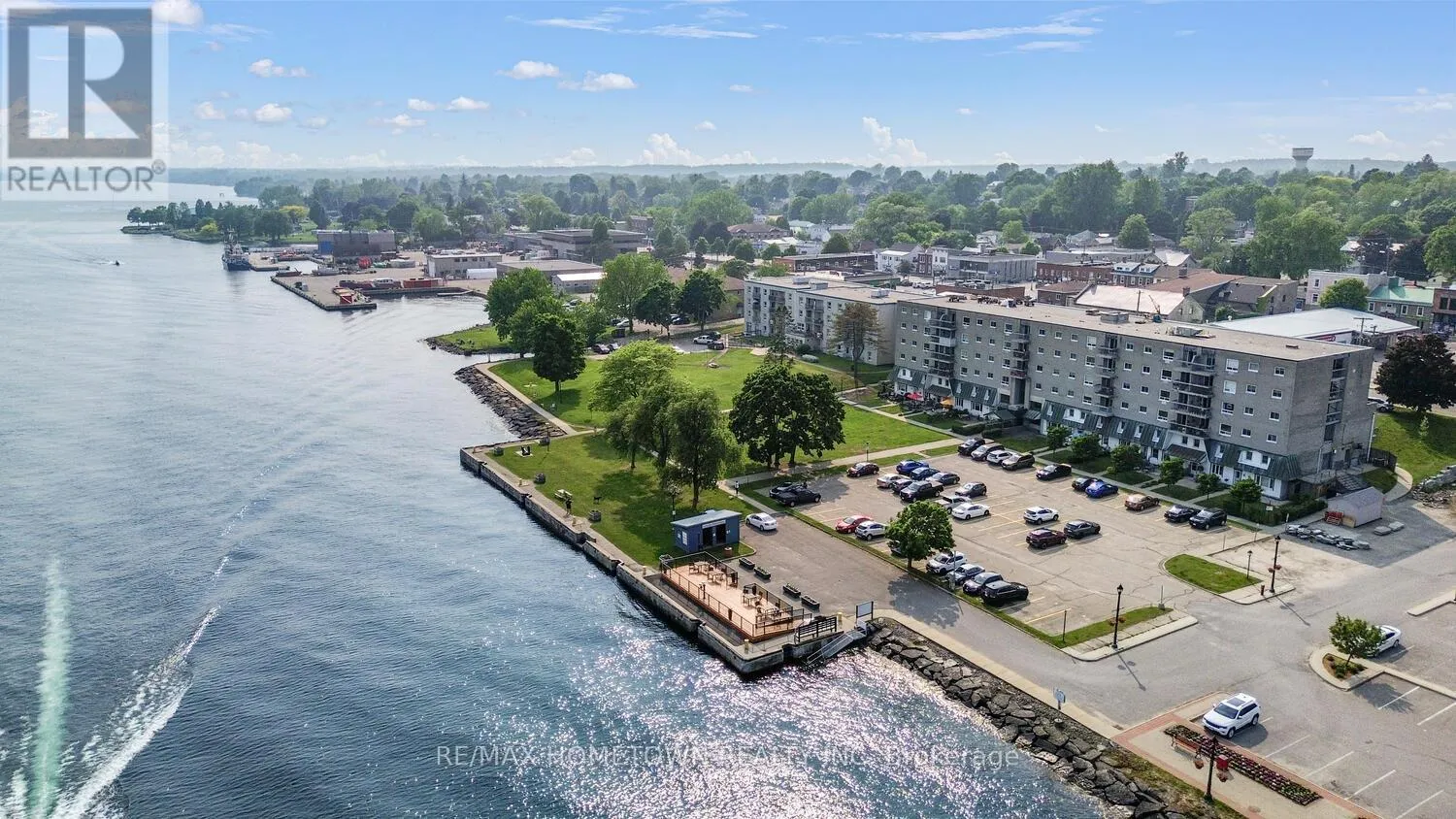 Cross Streets: Water Street and Centre Street. ** Directions: Exit 716 off of 401 and head south on Edward Street till you come to King Street. At the light by TD Canada Trust, you will turn right, and at the clock tower, turn south, and the first right is Water Street. 2-Bedroom Condo with Stunning St. Lawrence River Views - Welcome to Prescott Place! This bright and well-maintained 2-bedroom, 1-bathroom condo offers year-round, unobstructed views of the beautiful St. Lawrence River. Whether you're looking for a future home or a smart investment, this unit is perfect. Buy now and rent it out until you're ready to move in. Inside, you'll be greeted by abundant natural light, thanks to the unit's desirable south-facing exposure. The updated kitchen is conveniently located just off the entrance, offering ample counter and cupboard space. From the kitchen, step into the dining room, which features patio doors that open to your private balcony-a perfect spot to relax, enjoy the scenic river and park views, and watch fireworks from both the Canadian and U.S. sides. The dining room flows into a spacious living room, ideal for entertaining or cozy evenings at home. The hallway offers generous storage with multiple closets. You'll also find two comfortable bedrooms and a renovated 4-piece bathroom. Currently tenanted at $1,230/month (plus utilities-as of January 1st of 2026), this condo includes one parking spot. Located just steps from downtown Prescott, you'll enjoy easy access to shops, restaurants, and amenities. Shoppers Drug Mart is right across the street for your everyday needs. Key Features: 2 Bedrooms | 1 Updated Bathroom, Private Balcony with River & Park Views, South-Facing Unit with Natural Light, Updated Kitchen, Ample Closet & Storage Space. The tenant pays $1,200/month + utilities, which includes 1 parking spot. Prime location, walkable to downtown Prescott. Don't miss your chance to own a waterfront condo in a vibrant and convenient location! (id:27476)