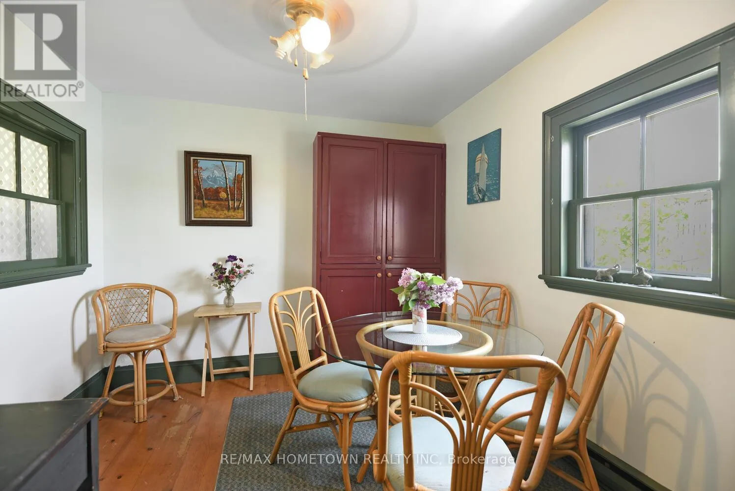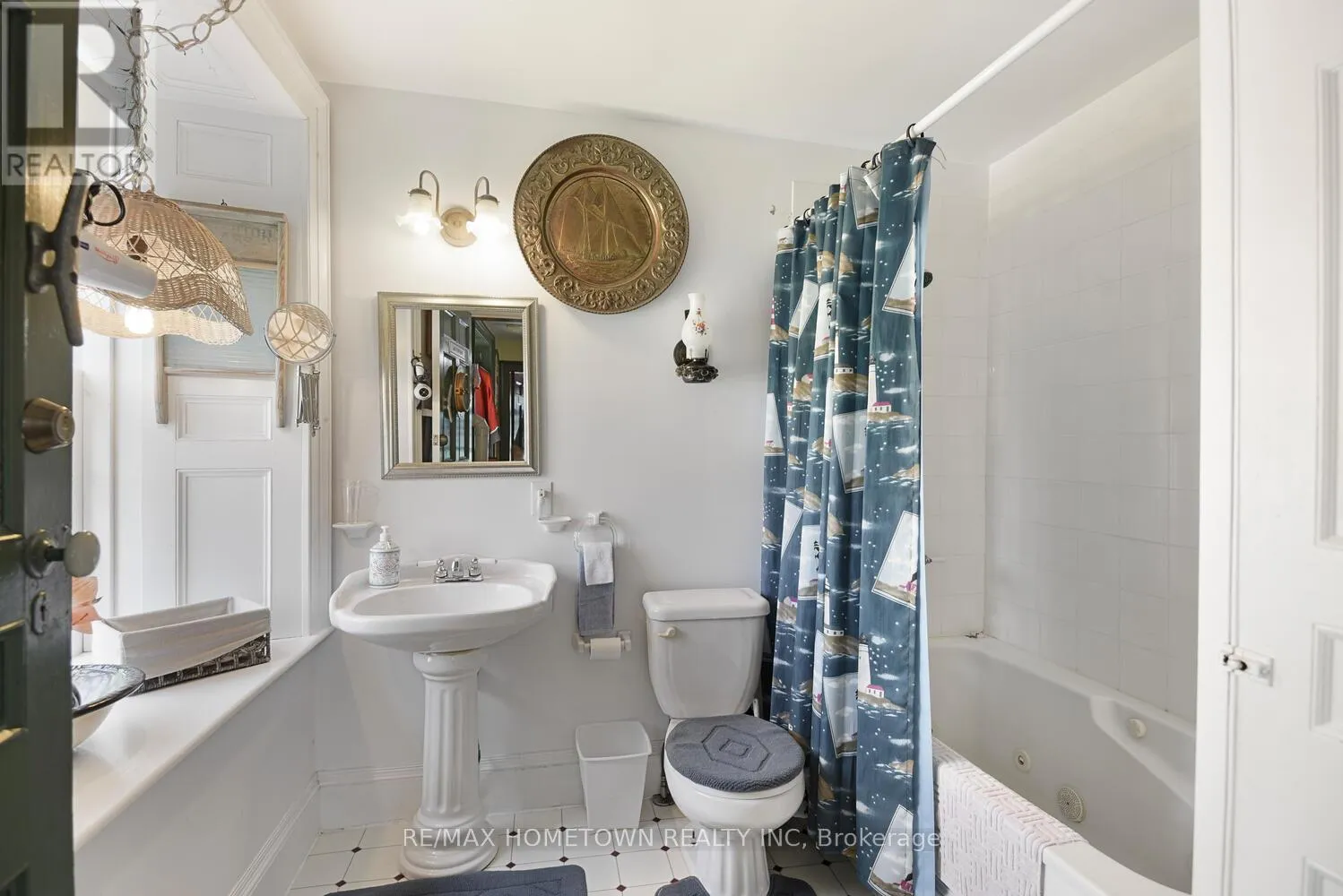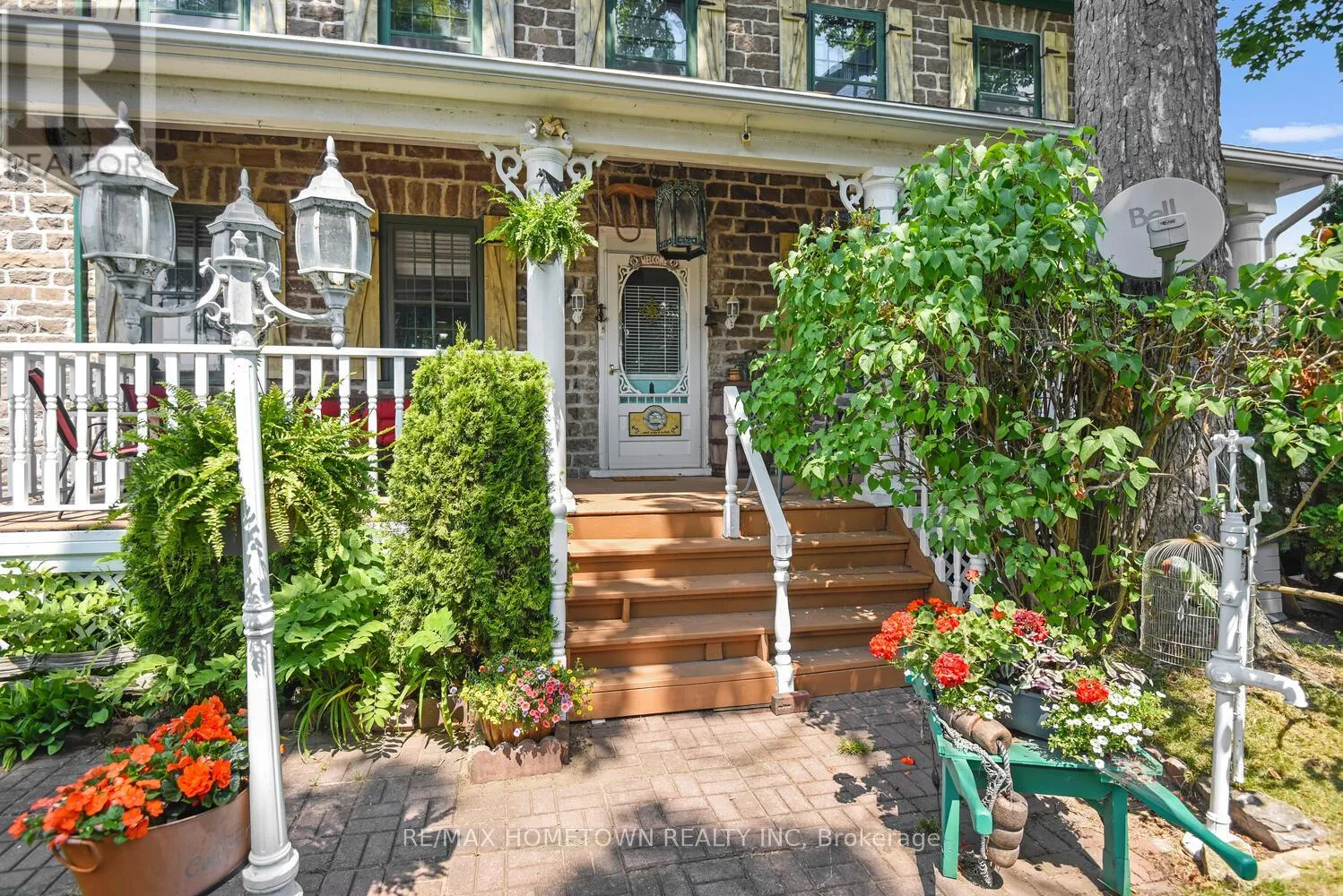 Cross Streets: King Street and St ;awrence Street. ** Directions: Exit 716 off of 401 and head south on Edward Street till you come to King Street. At the light by TD Canada Trust, you will turn right, heading west. Corner of King Street West and St Lawrence St. Historic 1832 Stone Home with River Views, Income Potential & Steps to the St. Lawrence - Live, eat, and sleep in history in this non-registered historic restored stone home, built in 1832 by Scottish sea captain John Rosamond. Just a short walk to the stunning St. Lawrence River with access to the river and beach, this unique property blends character, comfort, and convenience with year-round river views. Currently operated as a seasonal Bed & Breakfast, this location is ideal for guests or personal enjoyment. Walk to the nearby sand beach, public pool, park, boat launch, and tennis courts. The front yard is private and fully fenced - perfect for pets-and the veranda offers a peaceful spot to sip your morning coffee while taking in the view. Inside, you're welcomed by a spacious living/sitting room. The formal dining room features a large fireplace (not used by the current owner), and a step down leads to the kitchen. Just off the kitchen is a flexible room that could serve as an office or den, and there's also a screened-in sunporch for relaxing evenings. A main-floor bedroom shares access to a 3-piece bath, great for guests or multigenerational living. Upstairs, you'll find three bedrooms and three bathrooms, including two en suites, providing comfort and privacy for family or visitors. As a bonus, there's a self-contained 1-bedroom apartment with its own separate entrance that was rented for $1,100/month (all-inclusive), offering an opportunity for a steady income potential. For hobbyists or entrepreneurs, the nearly 1,200 sq ft, 3-car garage with its own electrical panel is a dream space for projects, collections, or even a small business. Don't miss your chance to own a piece of history in one of the most scenic and walkable locations by the river. Book your showing today! (id:27476)