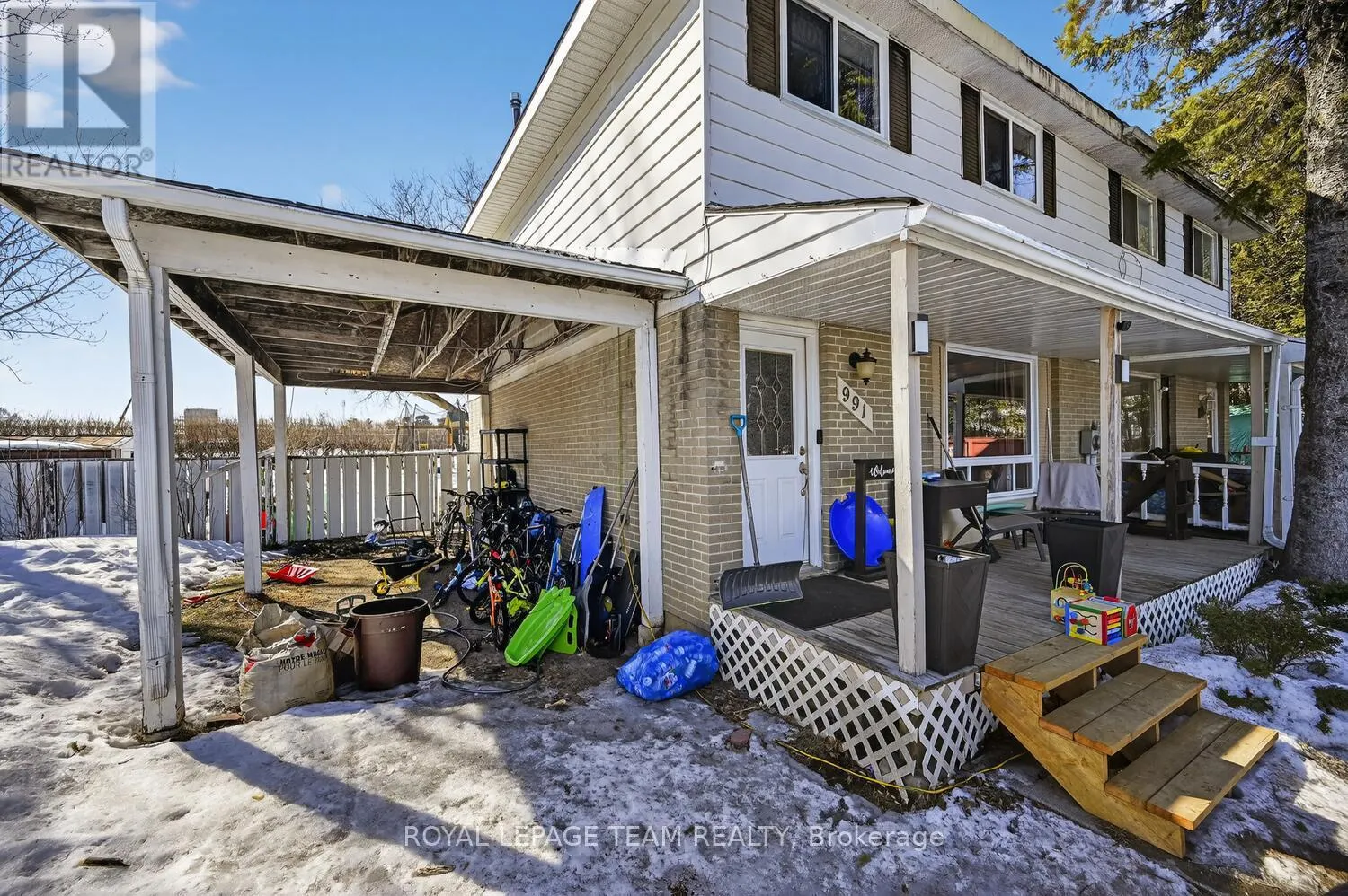 Cross Streets: Churchill Rd & Mackenzie Rd. ** Directions: HWY 401 TO CTY RD 18/ PRESCOTT/ EDWARD STREET, SOUTH TO CHURCHILL ROAD, AND EAST TO MACKENZIE ROAD. Well maintained 4 bedroom Semi Detached. Perfect home for a family. This home is walking distance to schools, stores, churches and other amenities. You are only 1 hour to the city and near all other major transportation routes, including Via Rail, Highway 401 & 416, Bridge to NYS. Large living area with patio access to a covered deck. In ground pool (Sold AS IS) completely fenced. You are backing onto the SGDHS properties. Kitchen with ample cabinetry and countertop work space. Cozy dining space off Kitchen for intimate dinners or game nights. Bathroom recently refinished 1 yr. Roof NEW 2025. Good sized bedrooms with lots of natural light. Basement has been framed, unfinished. Laundry Basement. NO appliances included. (id:27476)