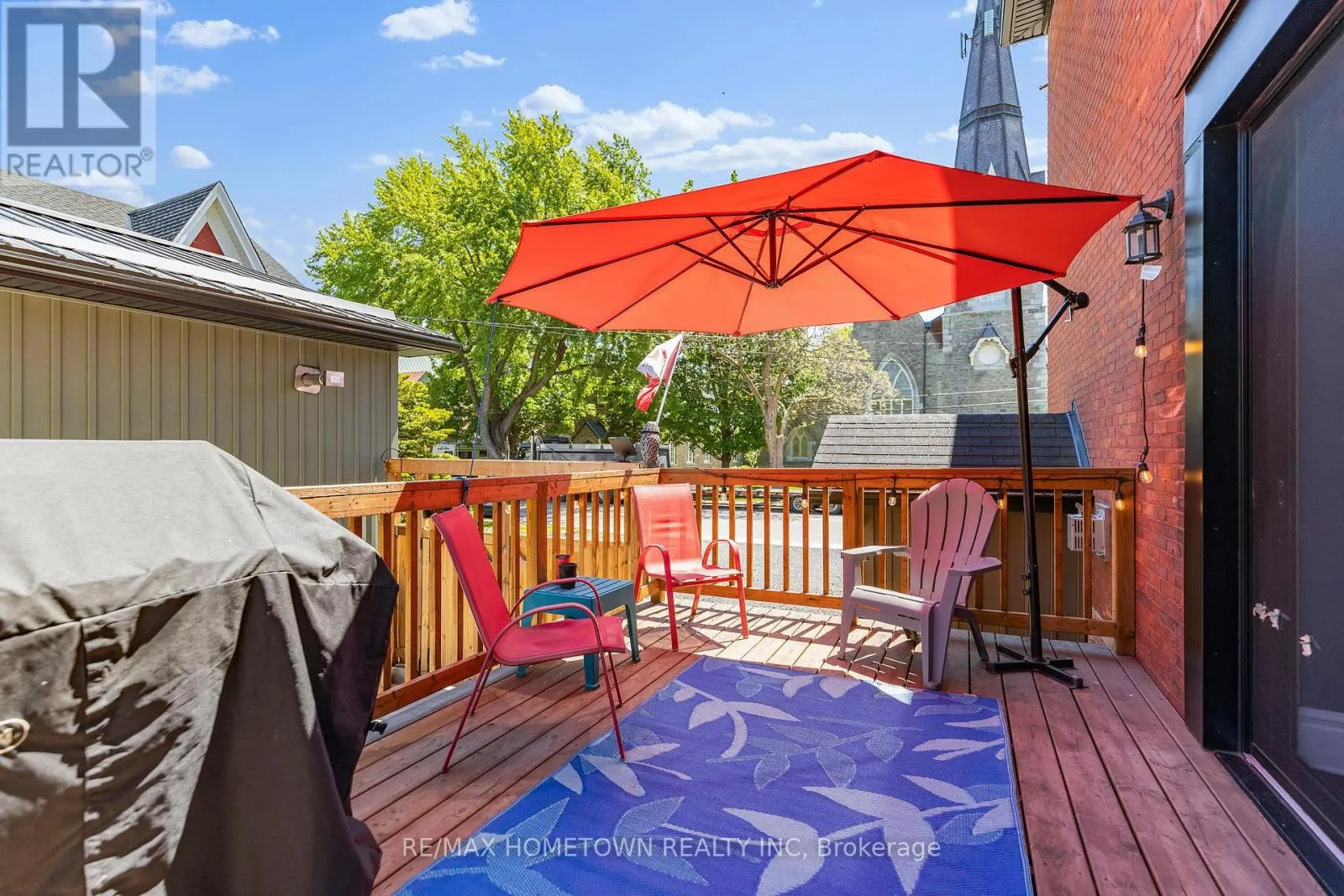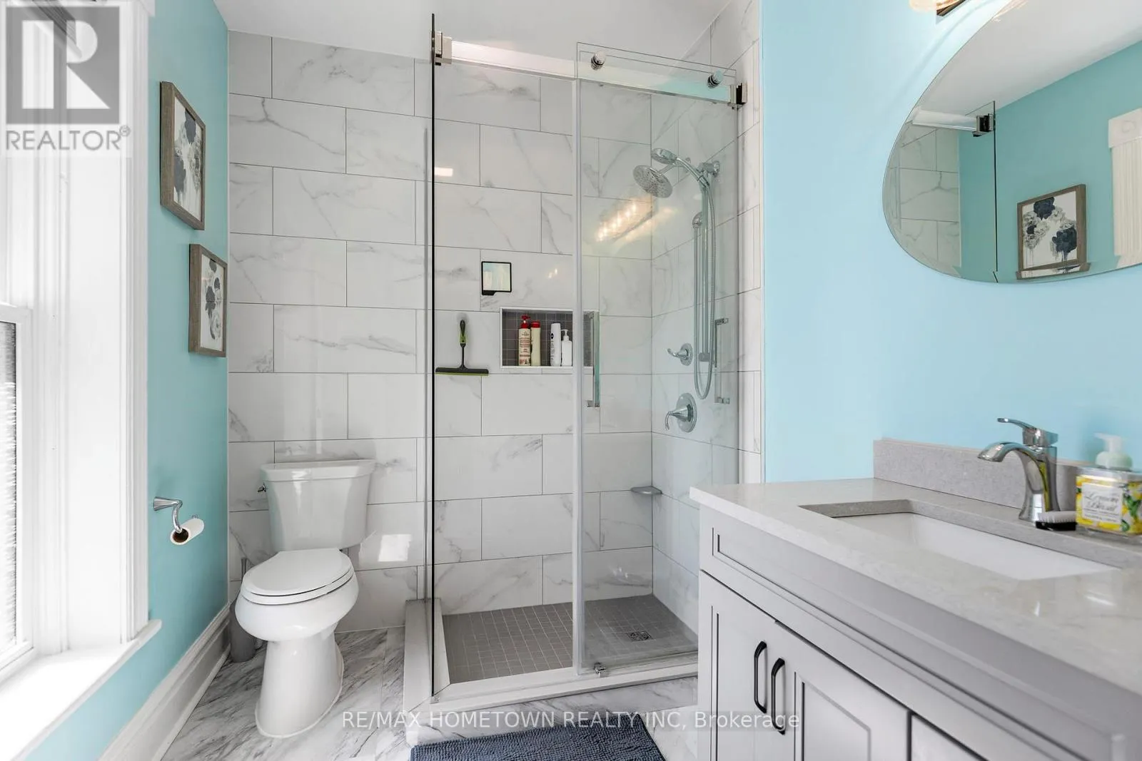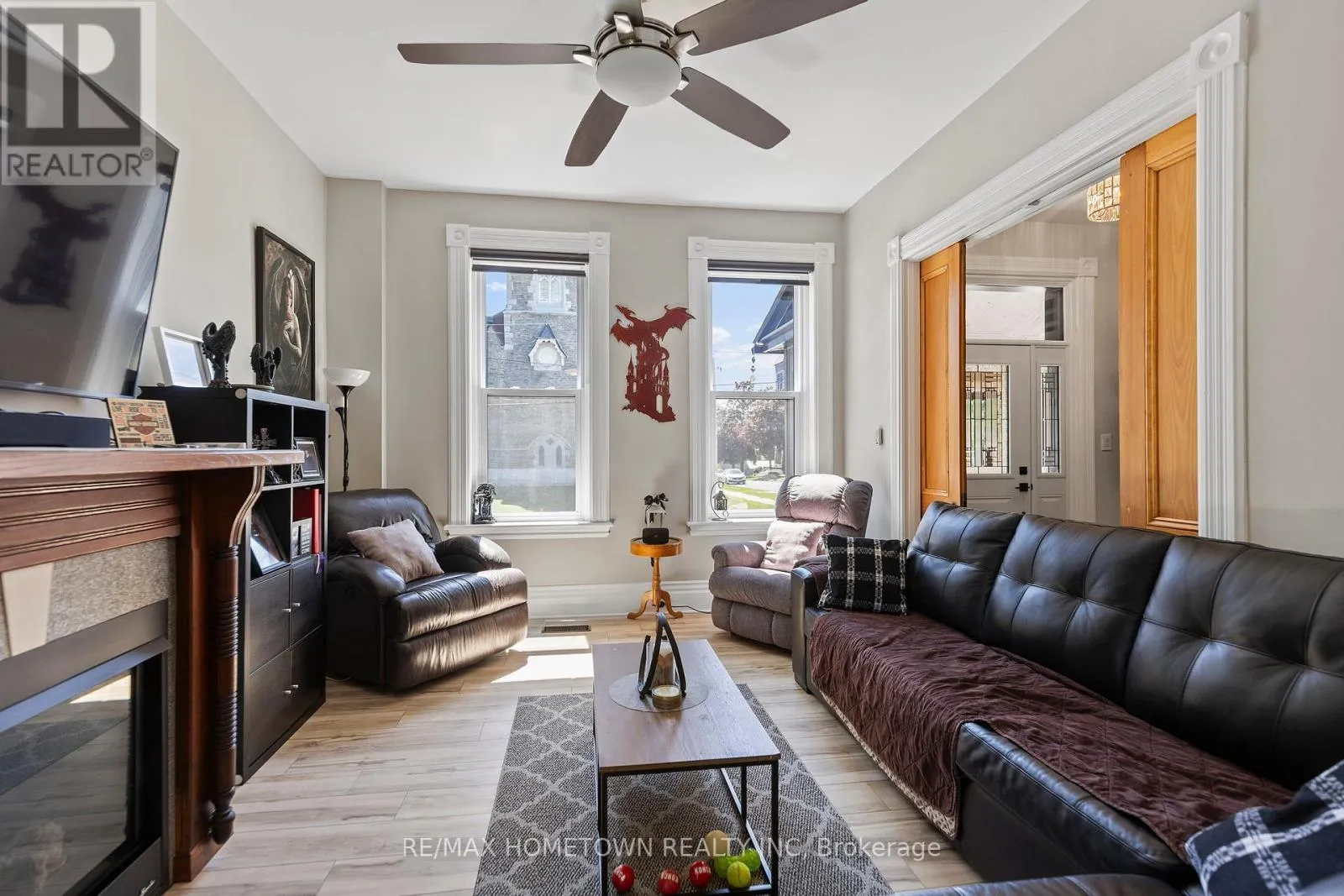 Cross Streets: James and Centre Street. ** Directions: Exit 716 off 401, head south on Edward Street, head over train overpass and past the light, first right is James Street. turn right and house is last on the right hand side #198. Charming 4-Bed, 2.5-Bath Brick Home with Modern Upgrades & Character. Step into 2,500 sq. ft. of comfort and style in this solid, all-brick detached home that perfectly blends timeless character with today's modern conveniences. With 4 bedrooms, 2.5 bathrooms, and a fenced yard, this home is designed for real life-whether that means raising a family, hosting gatherings, or simply enjoying quiet moments at home. Main Floor Highlights: Welcoming 3-season enclosed front porch, ideal for morning coffee or evening reads. A spacious foyer opens into a warm living room featuring a gas fireplace for cozy nights. New patio doors lead to an east-facing deck and private fenced yard, with direct access to the garage through a convenient side door. A large dining room-perfect for family dinners or entertaining guests. A modern, fully updated kitchen with new gas range & hood. (All appliances included) Dual exterior doors-one leading to a covered deck for year-round BBQs. 2-pc powder room completes the main floor. Upper Level-Primary bedroom with a new private 3-piece ensuite (2023). Two additional bedrooms plus a bright fourth room, ideal as a home office, nursery, or den. A full 4-piece bath (2025) serves the upper level. Additional Features- 24x30 ft detached garage (2023); 720 sq. ft., wired and heated-perfect for hobbies, workouts, or year-round use. A fully fenced yard (2022) completes this property. This home combines modern updates with lasting quality and character-the perfect place to start your next chapter. Updates: Driveway paved (2025); furnace (2023); AC (2021); 100 amp service (2018); main roof (2018); sunroom roof (2024); sewer and water line replaced (2023); all new windows (2023-2024); new front door & sunroom porch windows (2025); fascia, soffit, and eaves (2022); deck off kitchen (2025); updated 4-piece bath (2025); tankless hot water heater (2020); plumbing (2018).The owner has done a home inspection and it will be available on viewings. (id:27476)