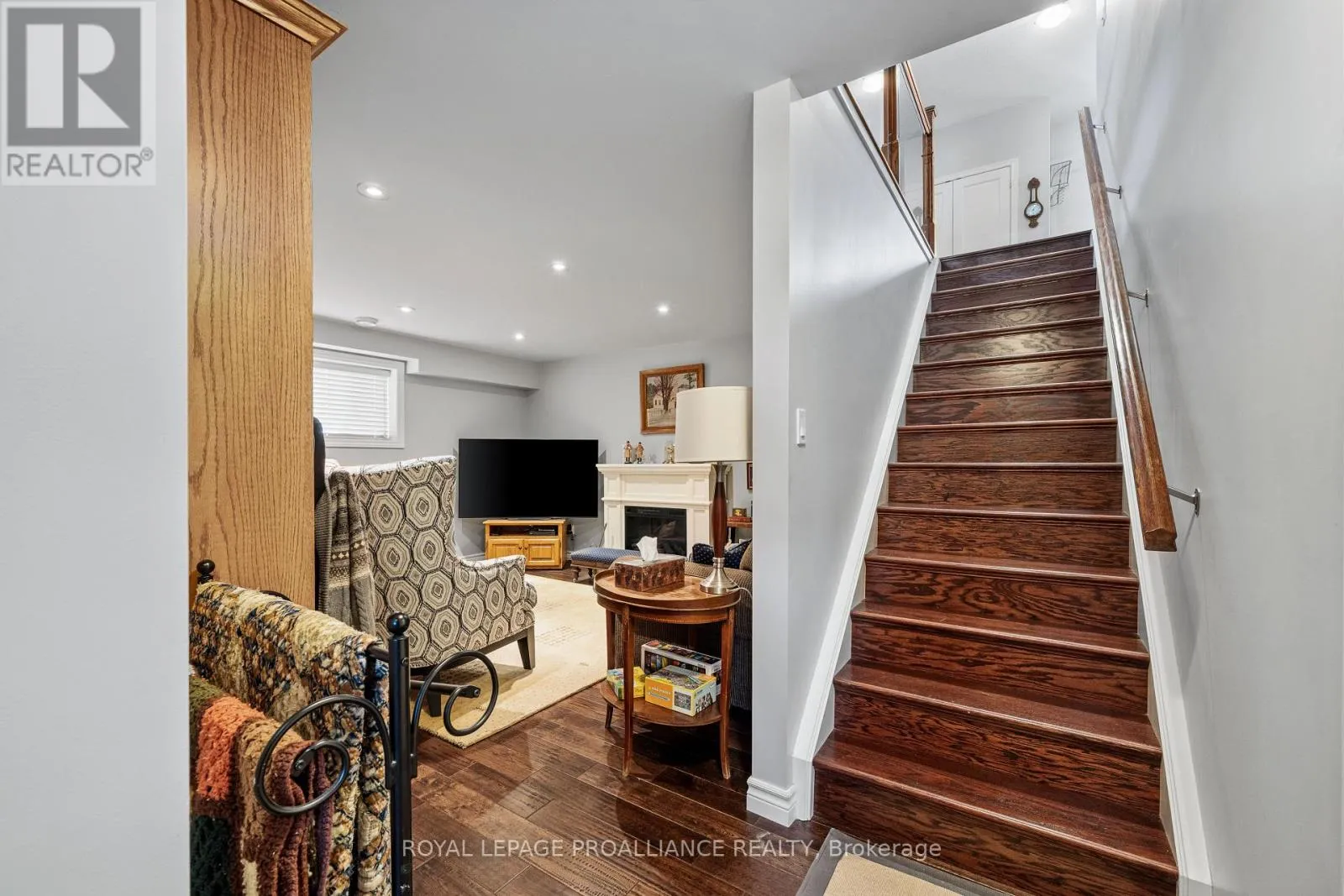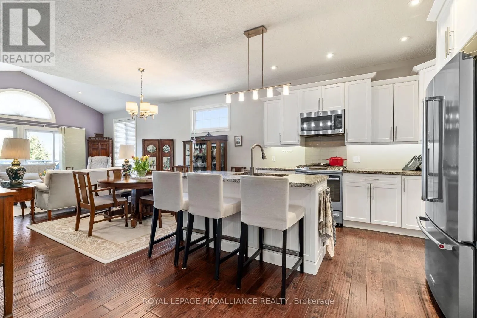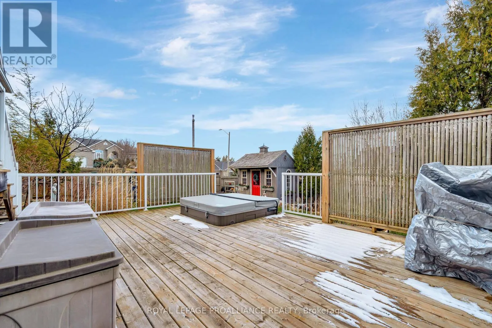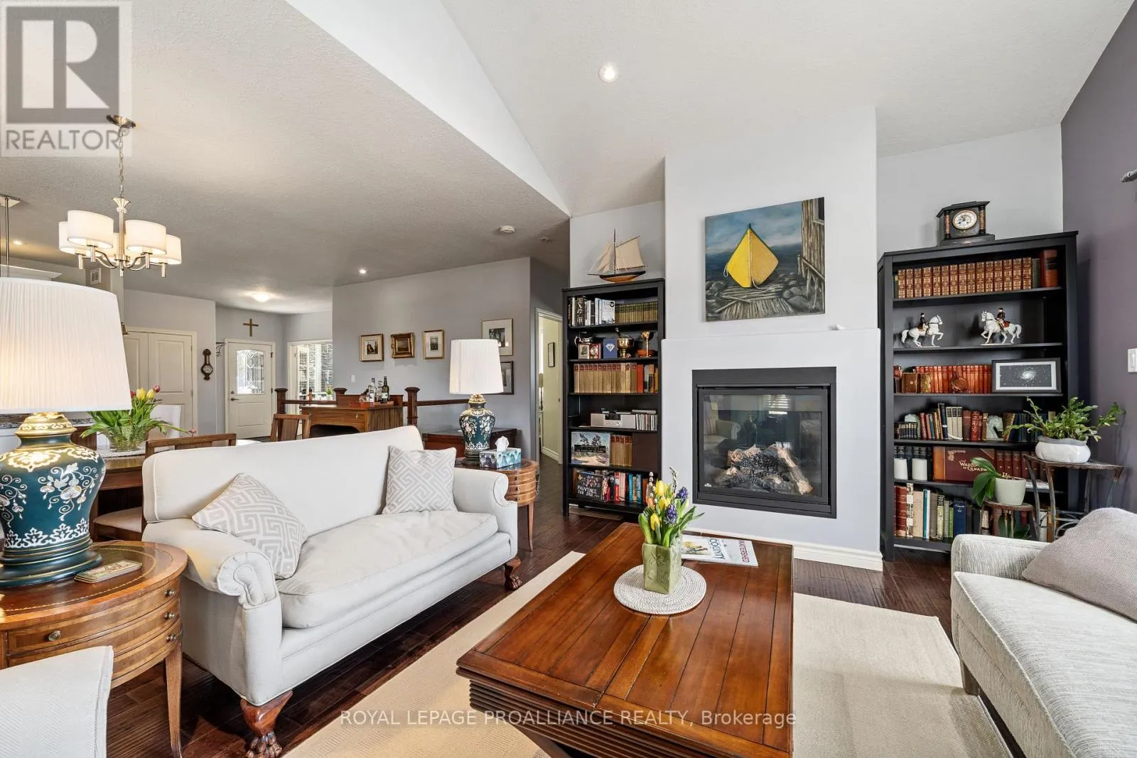 Cross Streets: Union St-John St. ** Directions: Union St to John St to Owen St. Located on a quiet cul de sac in Picton, sits this pristine custom-built bungalow by Woodcrafters, Peter Morkis. The property features a beautifully finished lower level, gorgeous landscaped gardens with a pond, shed and hot tub. A delightful primary bedroom with ensuite and a guest bedroom with semi ensuite invite you to completely unwind. Just off the foyer of the great room is a library/study, perfect to work from home. Vaulted ceilings create an expansive space with an open concept kitchen perfect for gathering with friends and family. Natural light pours in through giant picture windows to enhance the charming setting. Relax here a while and enjoy the glorious sunset views. As a bonus, there is a dark room/production studio for your creative endeavors. A truly sophisticated home combined with the convenience of in- town living. Only steps to Main Street's local shops, restaurants, the Royal Hotel and our beloved Regent Theatre! (id:27476)