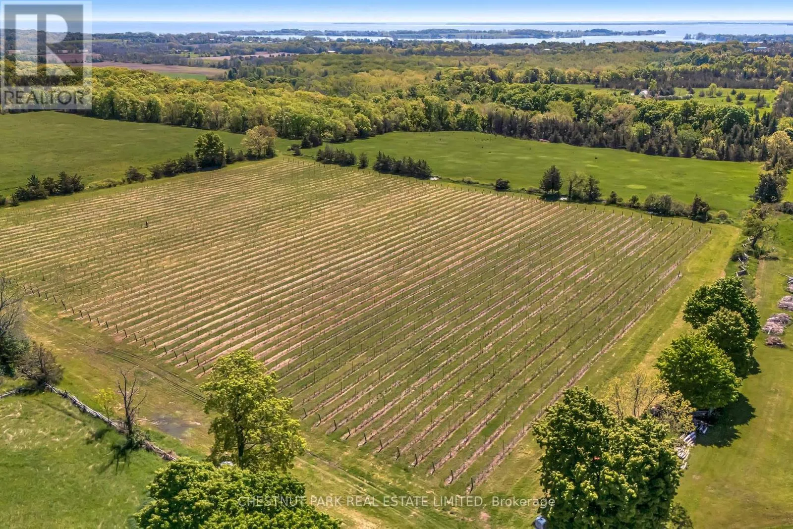 Cross Streets: County Road 8 & 25. ** Directions: County Road 8 to County Road 25. Set amidst 24 acres of rural landscape, including 7 acres of an established producing vineyard, this timeless three-bedroom century home weaves heritage architecture with pastoral elegance in Prince Edward County. A classic gabled faade and welcoming verandah invite you into the residence where tall ceilings, warm wood trim, and light-filled rooms create a sense of ease and continuity. Inside, a generous principal living room seamlessly anchors the home while the eat-in kitchen offers charm with expansive counter space and views of the grounds. Three bedrooms with optional flex/fourth bedroom on main floor include a private primary wing that enjoys a perched vista over the land and a quiet separation from the main living areas below, supported by one full and one half bath. Outdoors, the landscape opens into wide green lawns, vibrant fields, nostalgic outbuildings, and vineyard rows that subtly echo the agrarian rhythms of The County. The offering includes essential wine-making equipment and home furnishings, providing a rare opportunity to step directly into the lifestyle or venture into boutique production. A red carriage house set up as a tasting room and lounge space evoke possibilities for entertaining, art, or agritourism. A brick pizza oven enhances the occasion to take full advantage of the outdoors for relaxation and seating that elevate alfresco dining into a true experience. Varietals (Hybrid) professionally trellised with 9' row spacing, 4' vine strategically planned for ease of maintenance include by row 2 Experimental / 2 Osceola Muscat / 10 Frontenac Blanc / 16 Frontenac Rouge / 12 Marquette / 18 Petite Perle. Just minutes from town conveniences, yet entirely immersed in nature, this property offers a rare duality of refined rural living with ready access to the regions celebrated food, wine, and culture. Here is a canvas equally suited for a family estate, creative retreat, or lifestyle venture. An inspired setting, ready for its next steward. (id:27476)