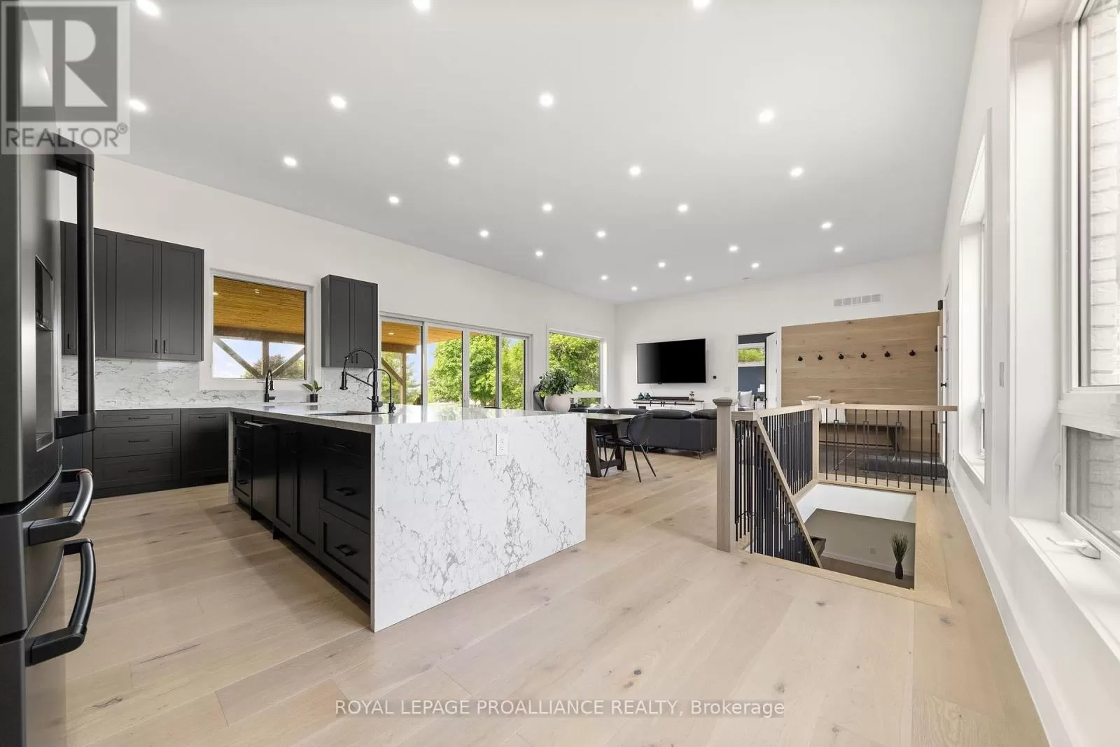 Cross Streets: County Road 3 / Dempsey Road. ** Directions: East on County Road 3 from Belleville to #2528 (Past Rednersville Village). Welcome to 2528 County Road 3 a stunning, newly built waterfront home completed in 2025, offering over 144 feet of private shoreline on the Bay of Quinte and set on 1.6+ acres in beautiful Prince Edward County. This modern bungalow features 3+3 bedrooms and 3 bathrooms across two fully finished levels, showcasing high-end finishes, thoughtful design, and breathtaking water views from nearly every room. Enjoy soaring 12' ceilings in the main living areas and 10' ceilings in main-level bedrooms, along with oversized, UV-tinted windows for privacy and energy efficiency. Premium 9" engineered white oak flooring flows throughout both levels. The heart of the home is a designer kitchen with a 10' x 5' quartz waterfall island, dual sink stations, open shelving, and top-tier Cafe appliances in matte black finish. The spacious primary suite features a custom closet system, oversized windows, and a spa-like 5-pc ensuite with double sinks, a soaker tub, and a glass walk-in shower with Riobel fixtures. Walk out through a 12' sliding door to a 54' x 22' covered patio with stamped concrete flooring and pot lighting - perfect for outdoor entertaining. The lower level offers 8' ceilings, a large family/games room, gym area, powder room, laundry with quartz counters, and 3 additional bedrooms with large, deep windows. Connected to the home via a heated/air-conditioned spa room is a massive 53' x 30' garage with 13' ceilings, pot lights, 12" concrete flooring for lifts or equipment, and EV charger pre-wiring. Outside, enjoy a newly installed 20 composite cantilever dock (2025), Armour Stone shoreline, waterfront firepit patio, stamped concrete driveway, and gravel access to the water. Lot allows for a second dwelling up to 7,500 sq ft. Mechanicals include a 2023 Trane furnace, 2025 central air, UV/RO water treatment, 200-amp service, and spray foam insulation. Just minutes to wineries, restaurants, and beaches - this is waterfront luxury living in PEC at its best. (id:27476)