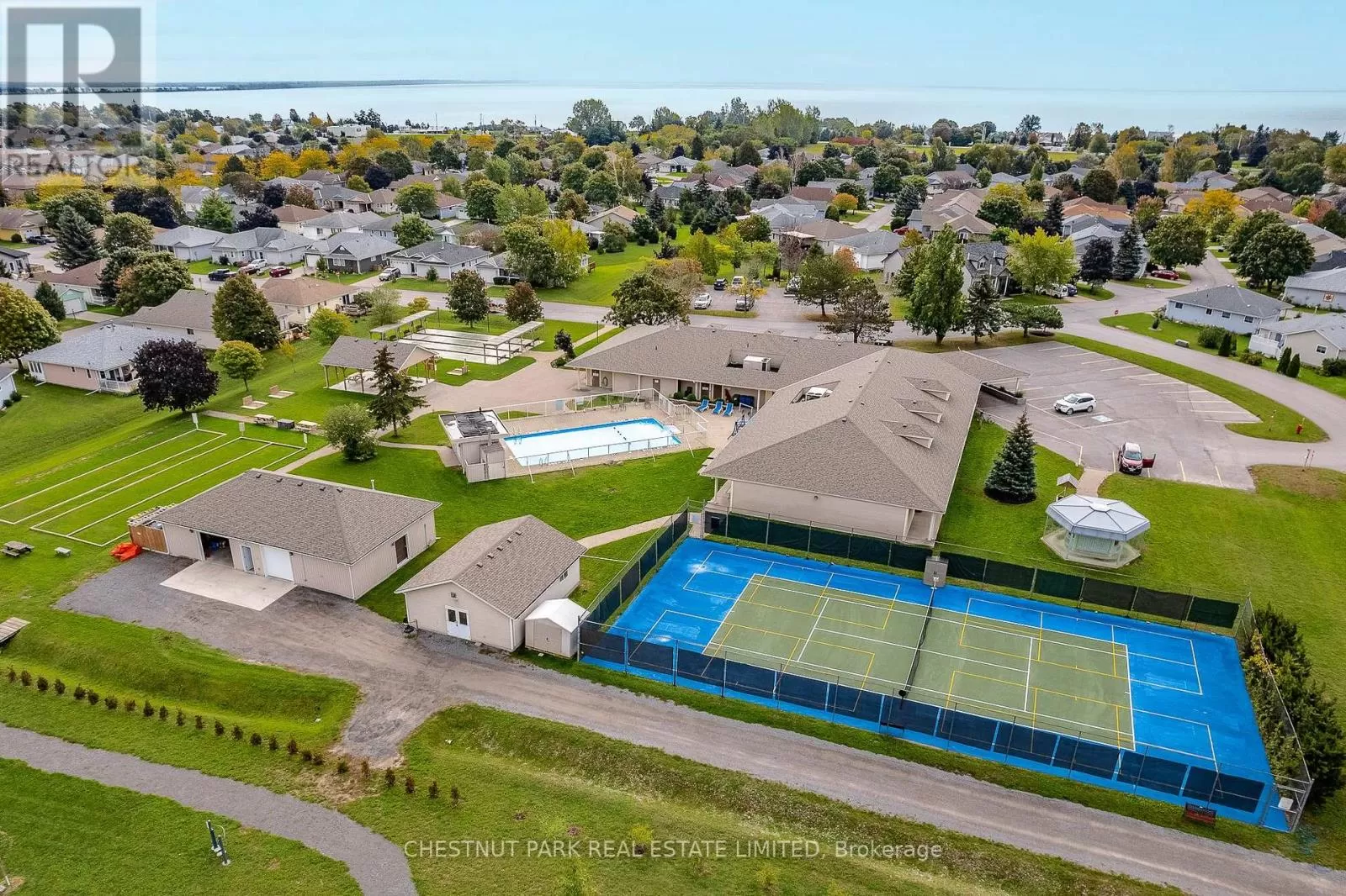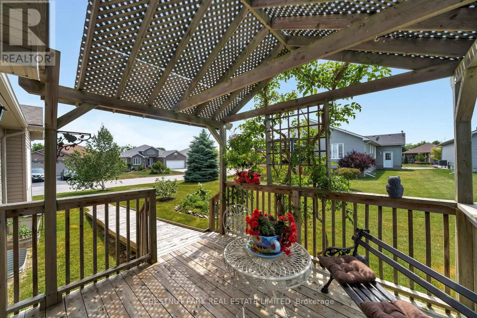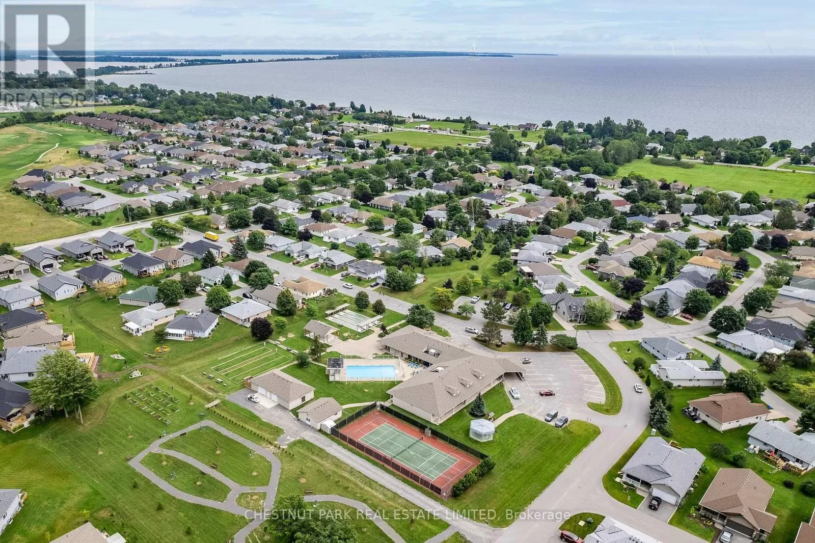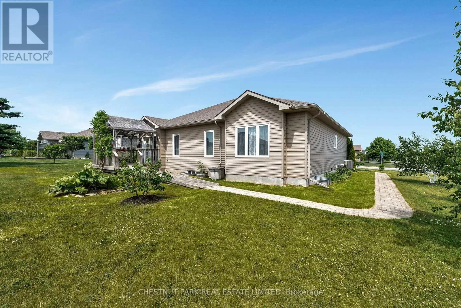 Cross Streets: Loyalist Parkway and Prince Edward Drive. ** Directions: Loyalist Parkway to Prince Edward Drive to Elmdale to Maplehurst Crescent. This stately two bedroom, two bath home is located in the highly regarded community of Wellington on the Lake. The double height foyer leads to the spacious dining and living rooms, with gleaming hardwood floors and high coffered ceilings. The spacious kitchen features stone countertops, a breakfast bar, and high-end stainless steel appliances. The dark wood cabinets are thoughtfully arranged and include a built-in pantry. The far end of the kitchen is roomy enough for a breakfast nook or office, and leads to a lovely, covered deck. The main floor laundry area leads to the attached garage. The primary suite includes a walk in closet and a spacious five-piece spa bath. The second bedroom sits at the front of the home so both rooms are private. There is an updated hall bath. The home has many accessibility features including levered door handles, wide hall and doorways in some areas, grab bars in the bath, a wheelchair adapted vanity area, oversized roll-in shower and turning area for a wheelchair, plus a ramp in the garage and to the outdoor deck. The property also has an inground irrigation system. The lower level is completely insulated, has full height ceilings and windows suitable for additional bedrooms and a family room. There is a roughed-in bath as well. The monthly fee is $223.88 and covers use of the rec centre and amenities, garbage/recycling, year round road upkeep and care of all common areas. Amenities include heated pool, tennis/pickleball court, home monitoring and much more. WOTL fee increases 3% annually. Come and see this lovely home and explore the leisurely lifestyle that can be yours! (id:27476)