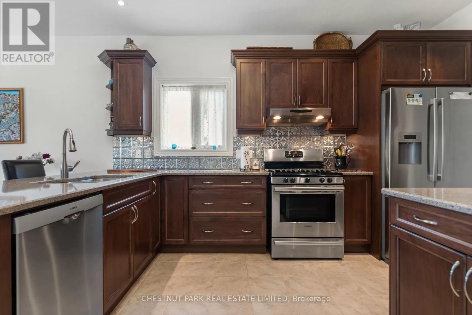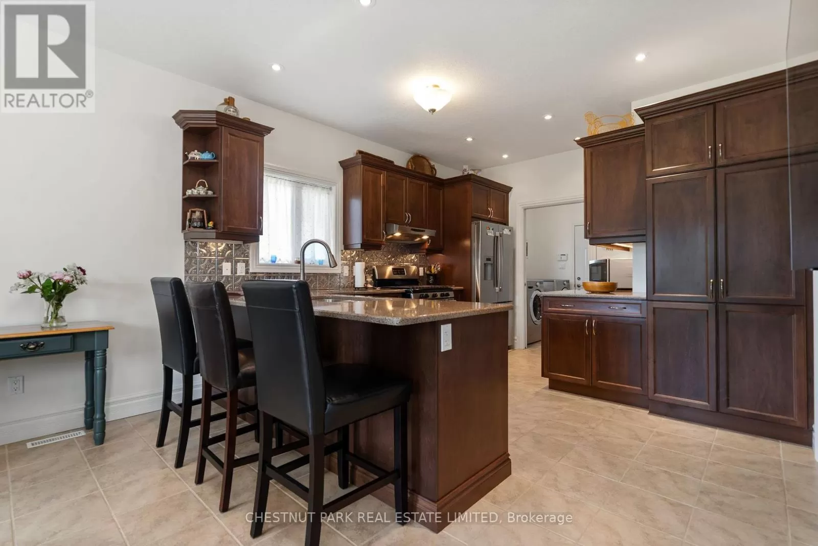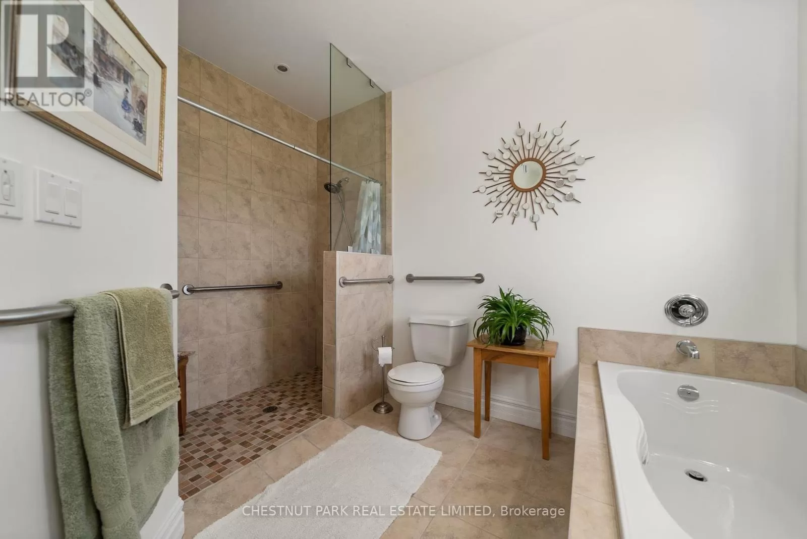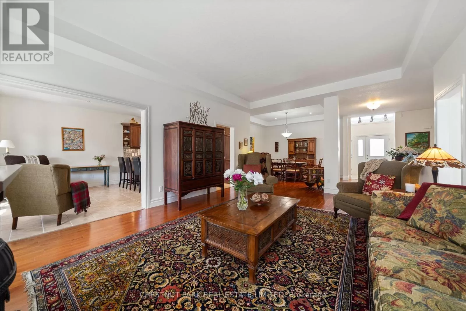 Cross Streets: Loyalist Parkway and Prince Edward Drive. ** Directions: Loyalist Parkway to Prince Edward Drive to Elmdale to Maplehurst Crescent. This stately two bedroom, two bath home is located in the highly regarded community of Wellington on the Lake. The double height foyer leads to the spacious dining and living rooms, with gleaming hardwood floors and high coffered ceilings. The spacious kitchen features stone countertops, a breakfast bar, and high-end stainless steel appliances. The dark wood cabinets are thoughtfully arranged and include a built-in pantry. The far end of the kitchen is roomy enough for a breakfast nook or office, and leads to a lovely, covered deck. The main floor laundry area leads to the attached garage. The primary suite includes a walk in closet and a spacious five-piece spa bath. The second bedroom sits at the front of the home so both rooms are private. There is an updated hall bath. The home has many accessibility features including levered door handles, wide hall and doorways in some areas, grab bars in the bath, a wheelchair adapted vanity area, oversized roll-in shower and turning area for a wheelchair, plus a ramp in the garage and to the outdoor deck. The property also has an inground irrigation system. The lower level is completely insulated, has full height ceilings and windows suitable for additional bedrooms and a family room. There is a roughed-in bath as well. The monthly fee is $223.88 and covers use of the rec centre and amenities, garbage/recycling, year round road upkeep and care of all common areas. Amenities include heated pool, tennis/pickleball court, home monitoring and much more. WOTL fee increases 3% annually. Come and see this lovely home and explore the leisurely lifestyle that can be yours! (id:27476)
