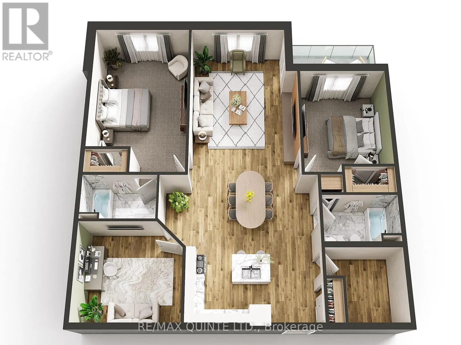 Cross Streets: Loyalist Parkway to Cleave Ave on left. ** Directions: Bridge Street to Cleave Avenue. Discover the perfect blend of elegance and convenience with condominium living at Port Picton. The Carter Building offers 36 contemporary condo suites, each featuring a private balcony or terrace, secure underground parking, and convenient storage lockers. Welcome to Suite 205, offering a spacious layout with 2 large bedrooms plus a den, 2 bathrooms, and an open-concept kitchen, dining, and living area that flows effortlessly onto your private balcony. The suite also features a separate in-suite laundry/storage room and large windows throughout, allowing natural light to fill every corner. This home will be finished with high-end engineered hardwood flooring, sleek quartz countertops, and beautifully tiled showers and tubs. Located just a short walk from the Claramount Club, you'll have access to an upcoming fine dining restaurant and pub, fitness center, indoor lap pool, bakery and tennis court. Enjoy the peaceful, maintenance-free lifestyle of Port Picton, where convenience meets comfort. Condo/Common Element Fees $763.74/mth. (id:27476)